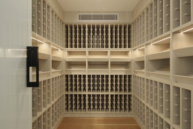 - Air-conditioned wine cellar with built-in storage, display cabinet, bar, & wine fridges