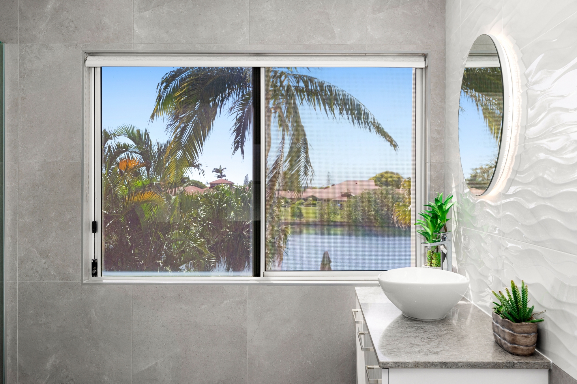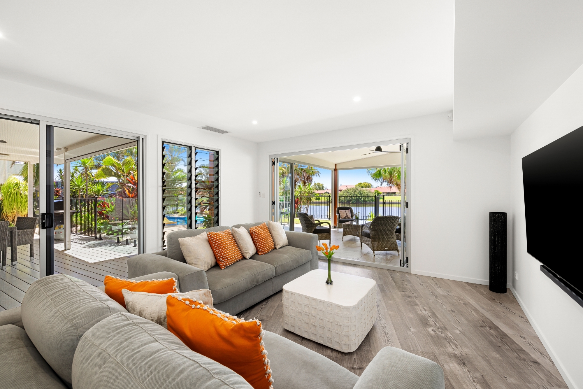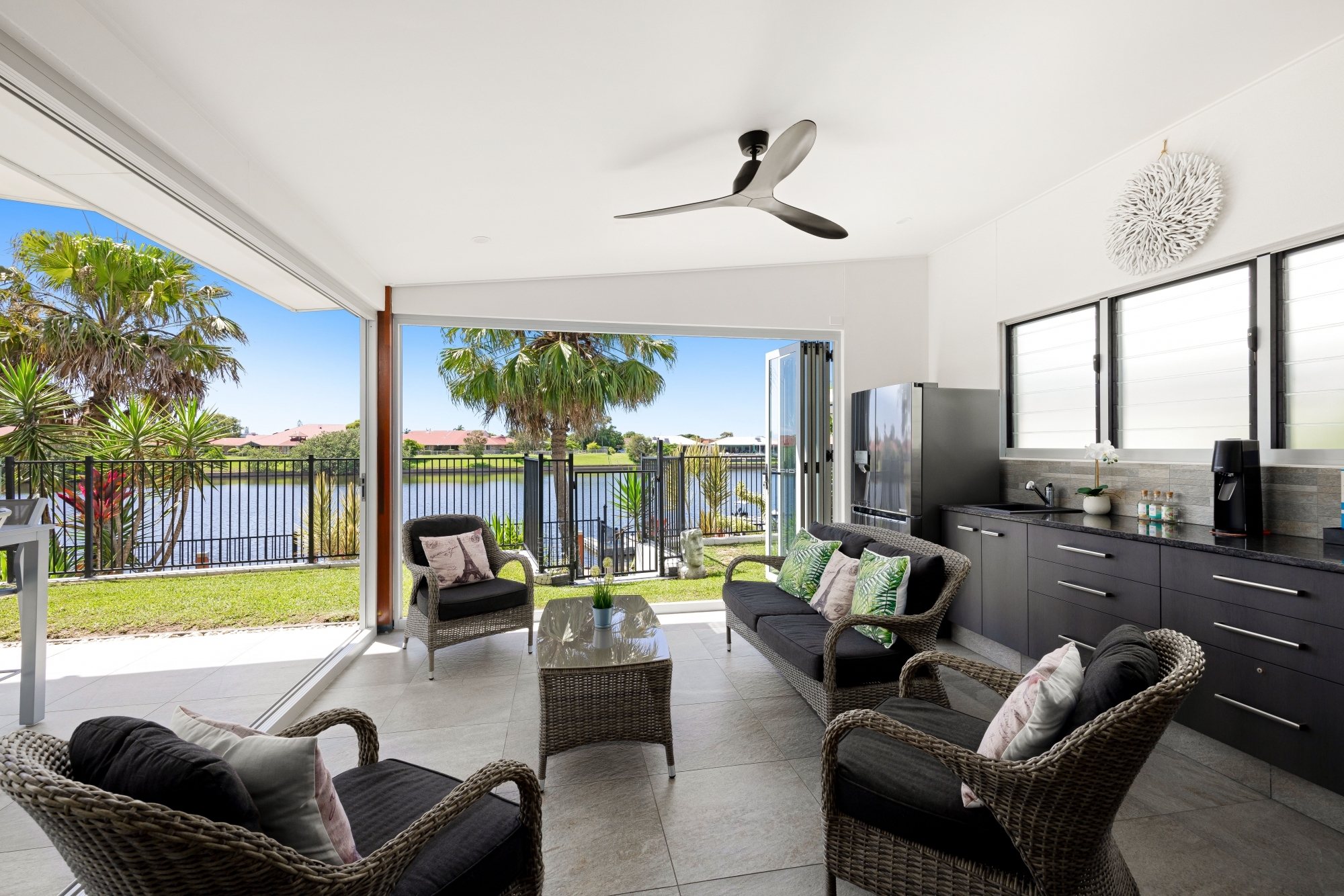 The home also boasts a new indoor/outdoor alfresco area with glass bifold doors that open out to the tropical pool area and views over the lake.