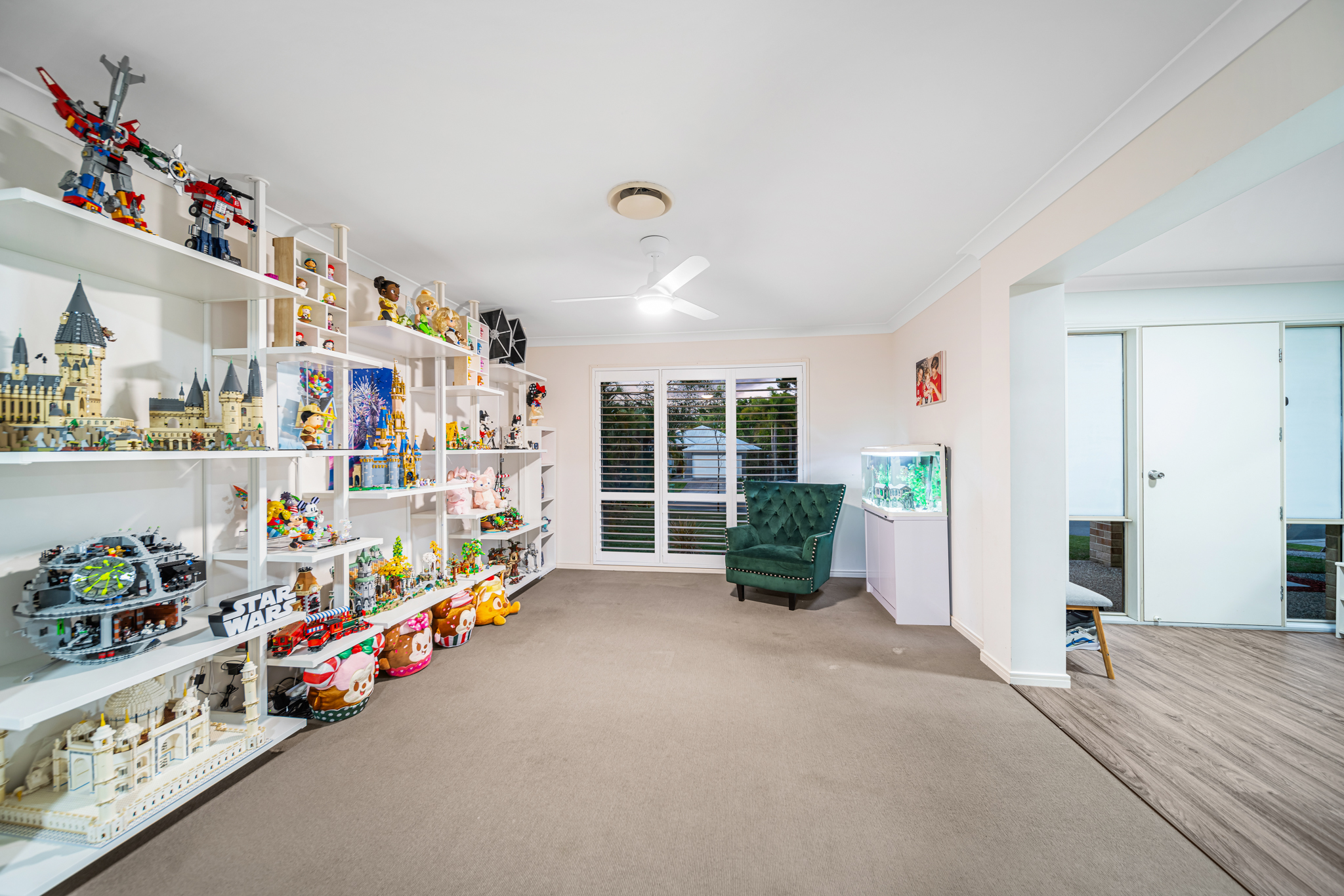 Upstairs, the kids' rumpus room provides the ideal retreat with space for study or play, while downstairs offers a separate bedroom or home office with its own bathroom, perfectly suited for guests.