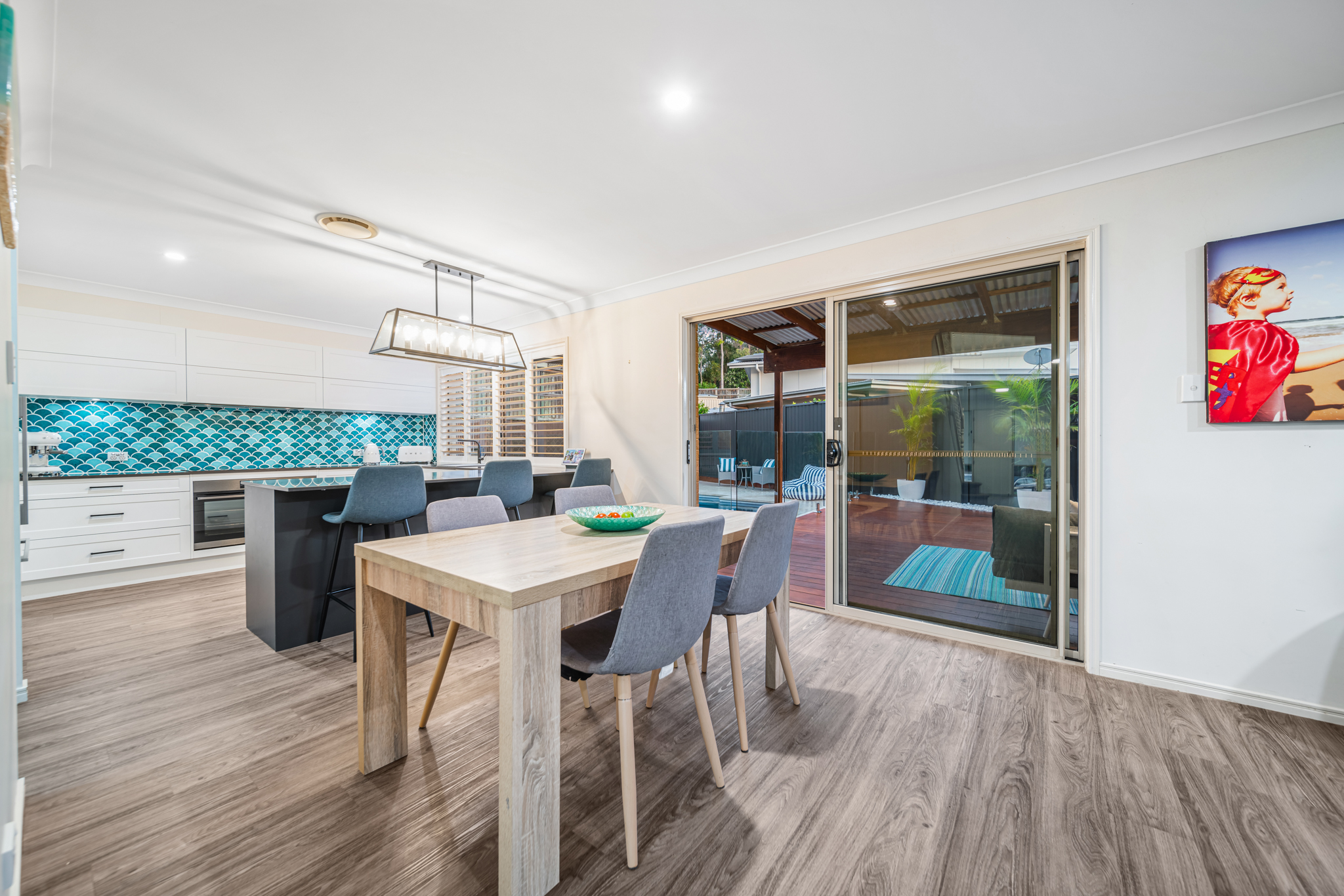 Seamless flow between the meals, family, and alfresco areas, ideal for indoor-outdoor living and socializing.