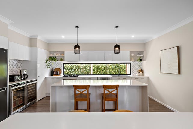 Designed for modern living, the open-plan layout seamlessly connects the stylish living area to a generous alfresco space, offering picturesque views of your sparkling swimming pool—ideal for endless summer gatherings. The gourmet kitchen is a chef's delight, featuring chic stone bench-tops, window splash-back, stunning feature tile, soft-close cabinetry, and dedicated wine and beer fridges—perfect for entertaining friends and family.