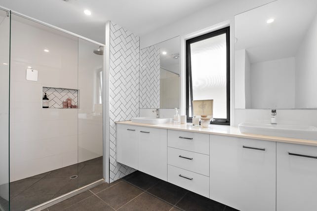 - Luxury ensuite with double vanity, ample bench-space, shower with feature tiles and niche