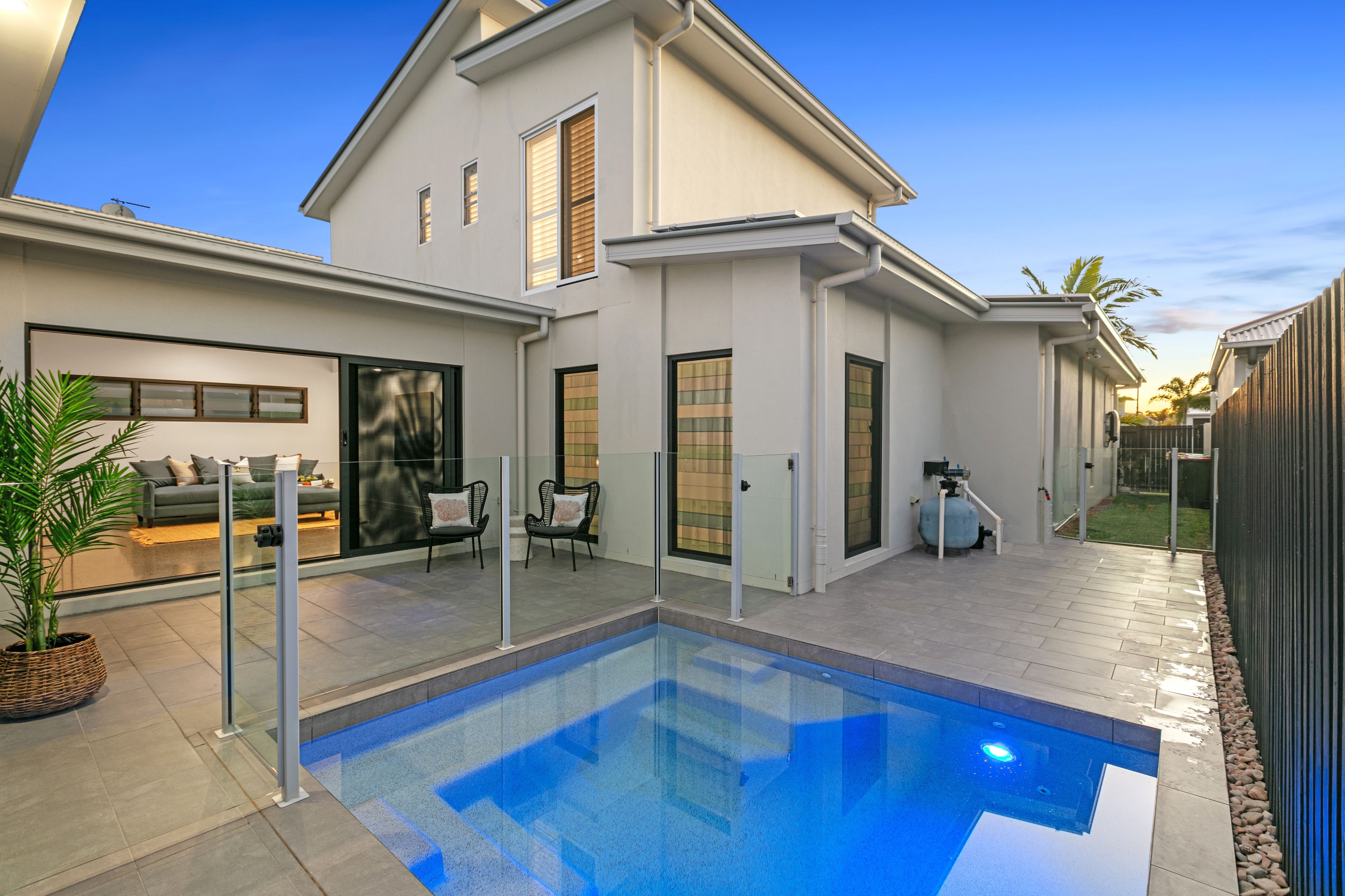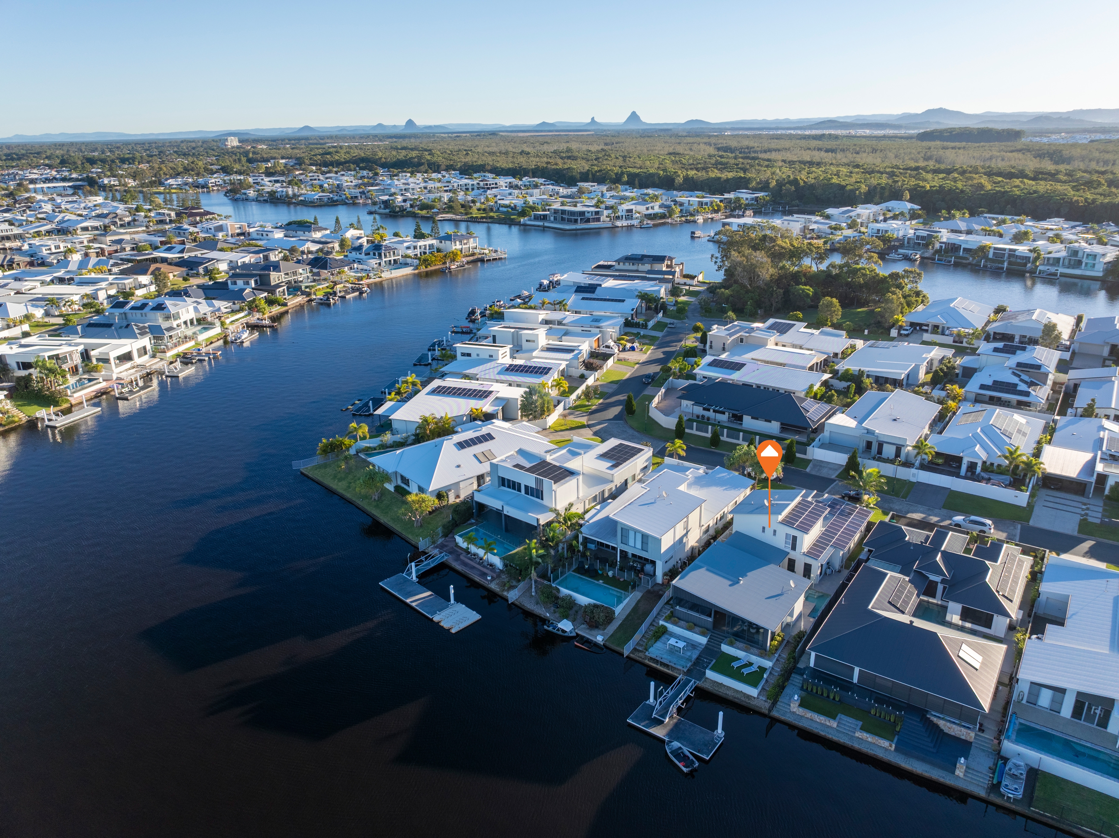 What We Love: - North-East aspect, perfect positioning for maximum light and canal views. - Parents' retreat, a luxurious first-floor sanctuary. - Flexible living zones, designed for both relaxation and entertainment. - Gourmet Kitchen featuring a six-metre bench, leather quartz tops, and a walk-in butler's pantry with a wine fridge. - Magnesium pool, surrounded by a tranquil resort style courtyard. - SolTech windows and a 15kW solar system for energy efficient living - Two separate outdoor entertaining areas with a private pontoon. - Home security system with alarm and cameras. - Climate Control: Zoned ducted air-conditioning and ceiling fans. - 3 phase power ensuring ample power supply for all needs. - A short walk to Golden Beach and its vibrant café precinct.