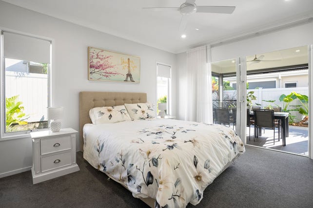 Nestled within a sought-after over 50's lifestyle resort, this lovely home exudes elegance and coastal sophistication. Featuring 2 bedrooms + activity room, two bathrooms, a double garage, Smeg appliances, and ducted air conditioning, it is the epitome of effortless living.