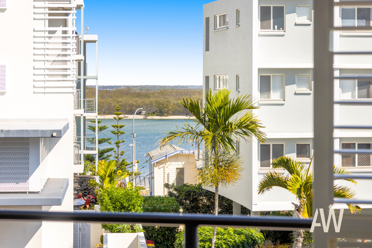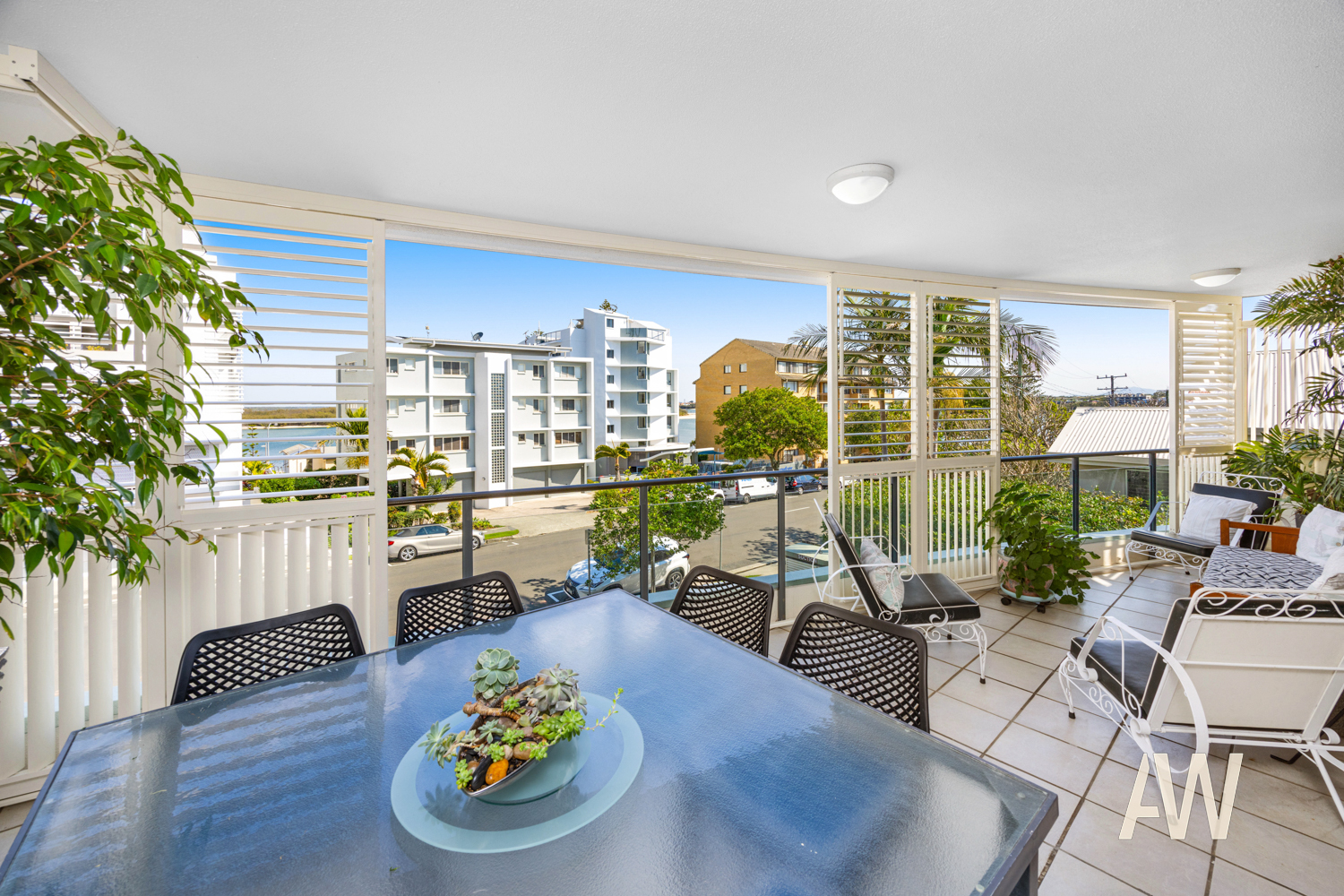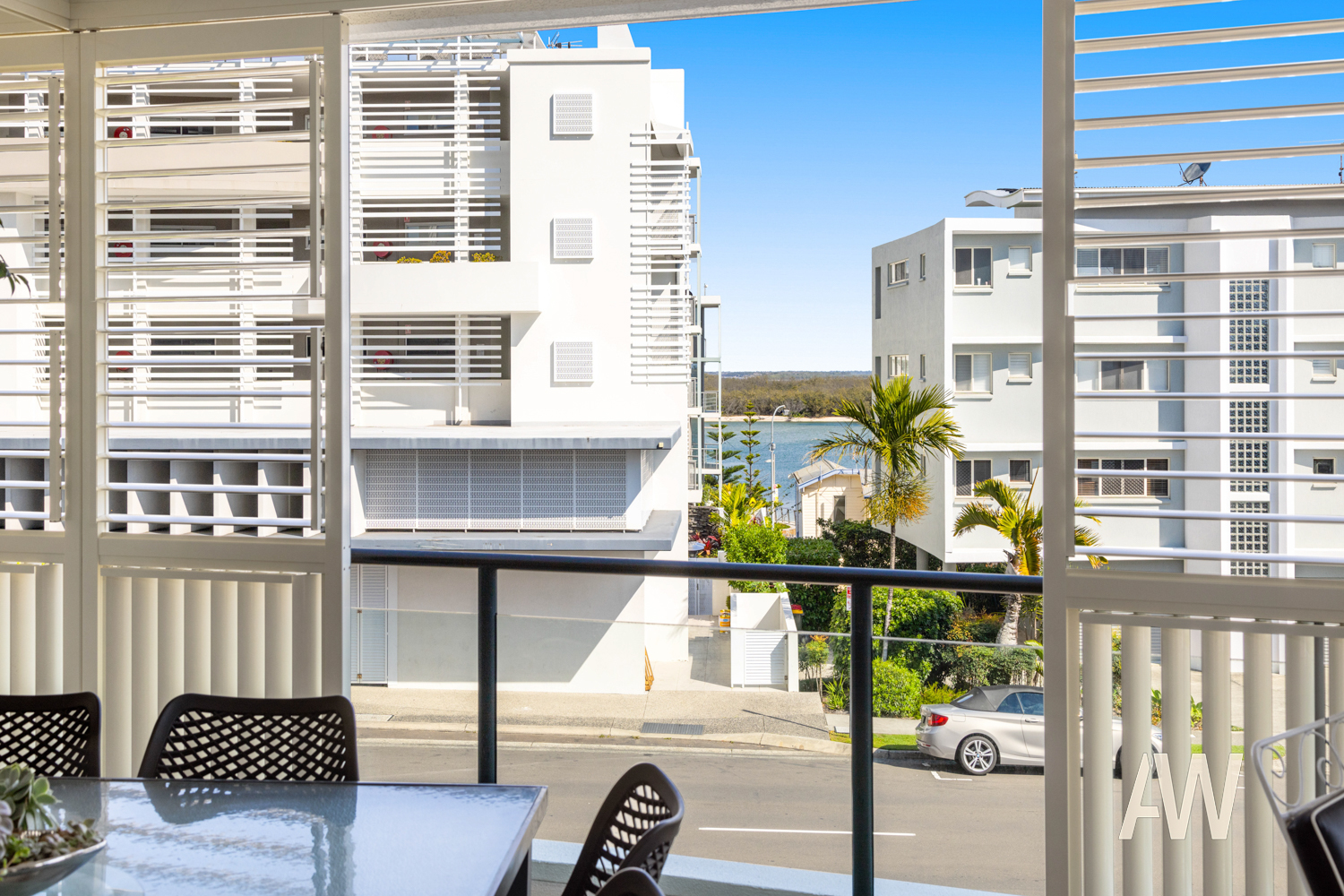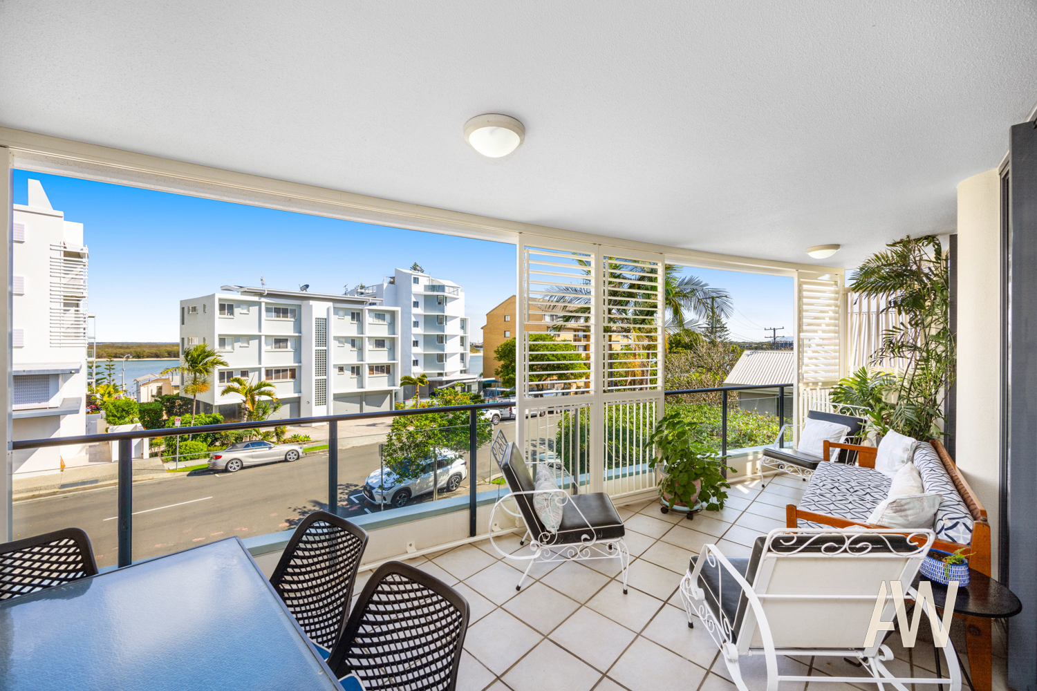 Enjoy the expansive open-plan layout of the lounge, dining, and kitchen areas, perfectly oriented north-south to capture refreshing breezes and winter sun. Additional highlights include a separate laundry, ample storage, and ducted air conditioning throughout. Step out onto the large front balcony, overlooking the picturesque Pumicestone Passage, enhanced with brand new versatile external aluminium shutters for added comfort and privacy.
