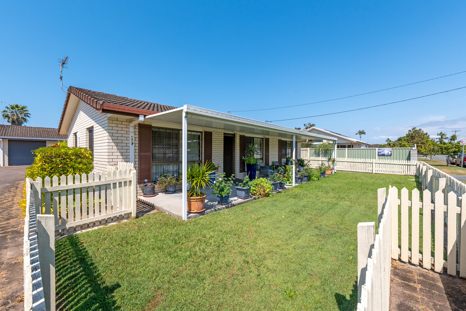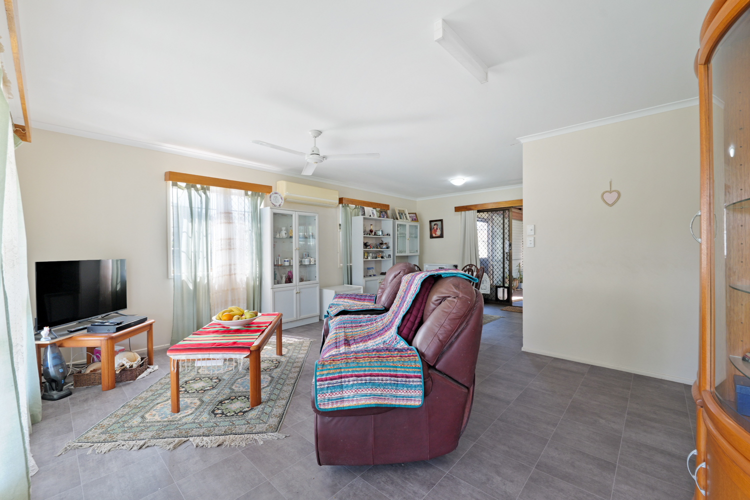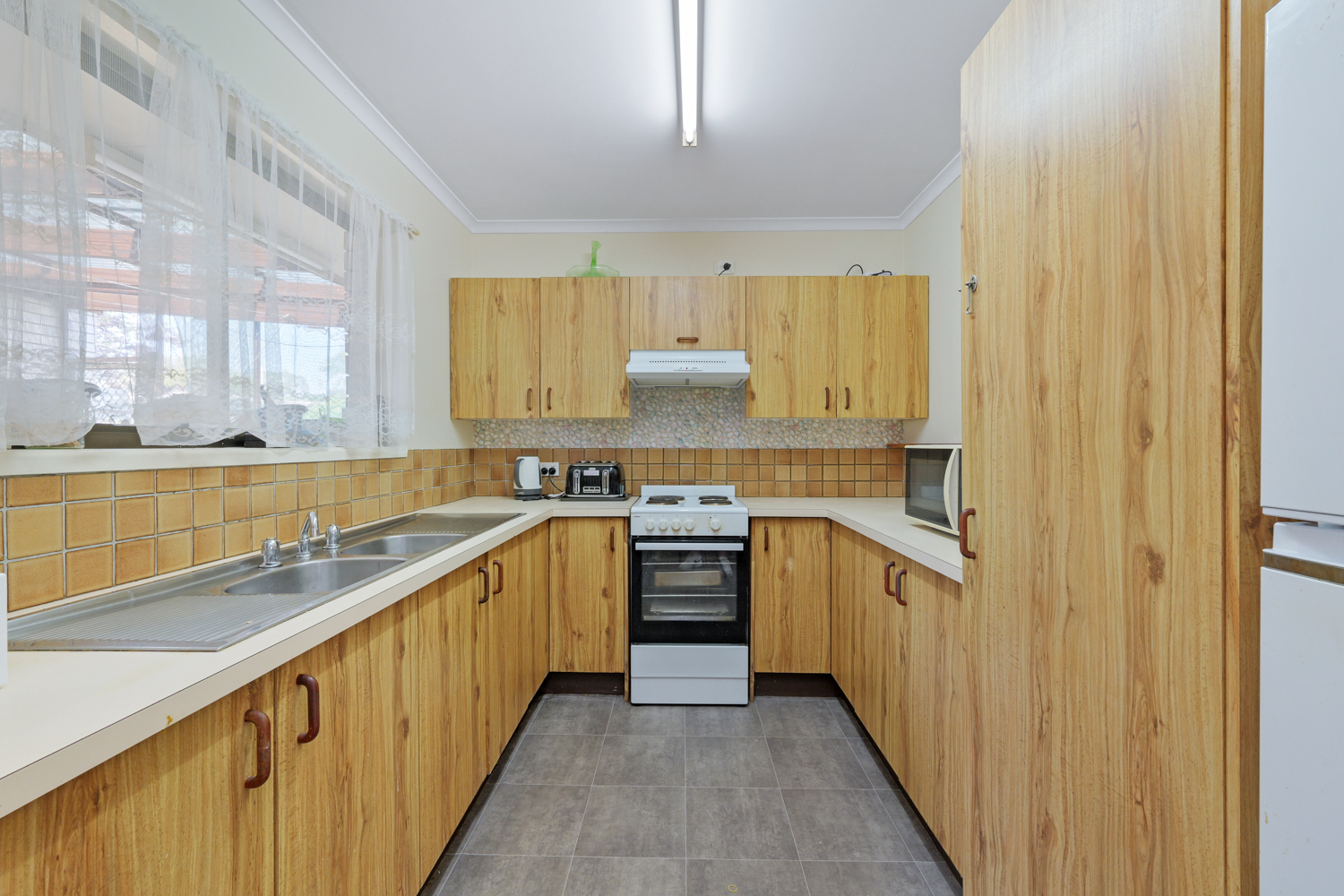 This neat, tidy but dated duplex/house offers open-plan living area with air-conditioning, kitchen with ample cupboard space, total of three bedrooms, all with ceiling fans, two bedrooms with built-in wardrobes. Bathroom with separate shower and bathtub.