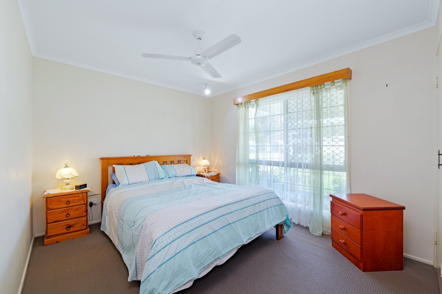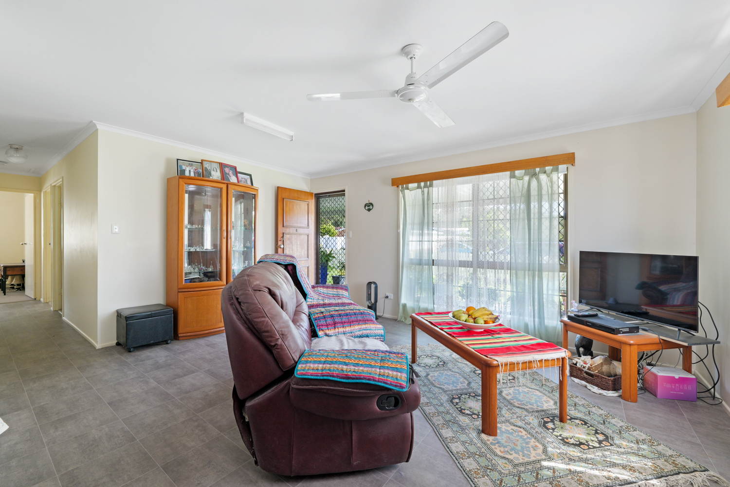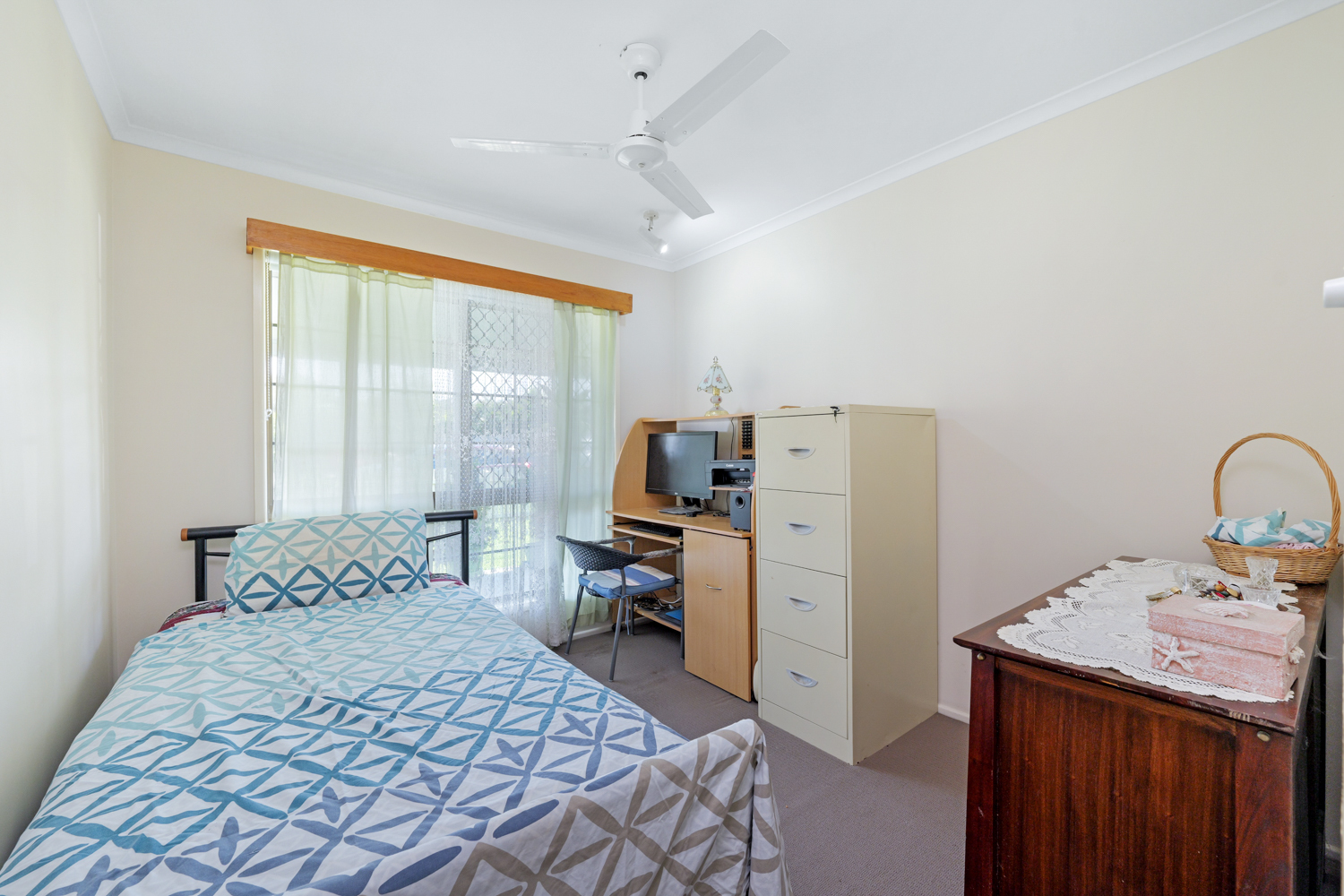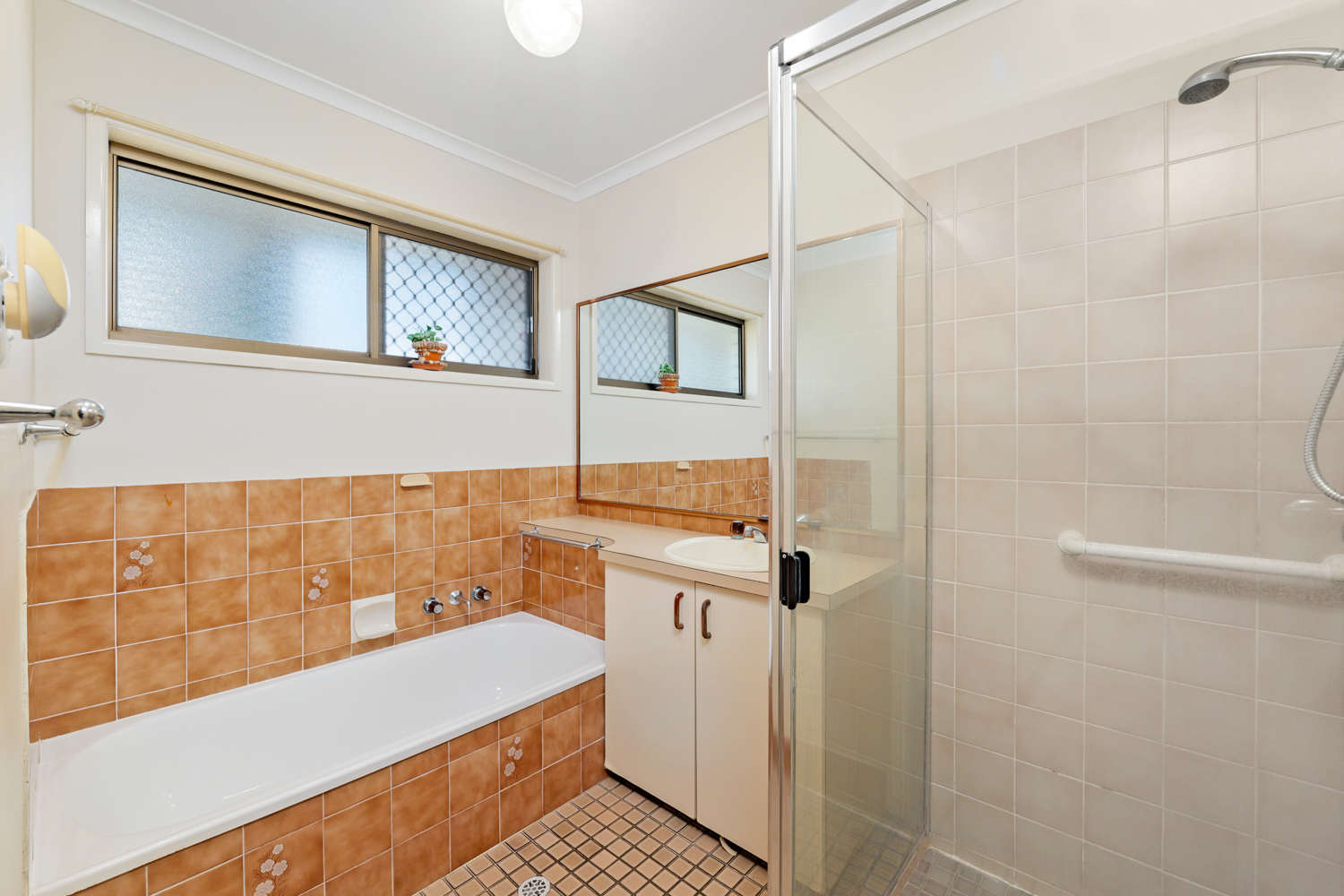 This neat, tidy but dated duplex/house offers open-plan living area with air-conditioning, kitchen with ample cupboard space, total of three bedrooms, all with ceiling fans, two bedrooms with built-in wardrobes. Bathroom with separate shower and bathtub.