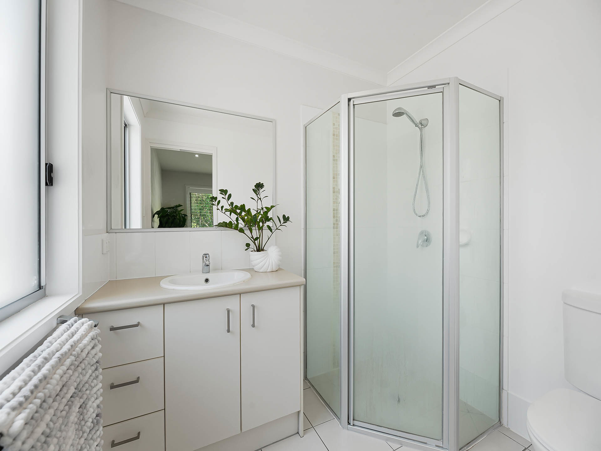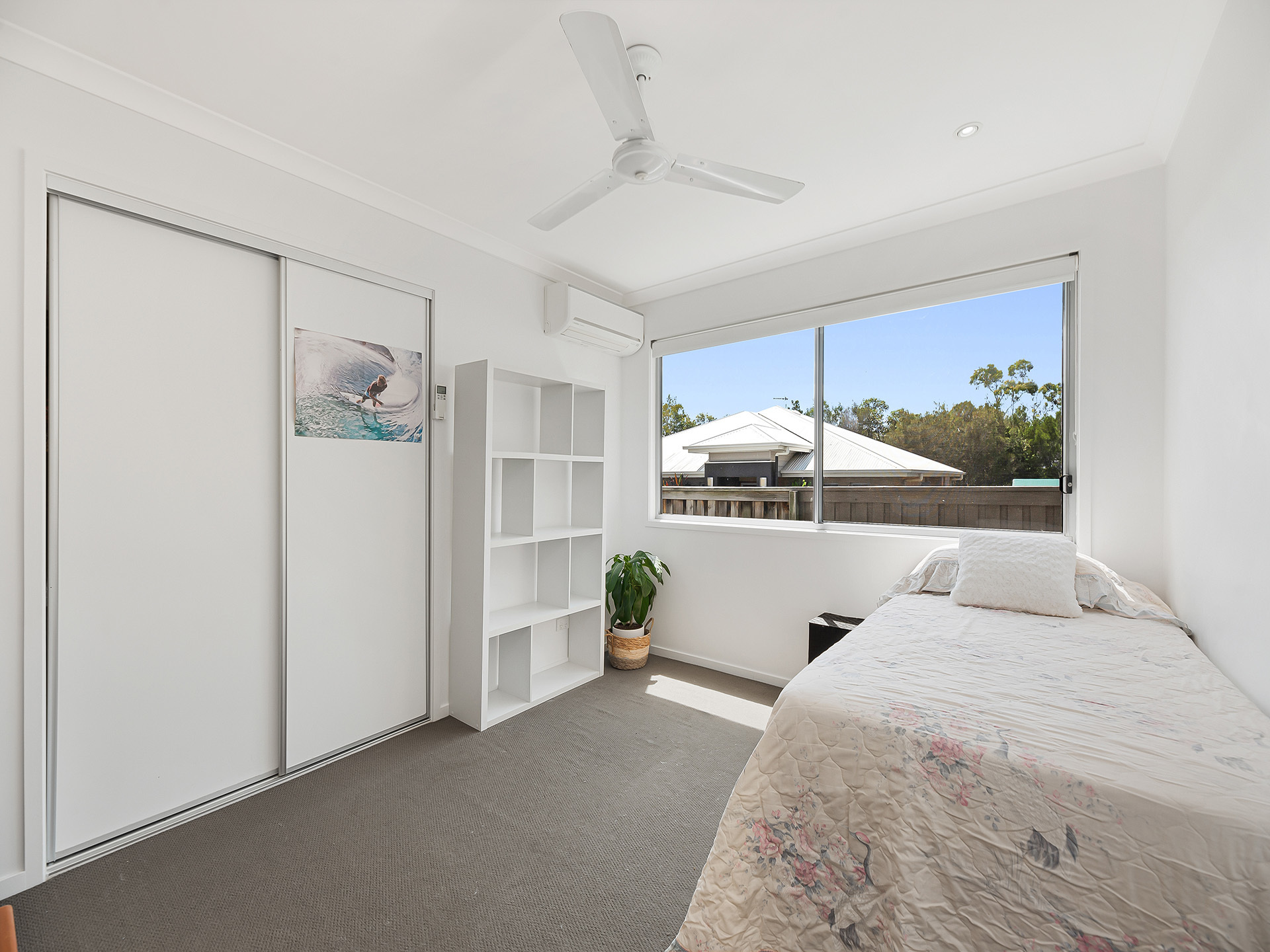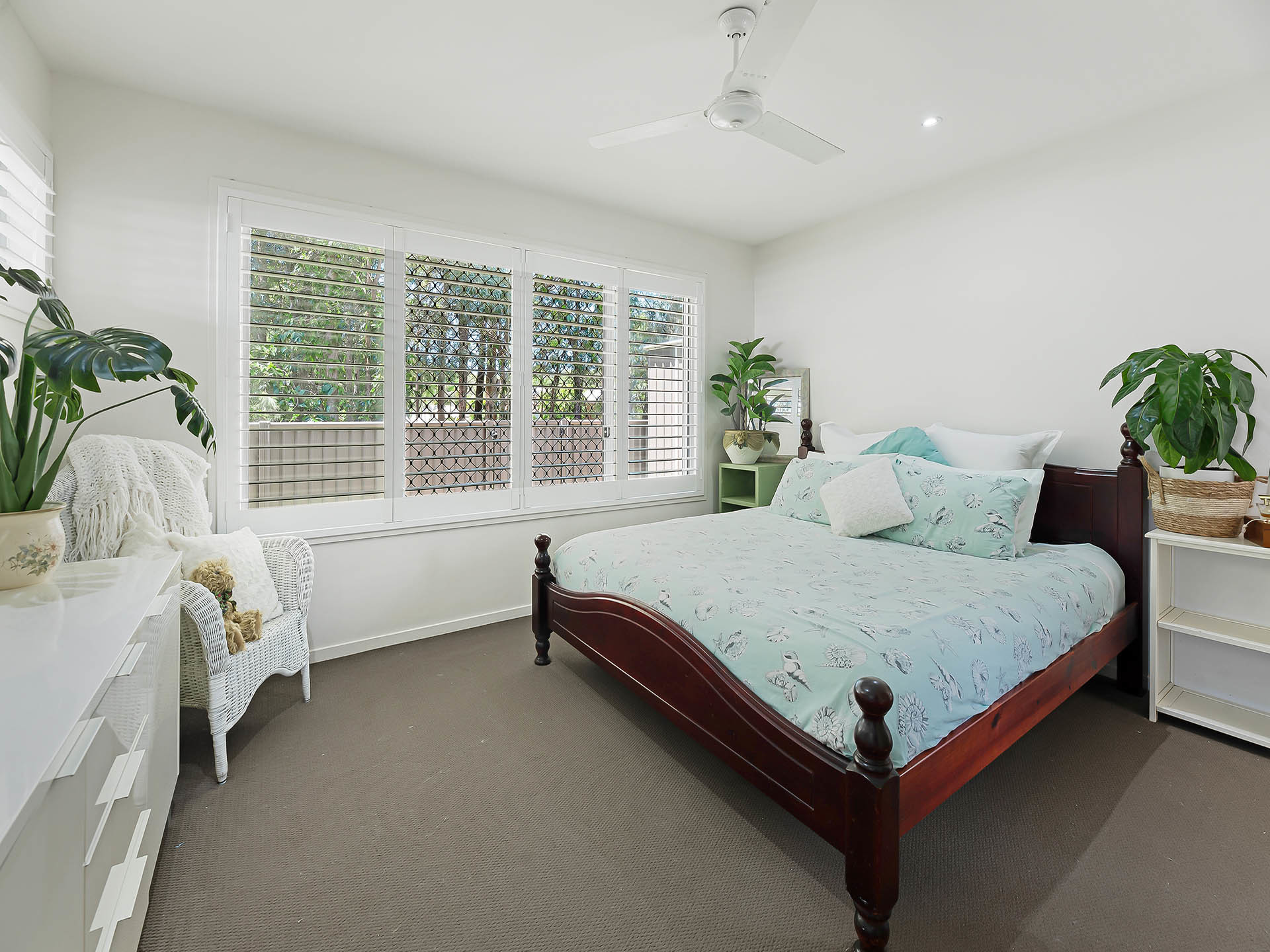 The main bedroom is perfectly placed at the back of the house and features tranquil garden views whilst also providing good separation from the other sleeping zones. All the bedrooms are queen-sized and offers ceiling fans and built-in robes.