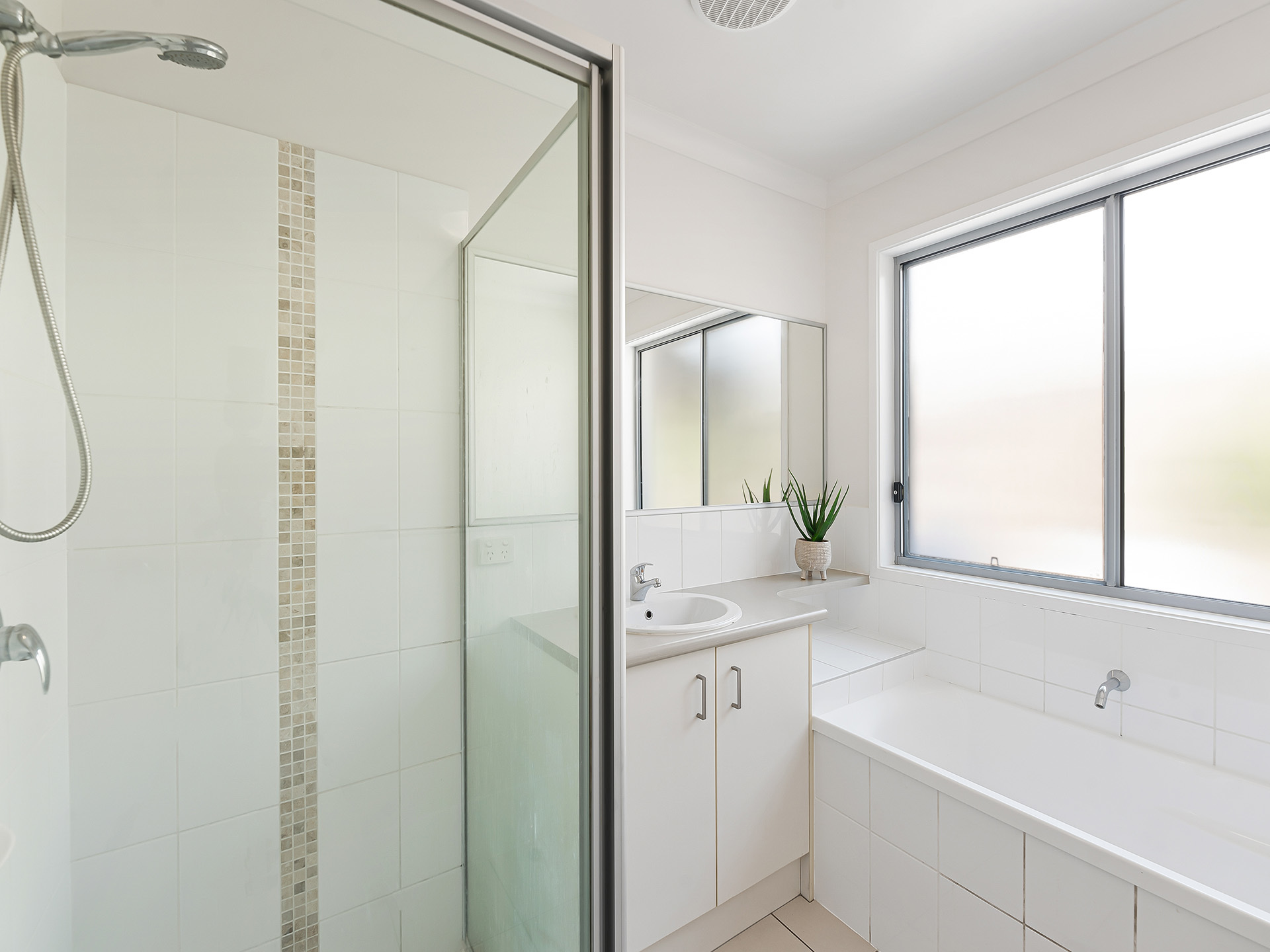 The family bathroom consists of a bath, shower and vanity and a separate second toilet. The laundry is conveniently located close to the kitchen.