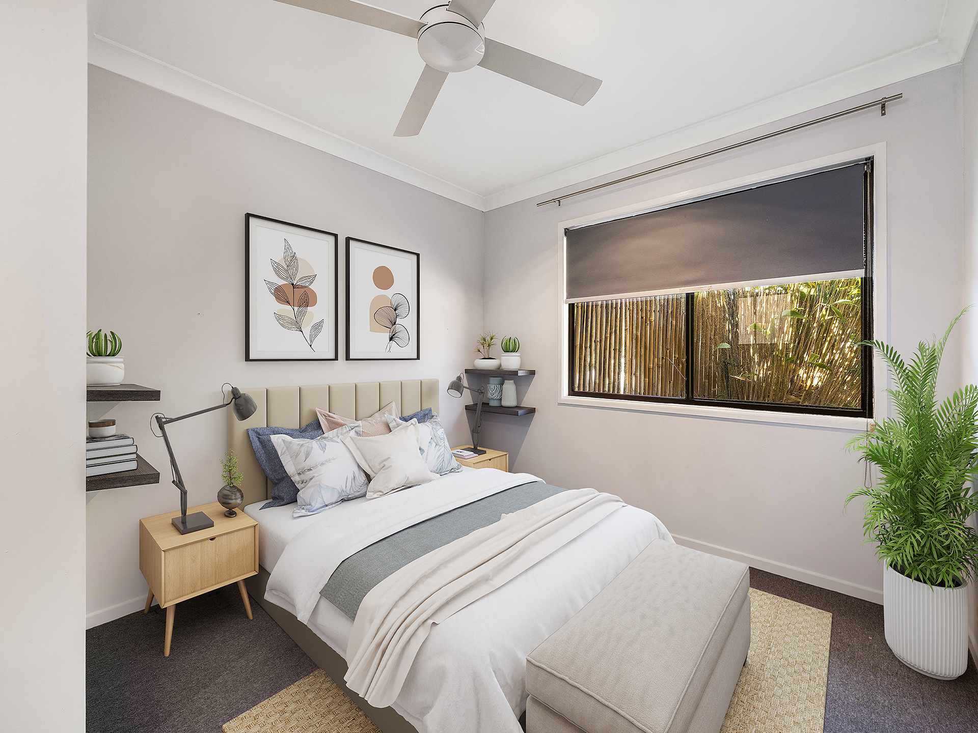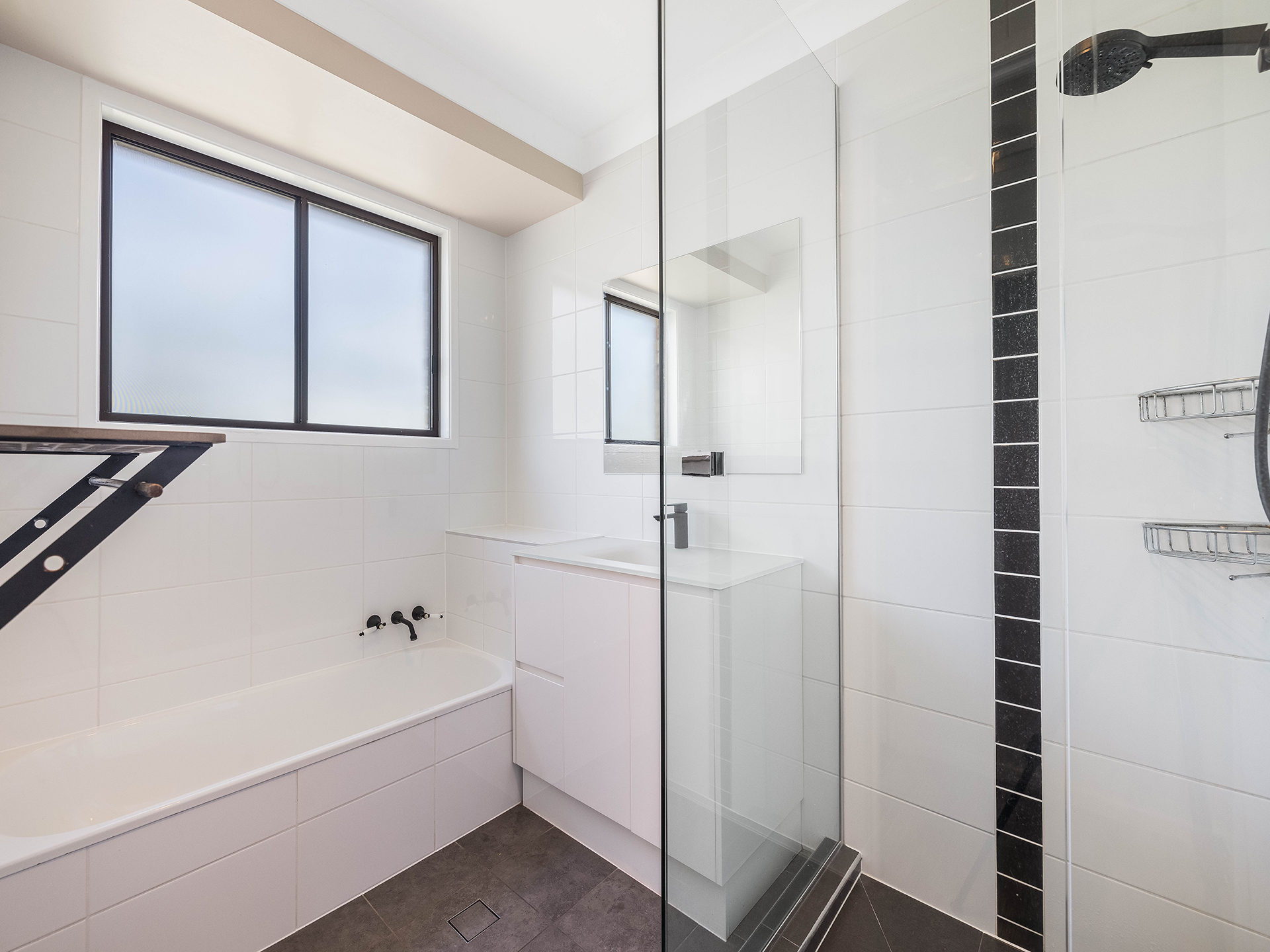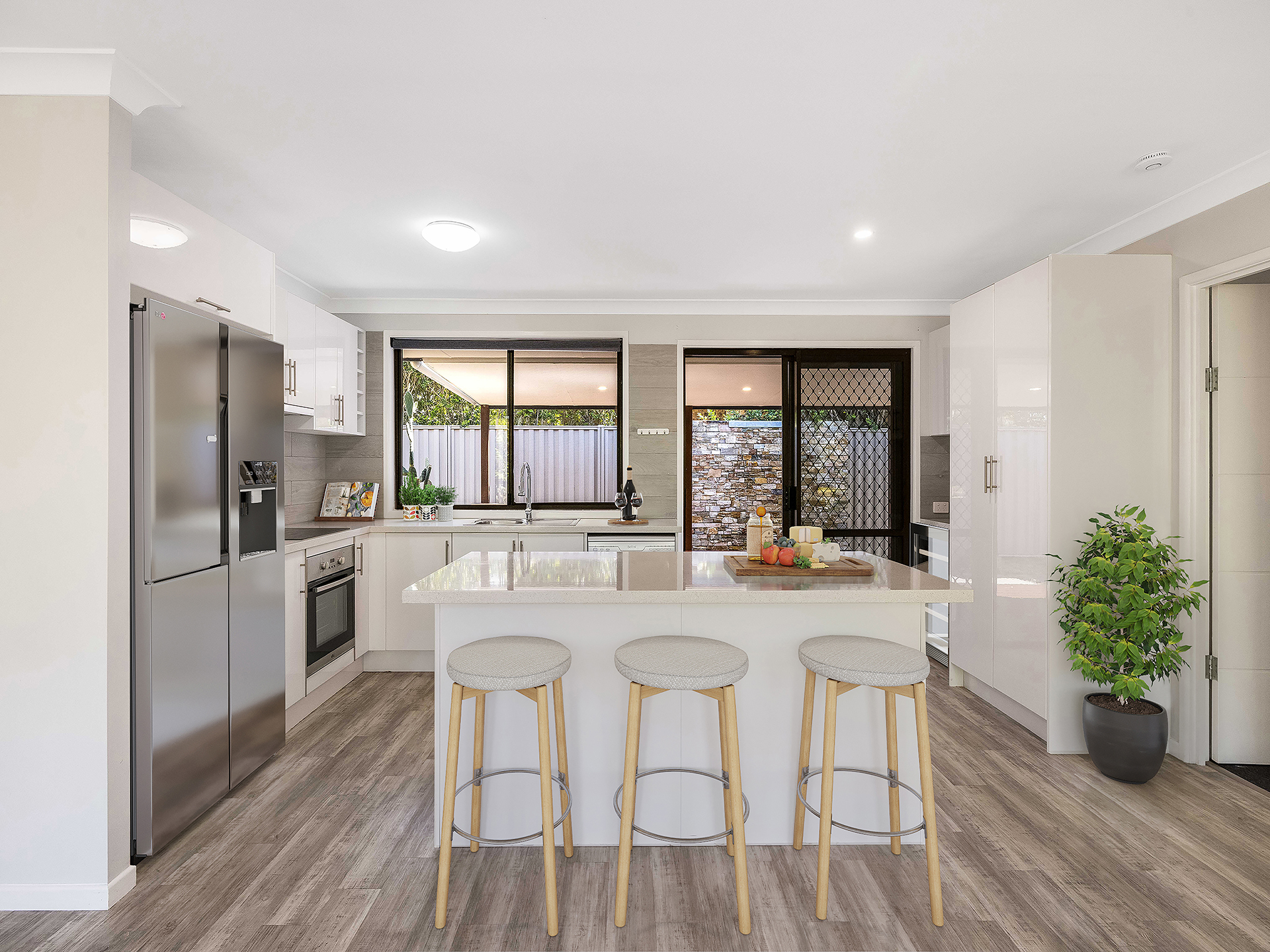From the moment you arrive, you'll be welcomed by a warm and inviting entrance. The front timber deck, framed by chic bamboo fencing and striking wrought-iron screens, creates a serene and private space to enjoy your morning coffee or unwind in the evenings. Inside, style meets practicality. The galley kitchen with modern finishes opens seamlessly to a vast open-plan living space, adorned with timber veneer flooring and neutral tones. The living area flows effortlessly onto the back deck, a perfect alfresco space complete with a tranquil water feature, setting the scene for outdoor dining and relaxation.