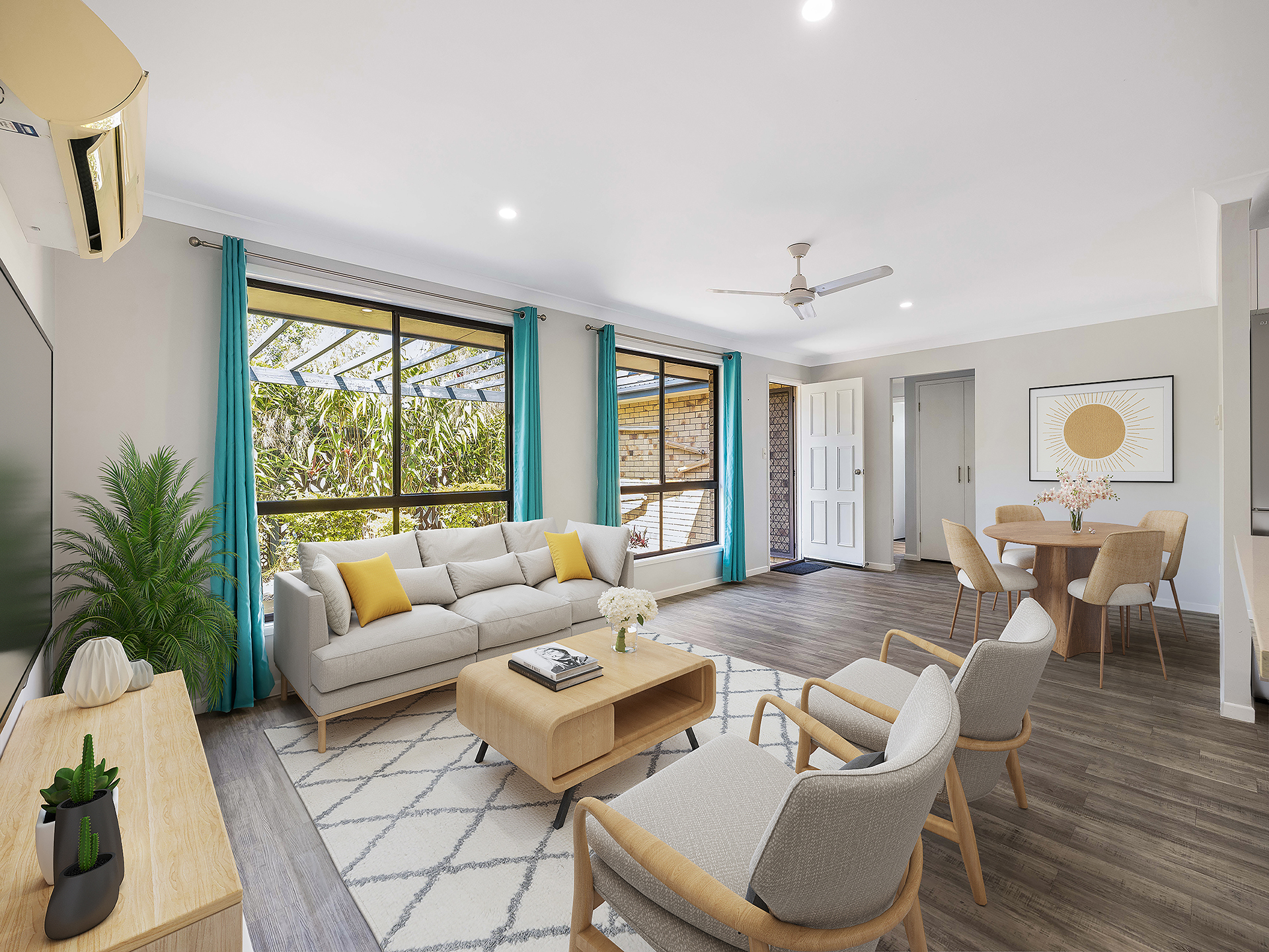 Key Features You Will Love: • 4 spacious bedrooms with built-in robes; master with ensuite and air-conditioning • Two stunning bathrooms, including a deluxe family bath • Open-plan living flowing onto a large back deck with water feature and easy to maintain garden, ideal for entertaining and relaxing