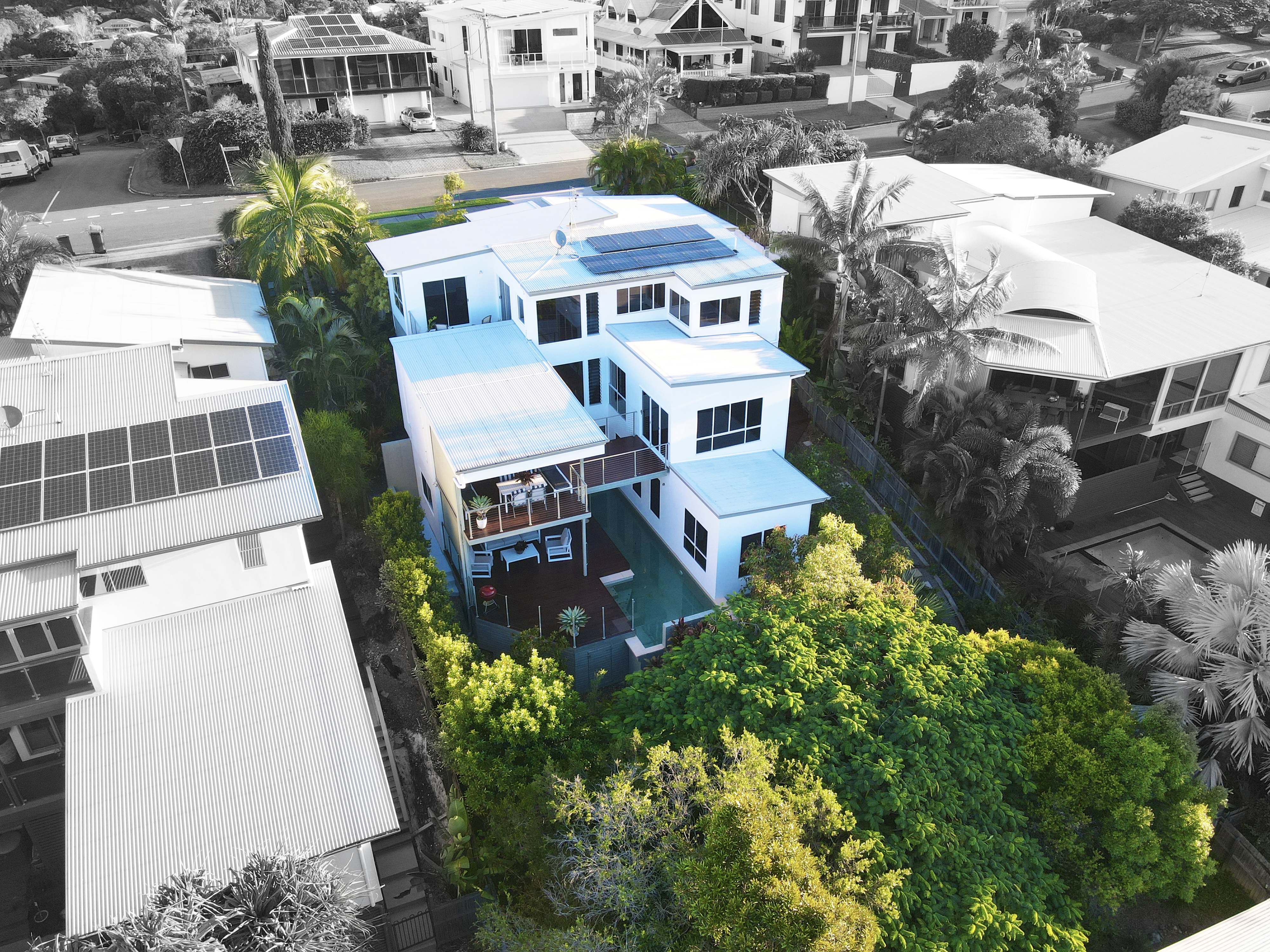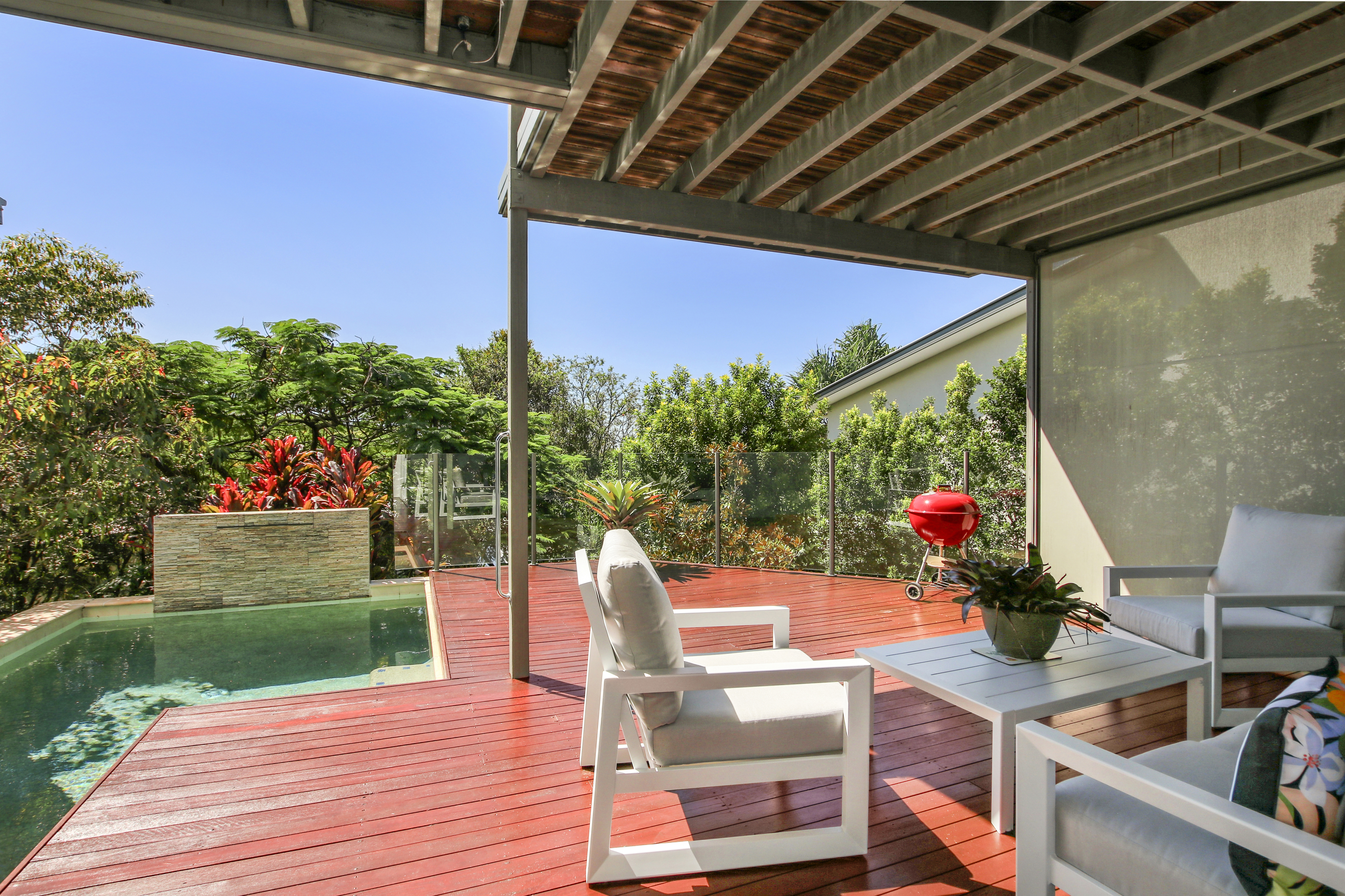 - Impressive entertainers kitchen with premium appliances, stone bench tops and gas cooking - Luxurious master suite, spa bathroom encapsulates ocean views in privacy from the main living areas - Spectacular ocean views visible throughout the entire home - Unique design with multiple living areas all with scenic aspects - Complete self contained dual living possibilities, with separate side entrance - Spotted gum floors, ducted air-conditioning and zoned surround sound - Living areas opens to deck with north aspect for natural light - Generous 740sqm block with established gardens and trees - Sparkling waterfall edged pool off entertaining area - Multiple outdoor areas to entertain or relax - Solar power electricity system setup - Additional approx 6m x 6m enclosed secure storage area