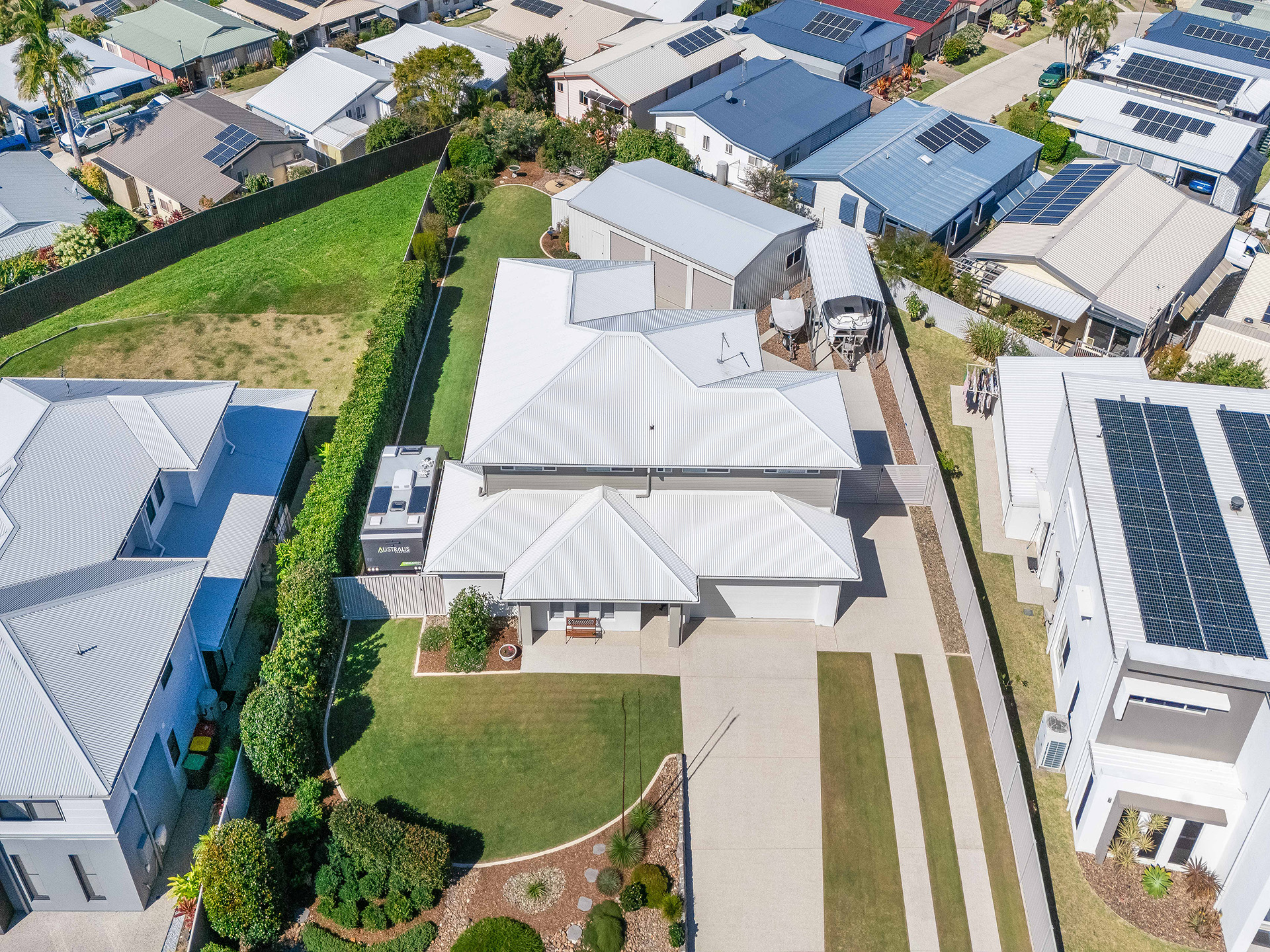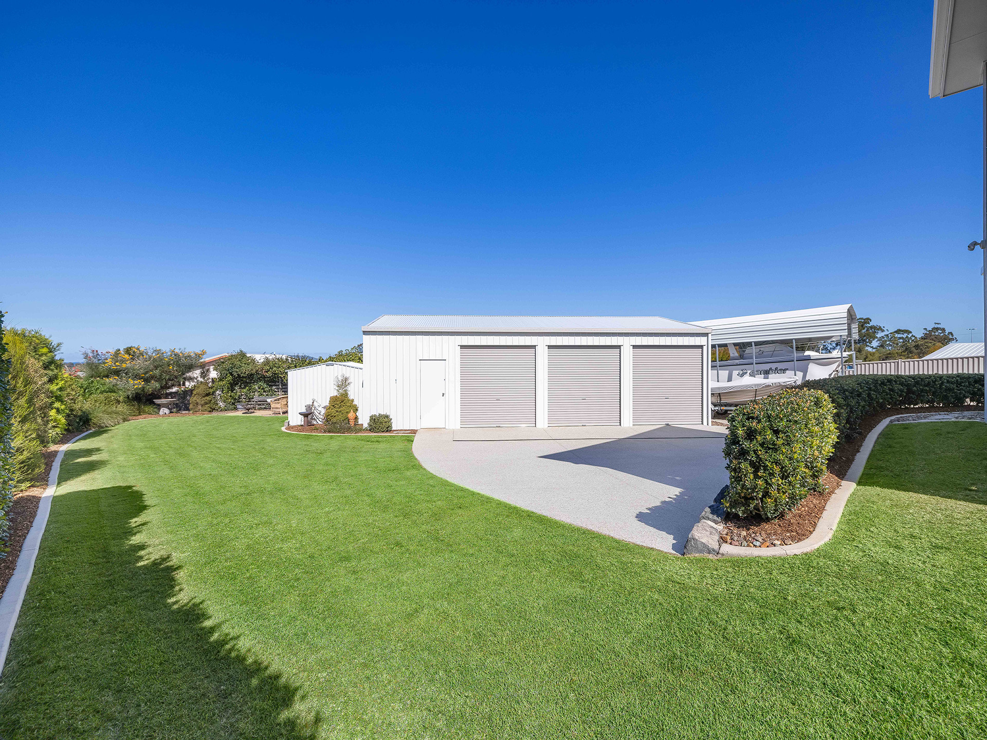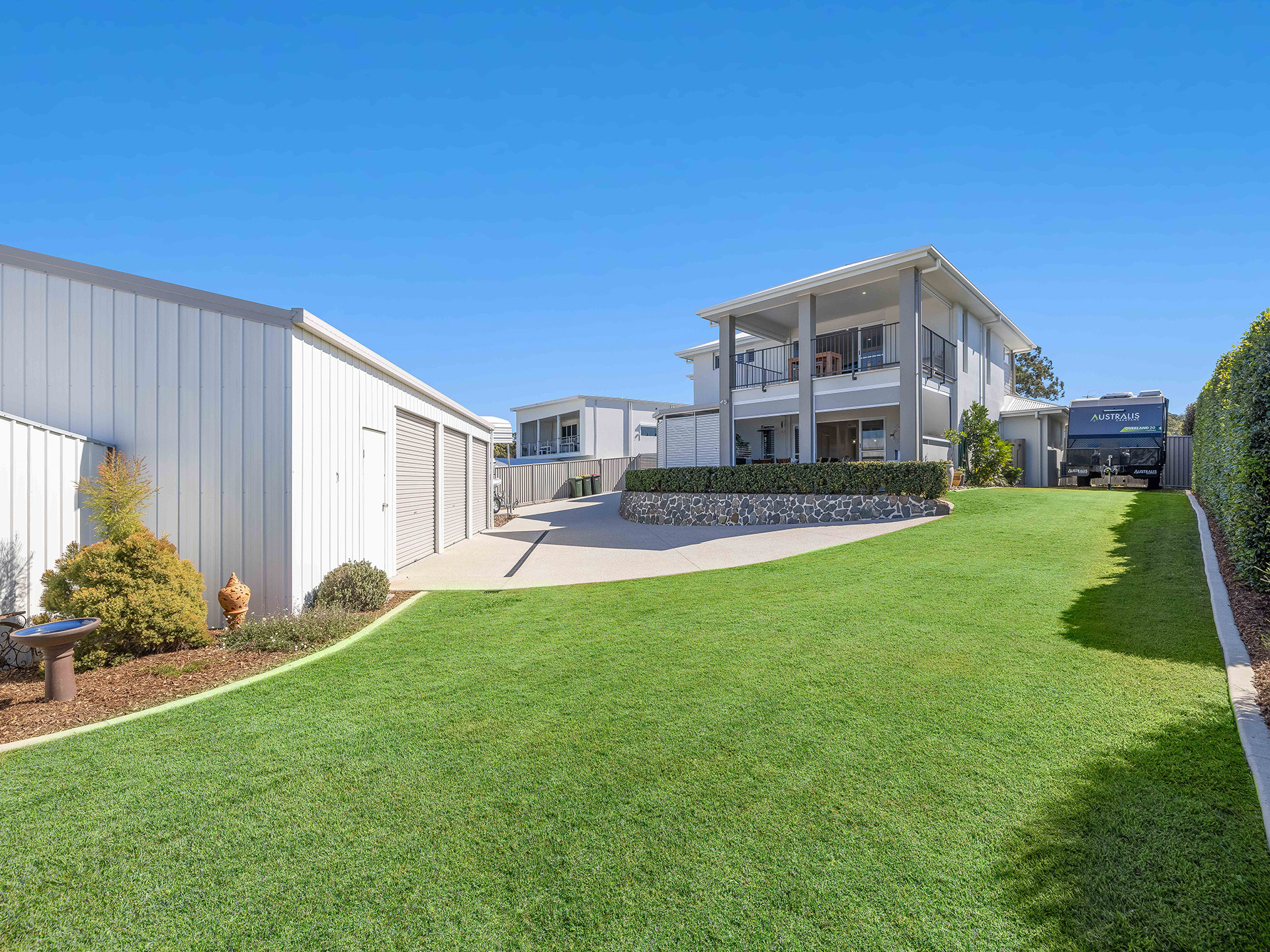 Practical features of the property include a four-bay garage, perfect for additional parking, the ultimate home workshop, or the Sunny Coast's best man shed. The beautiful gardens and yard have been designed to look great while requiring minimal maintenance. A dedicated pad and shelter accommodate a large boat, while side access and a pad for a caravan add to the convenience, making this property ideal for those who love outdoor activities and travel. Additionally, a fire pit provides a cozy spot for evening gatherings under the stars.
