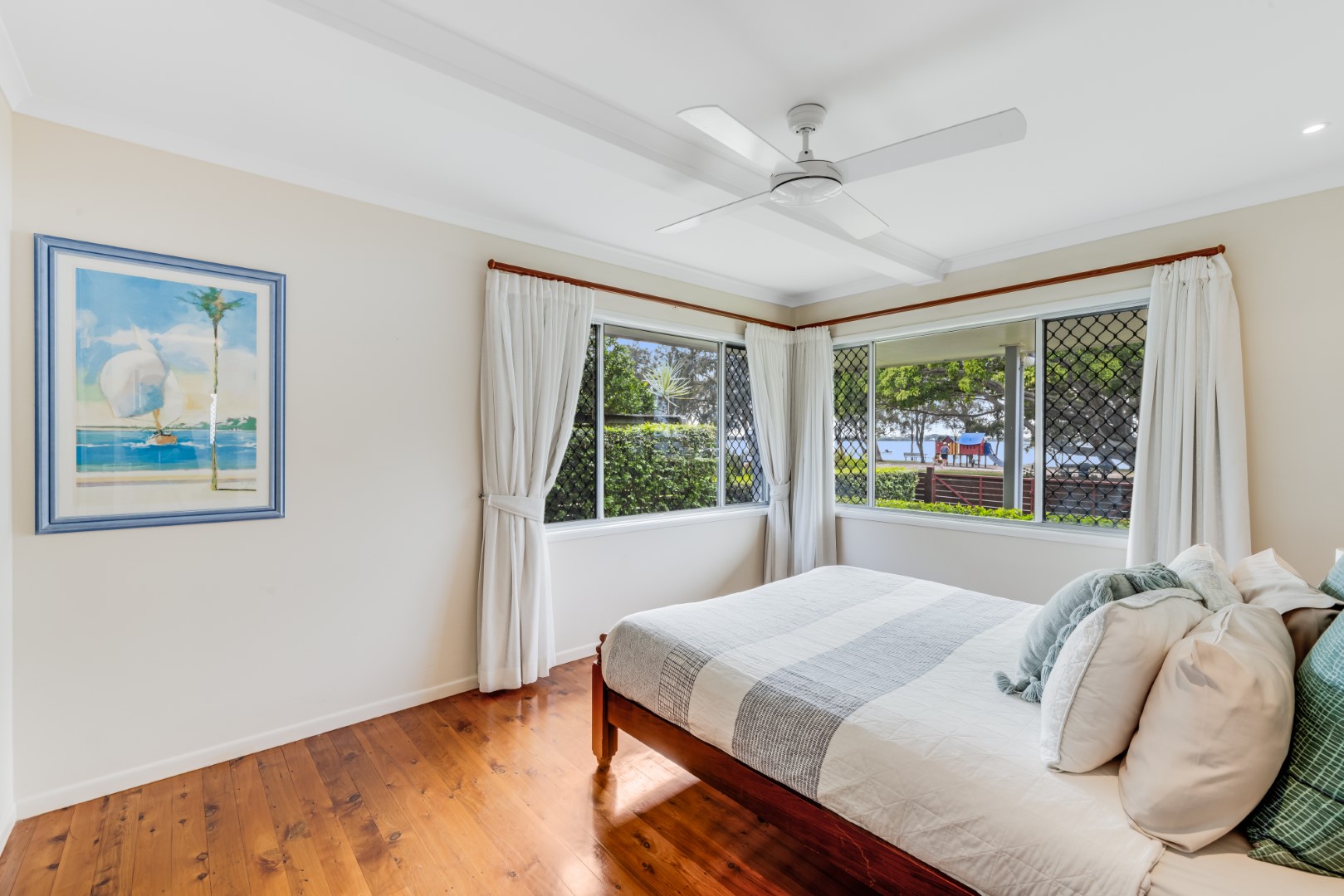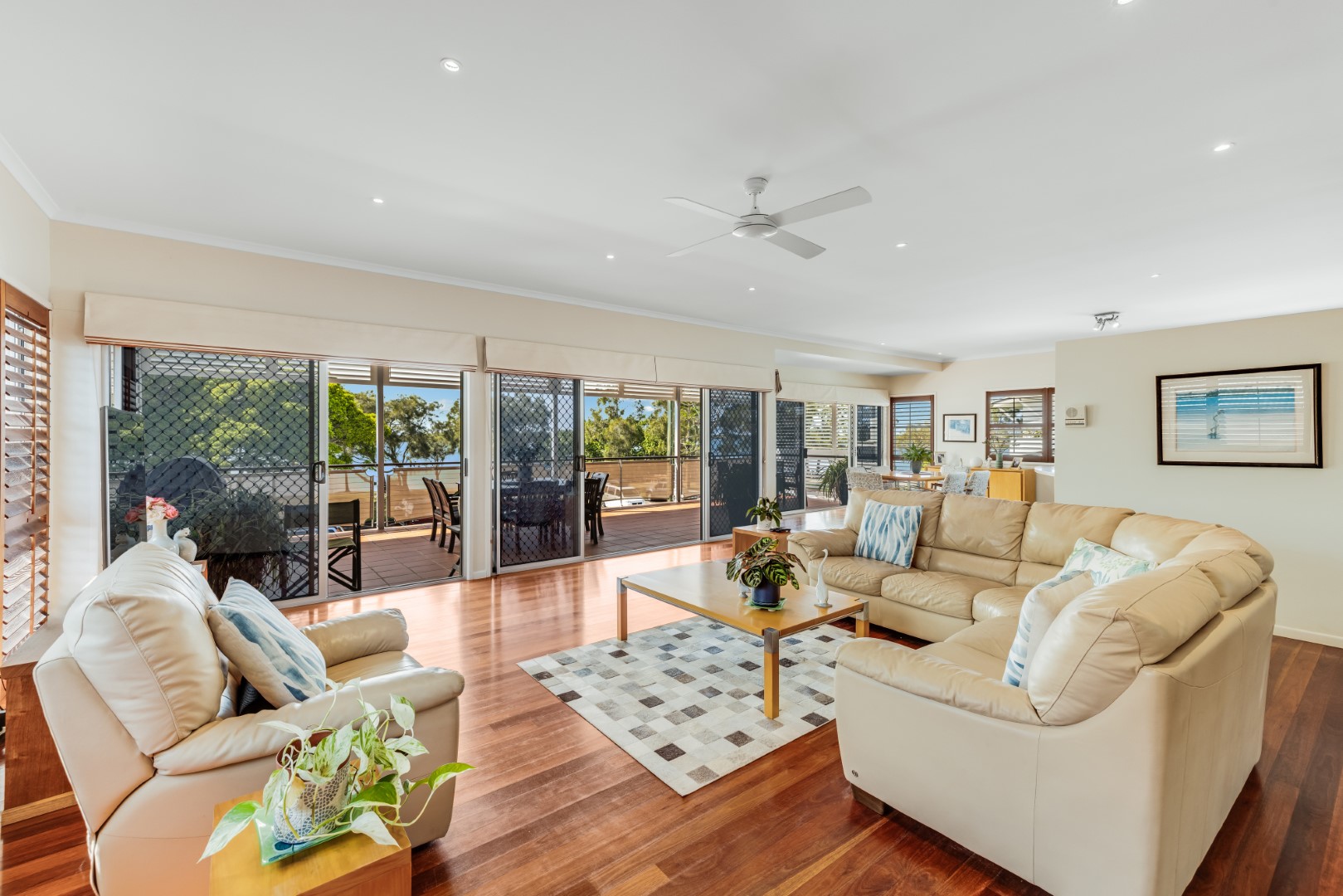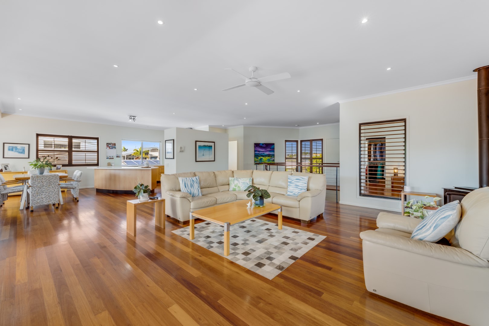 An open-plan layout, high ceilings and generous amount of windows are designed to capture light, water views and sea breezes from all aspects. Indoor living flows seamlessly to outdoor living spaces. Timber flooring throughout provides for a lovely coastal feel.