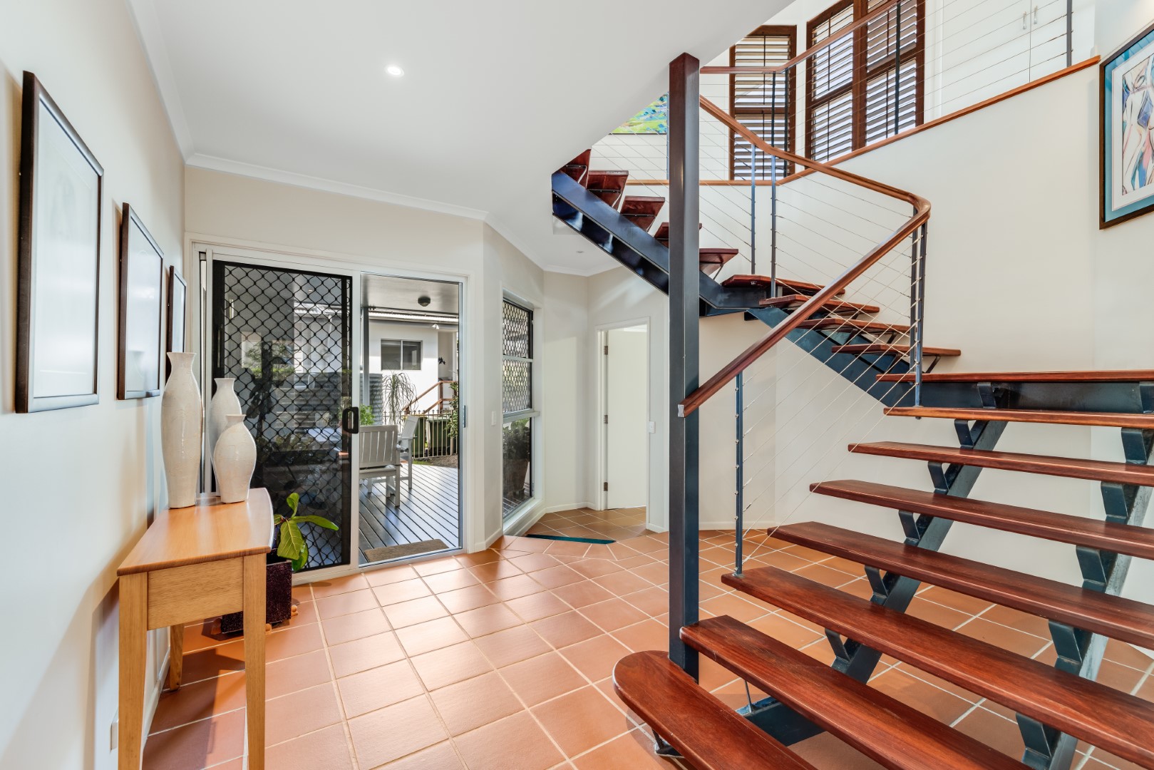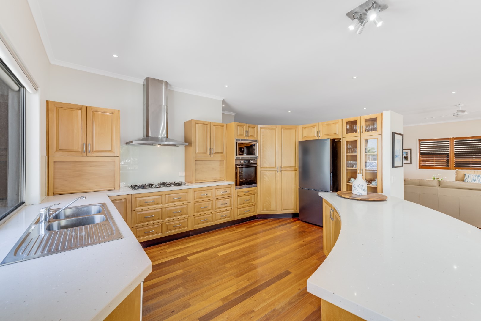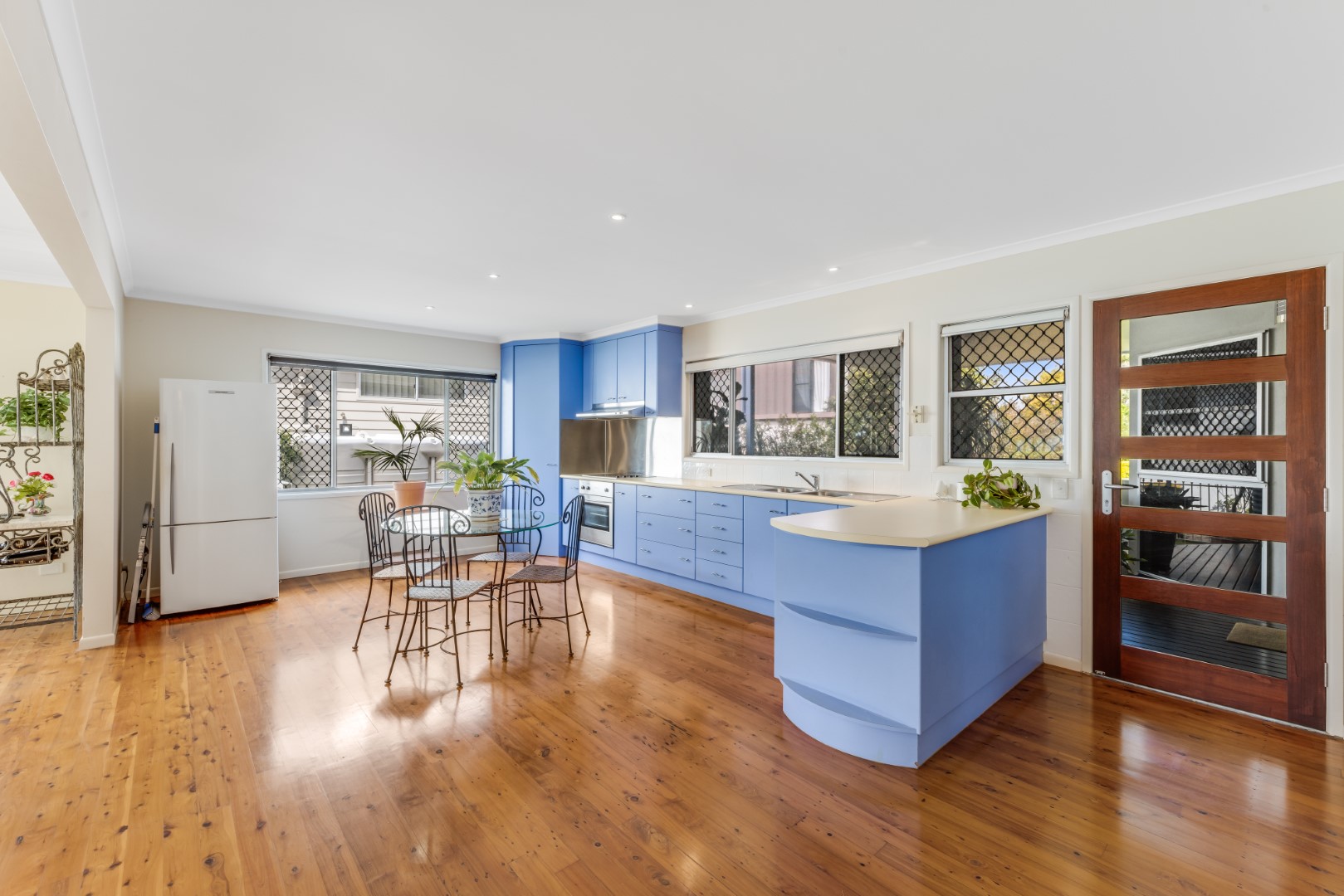An open-plan layout, high ceilings and generous amount of windows are designed to capture light, water views and sea breezes from all aspects. Indoor living flows seamlessly to outdoor living spaces. Timber flooring throughout provides for a lovely coastal feel.