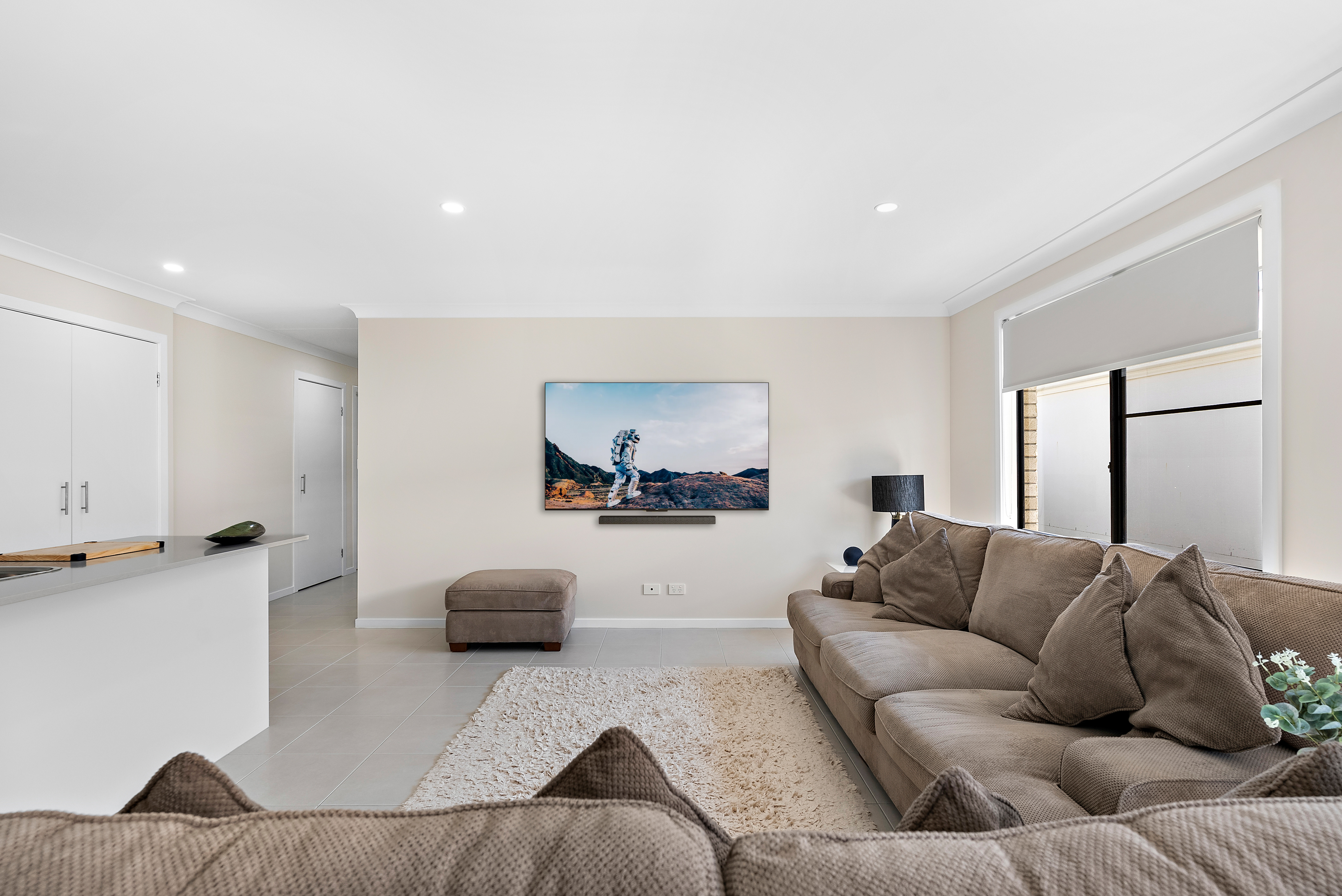 - Three generously sized bedrooms off the third living space, each with built-in wardrobes and ceiling fans - Main bathroom with bath, shower and separate toilet - Primary bedroom with walk-in robe and ensuite bathroom - Double car garage with access to the side of the property - Laundry equipped with direct access to clothesline, cabinetry, and ample storage - Solar Panels (8.8kw) - Air-conditioning to main living and primary bedroom - Security screens throughout - Stunning window coverings throughout - Low-maintenance gardens and a large yard - Fully fenced and private yard - Side access!