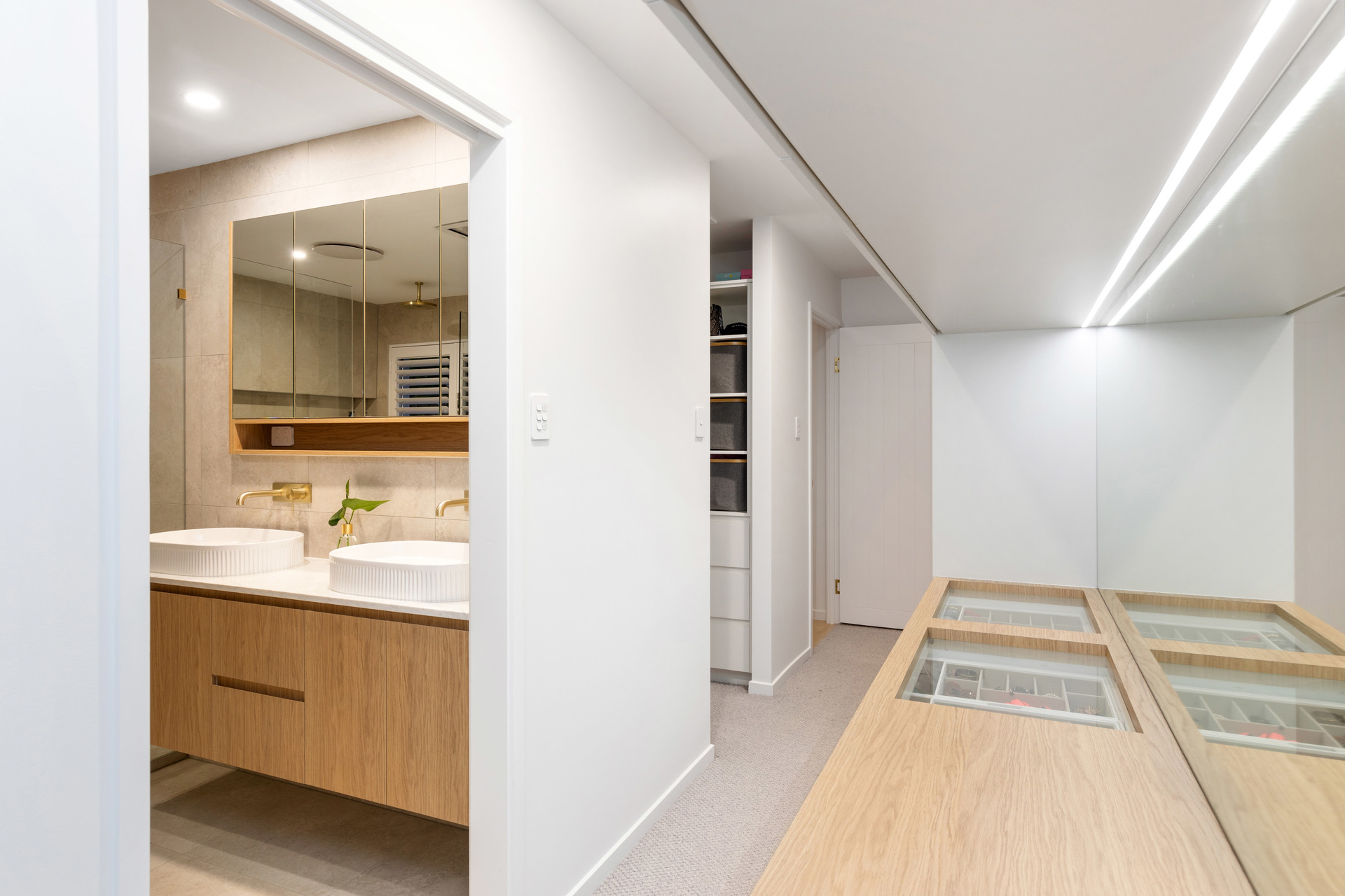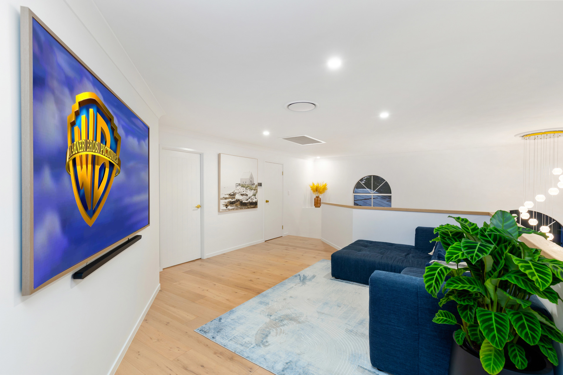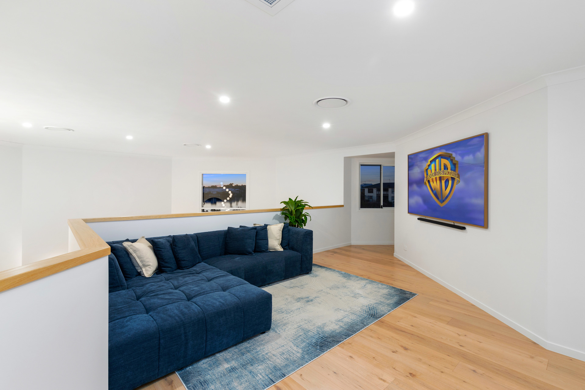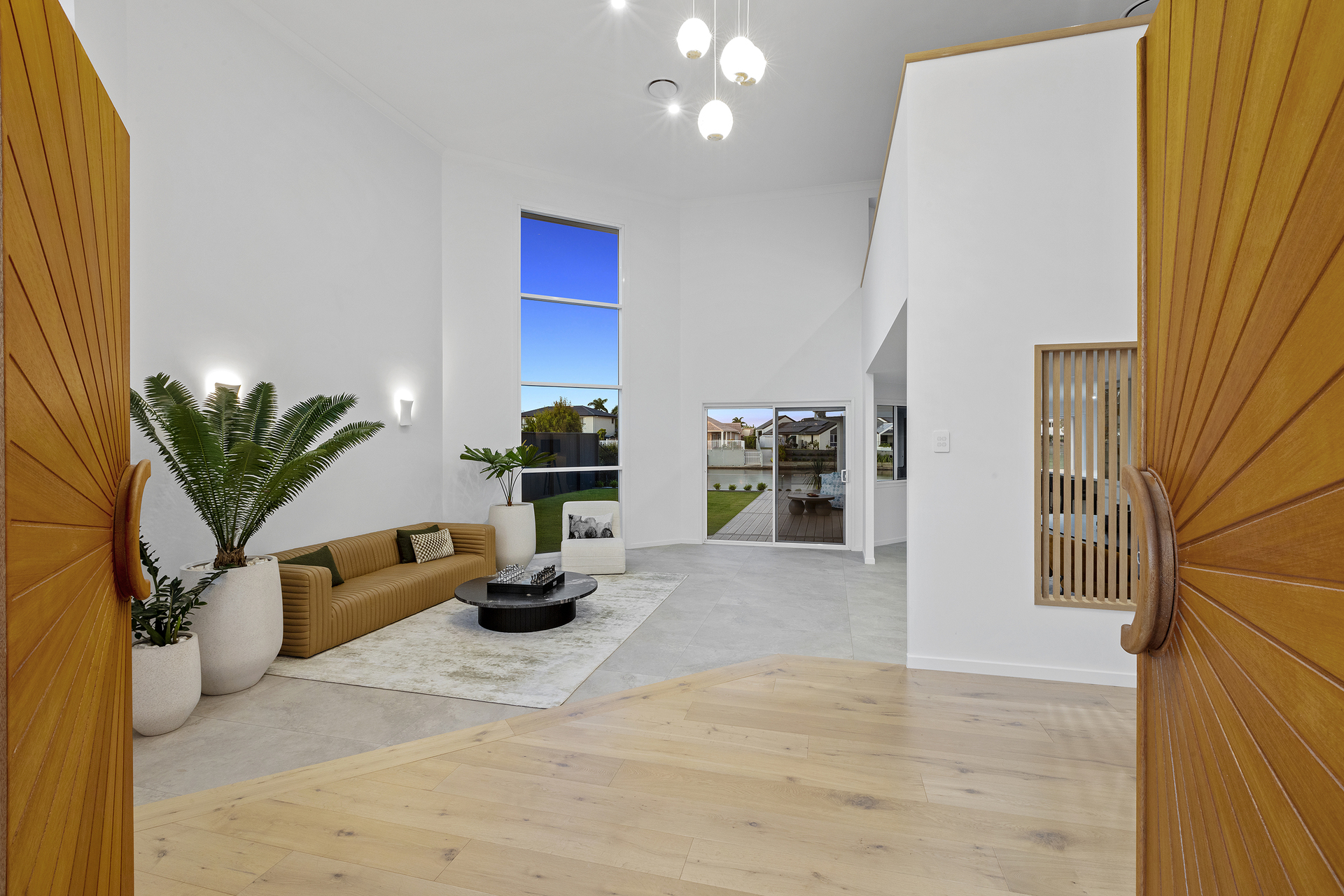 The master bedroom is a testament to luxury, featuring a 'star-gazing' balcony boasting waterfront vistas, an expansive wet-room shower with dual rain-shower heads and integrated bench seat, heated vertical towel rails, electric blinds and a custom designed dressing table. The parents' retreat also offers a media room and office that doubles as a nursery or fifth bedroom.