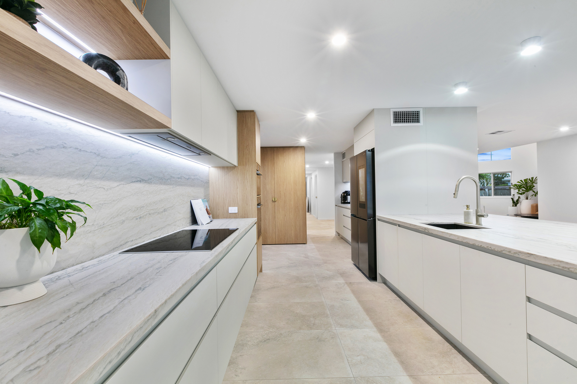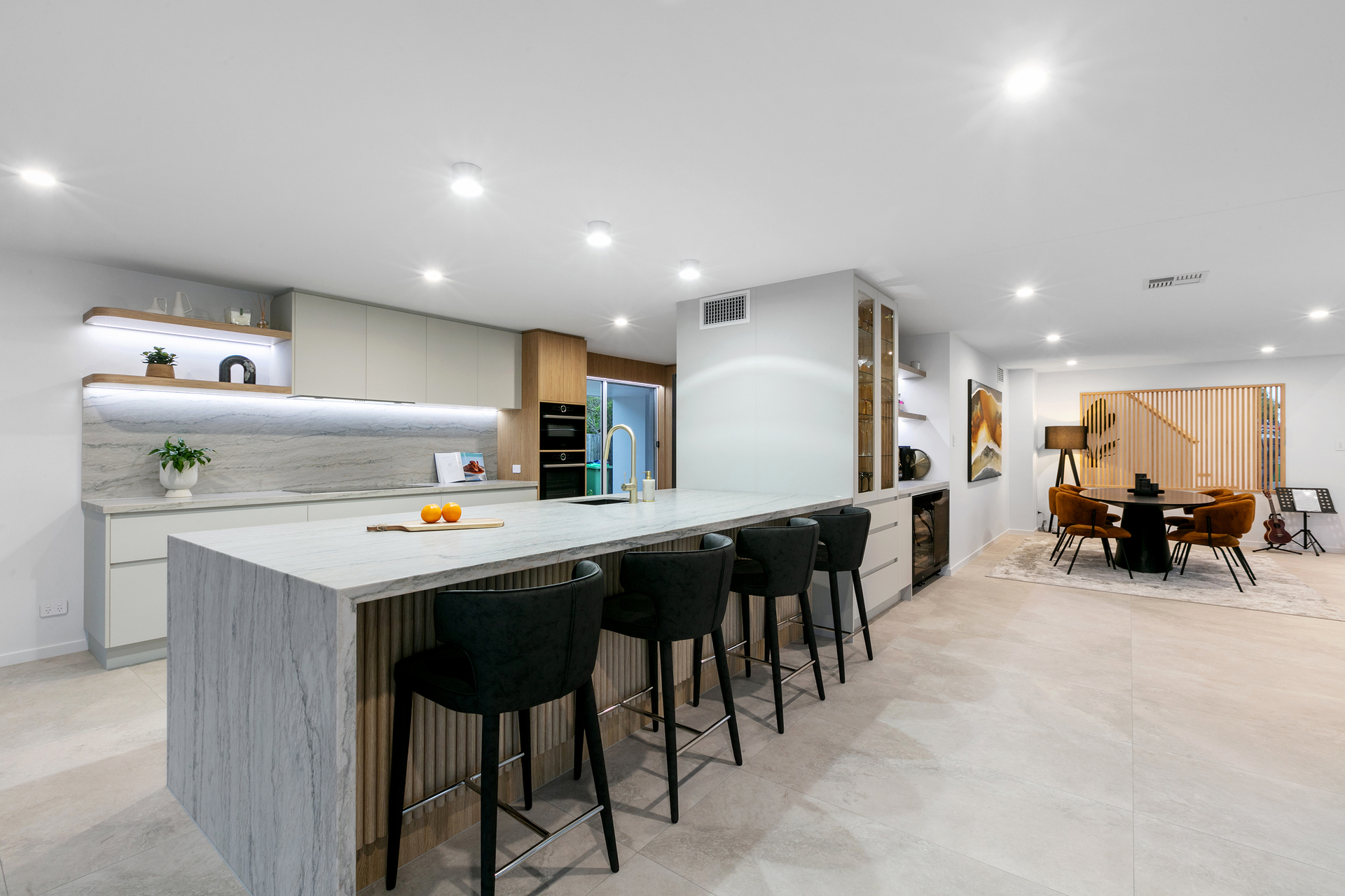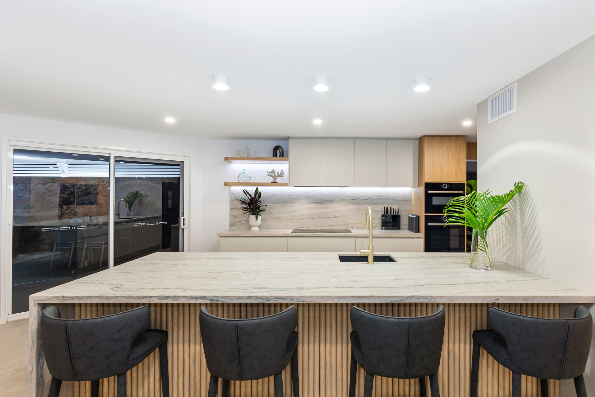- Rare Quartzite stone bench tops and splash backs with high-end leather grain finish - German Bosch 900m induction cooktop