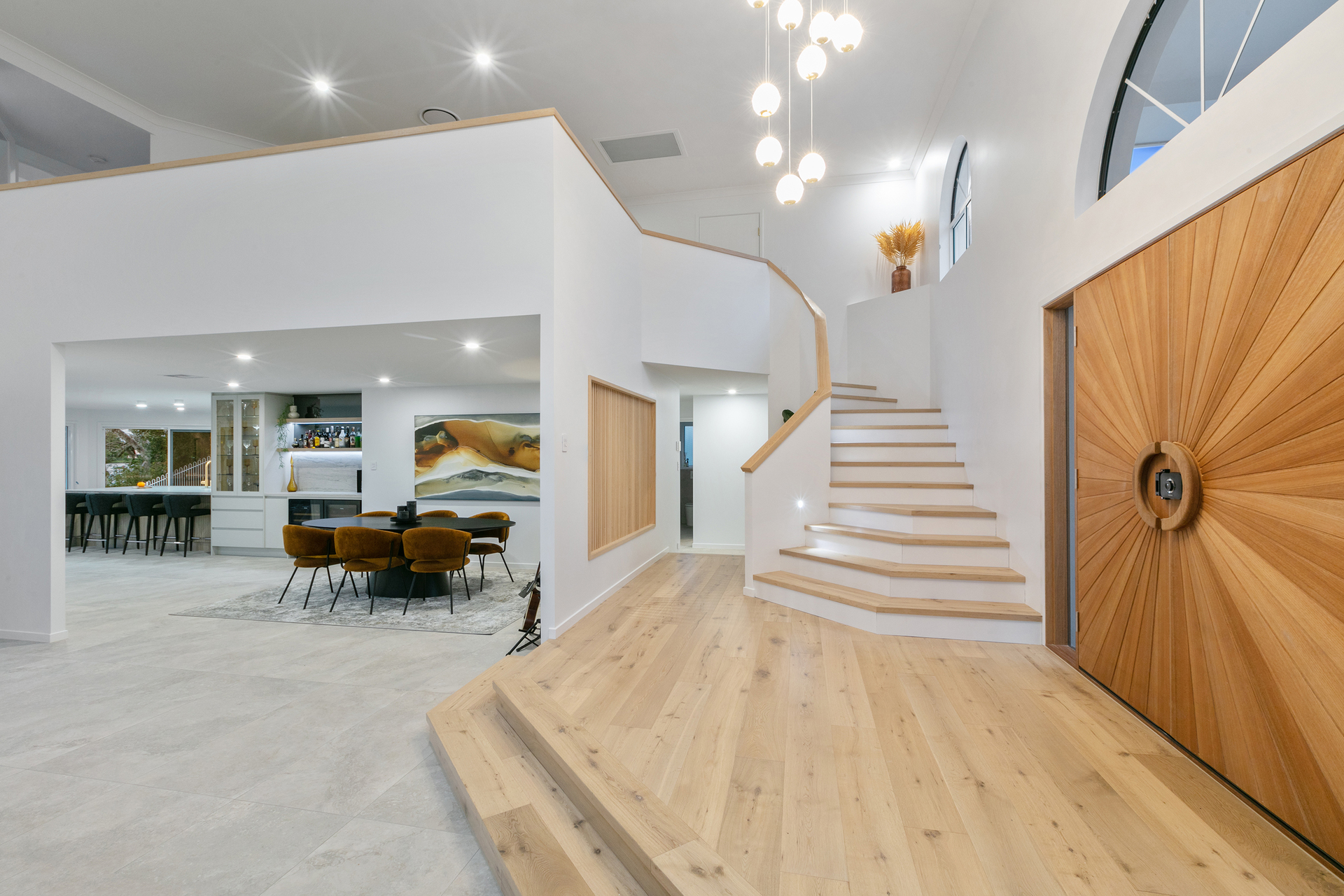 - State-of-the-art security system, intercom - Automated front sensor entry gate and pin-code front door - European oak floors, hand-crafted American oak staircase rail - Custom feature front wall with blue LED illuminated street number and strip lighting