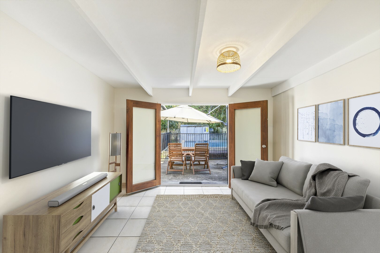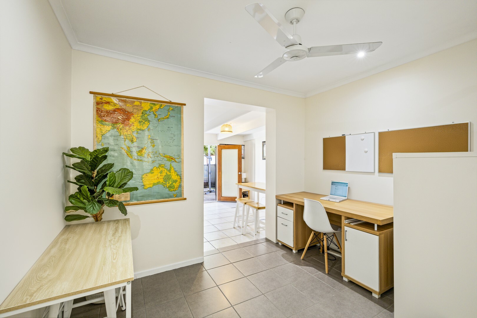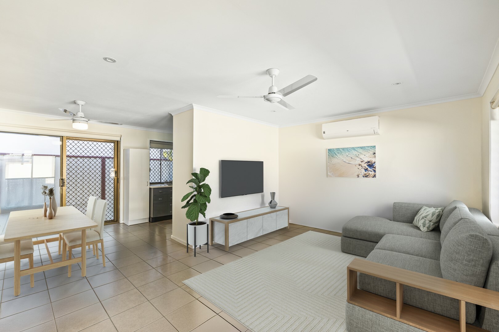 - Air-conditioned open plan living, dining and kitchen