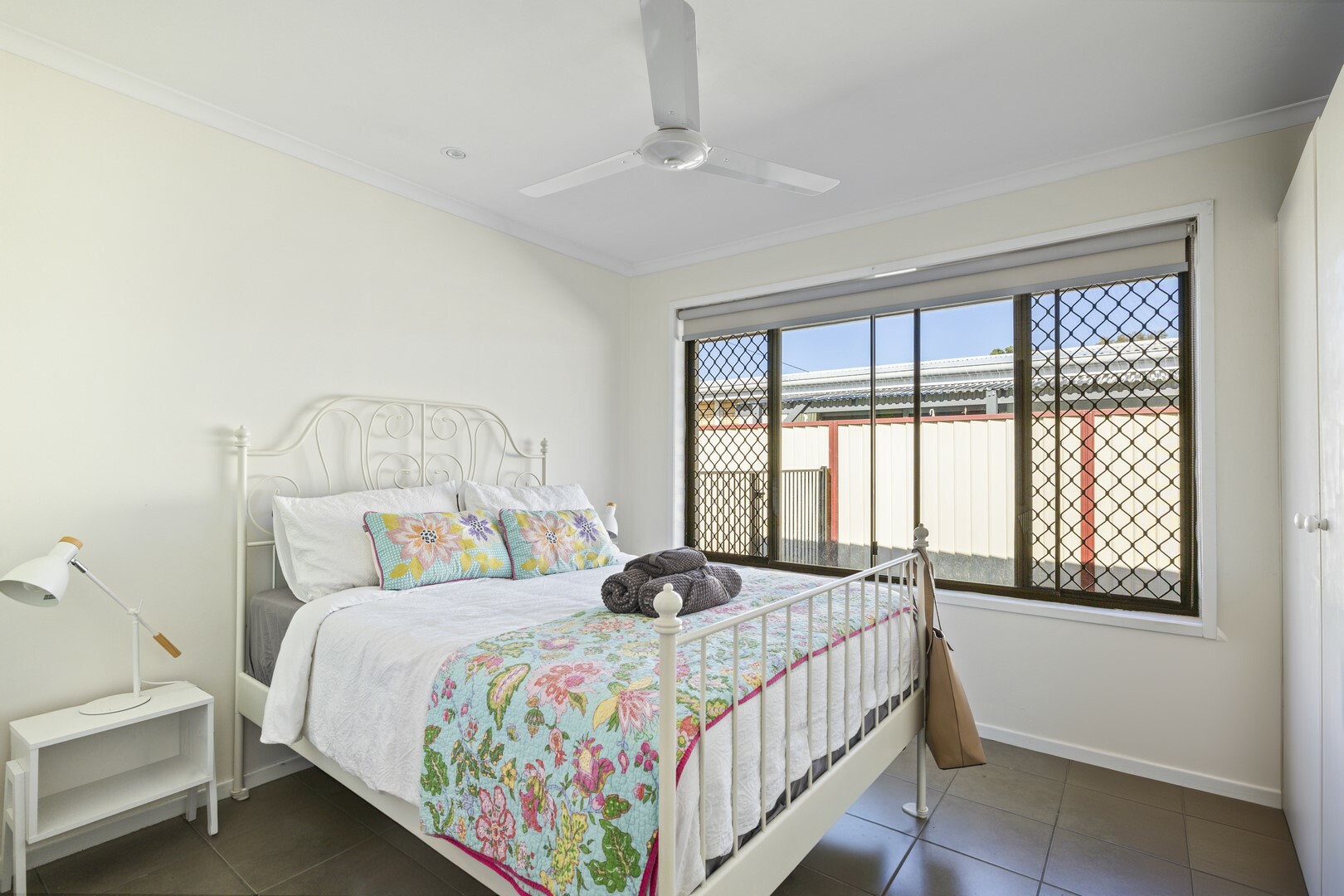 - Fenced backyard with bush backdrop