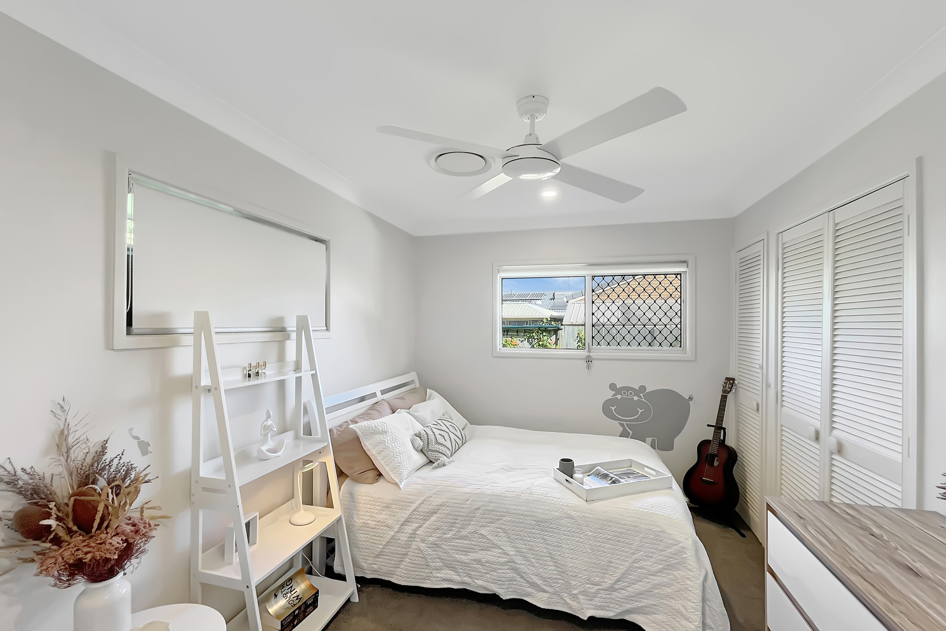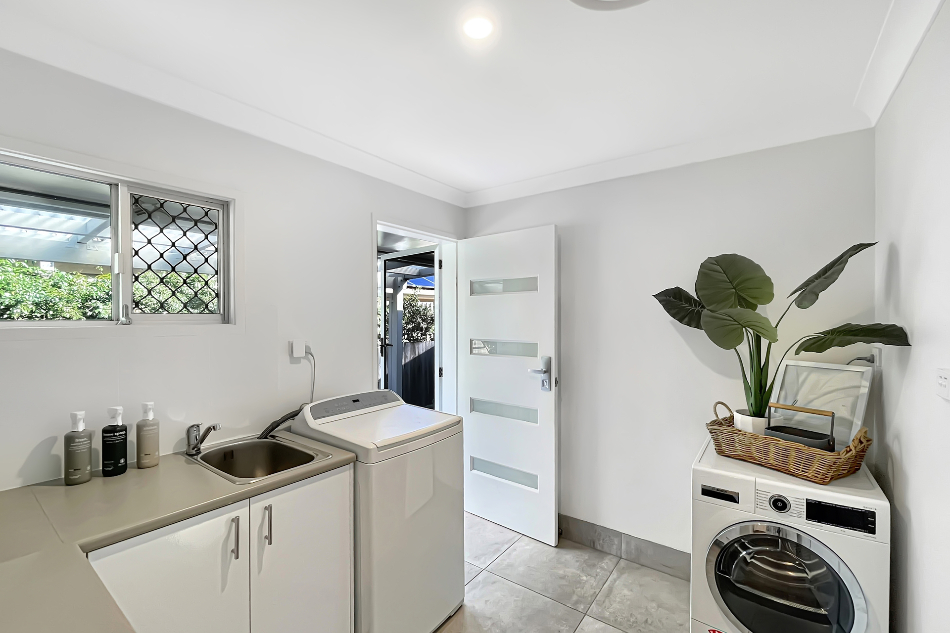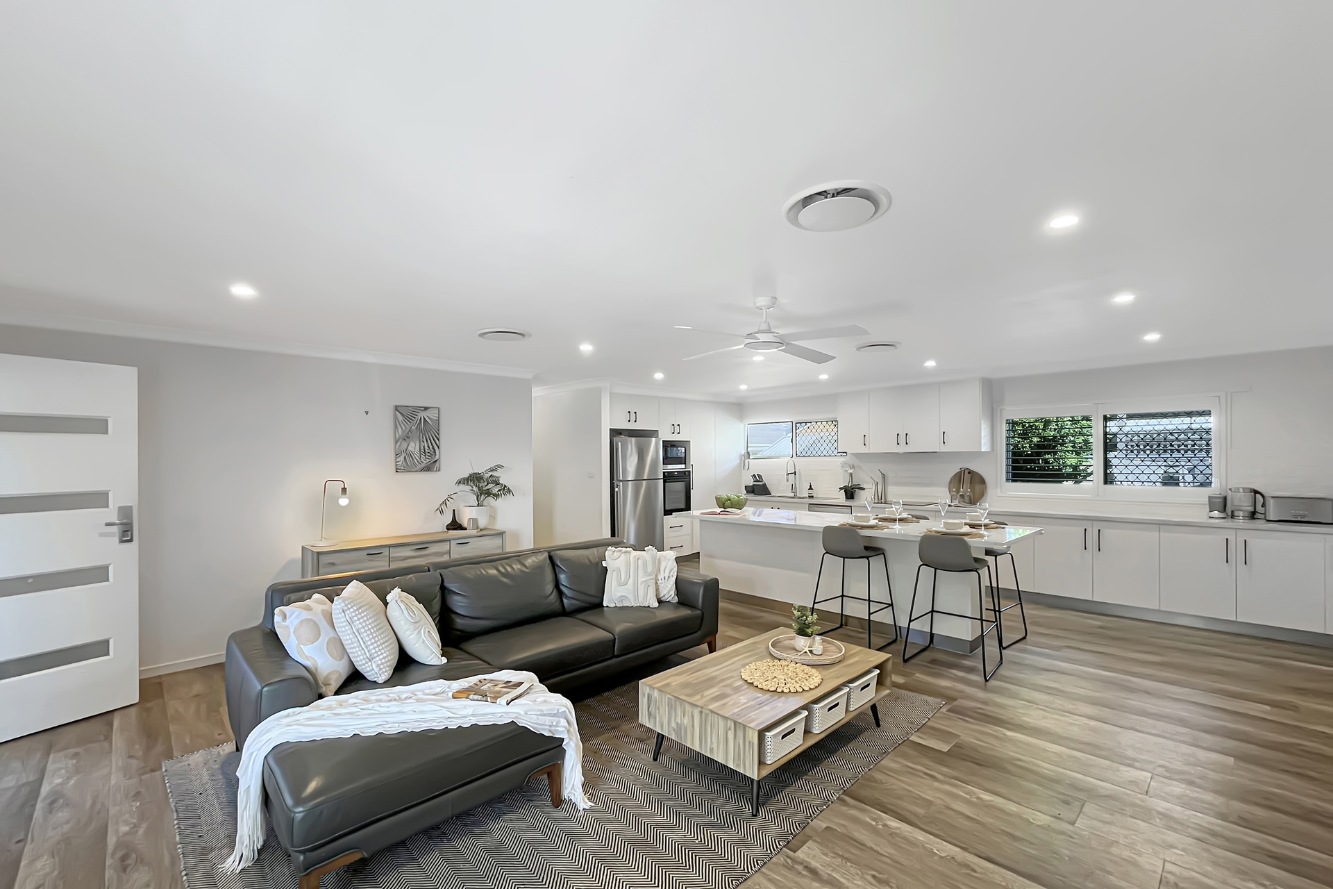 - Two dedicated entrances to the property; enter through the spacious living area of via the back deck/laundry area - Three bedrooms share a wing; each has a fan with built-in wardrobes and blinds - Family bathroom has been upgraded with a bath and separate toilet