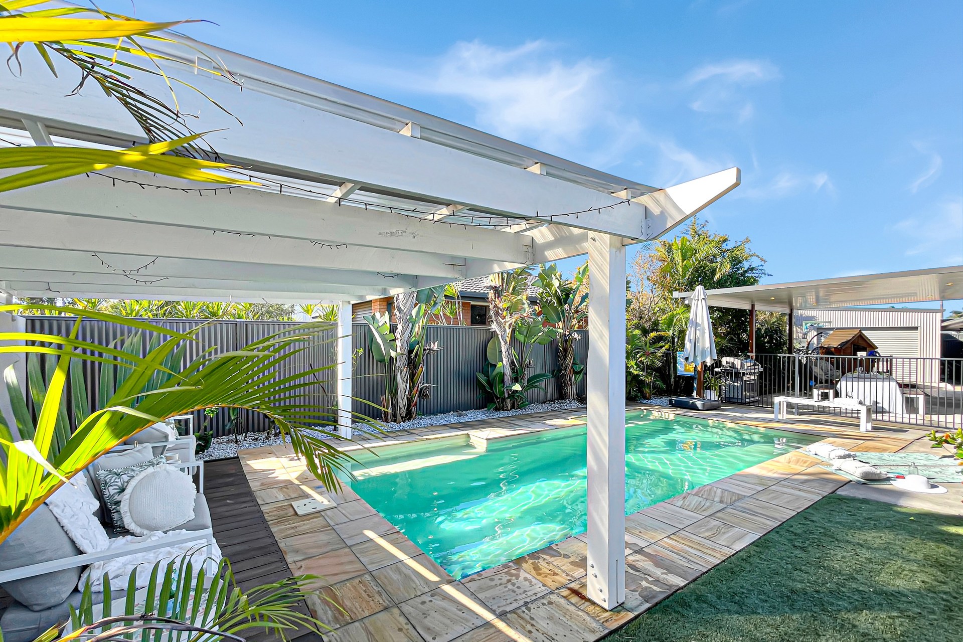 Recent Additions: - Carport with skillion roof (ability to fit caravan) - Electric gate for carport and pedestrian gate access - Rendered wall (core filled) for privacy and security - Poolside hardwood hut