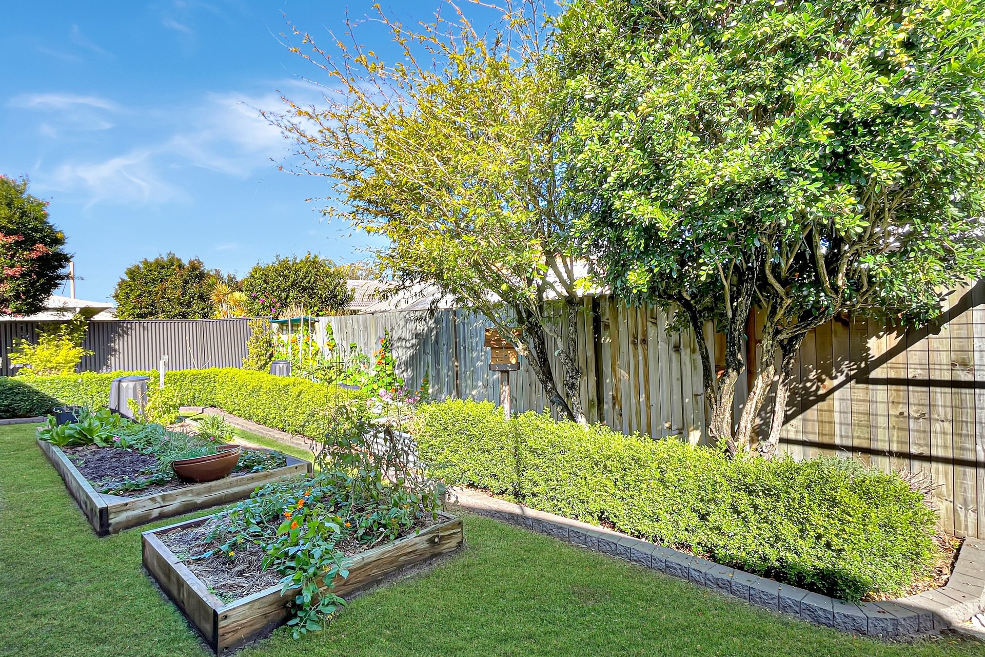 - Two streamlined garden sheds at the rear of the property provide storage solutions - Gardener's delight with established veggie patches; electric pump bore keeps water costs to a minimum
