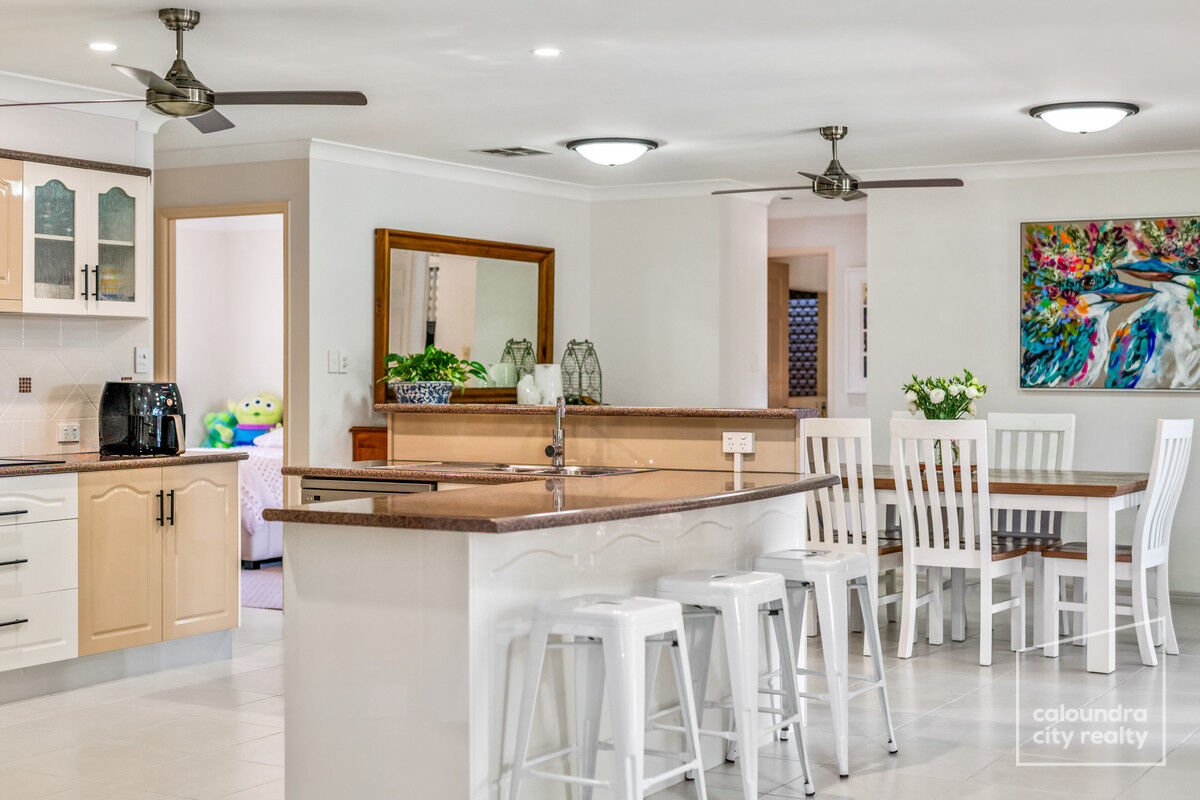 Discover the perfect blend of space, comfort, and practicality in this exceptional home, located in the sought-after Pelican Waters precinct. This original Terry Beavis-built home is known for its solid craftsmanship, offering a family-friendly design in a fantastic location across from a park.