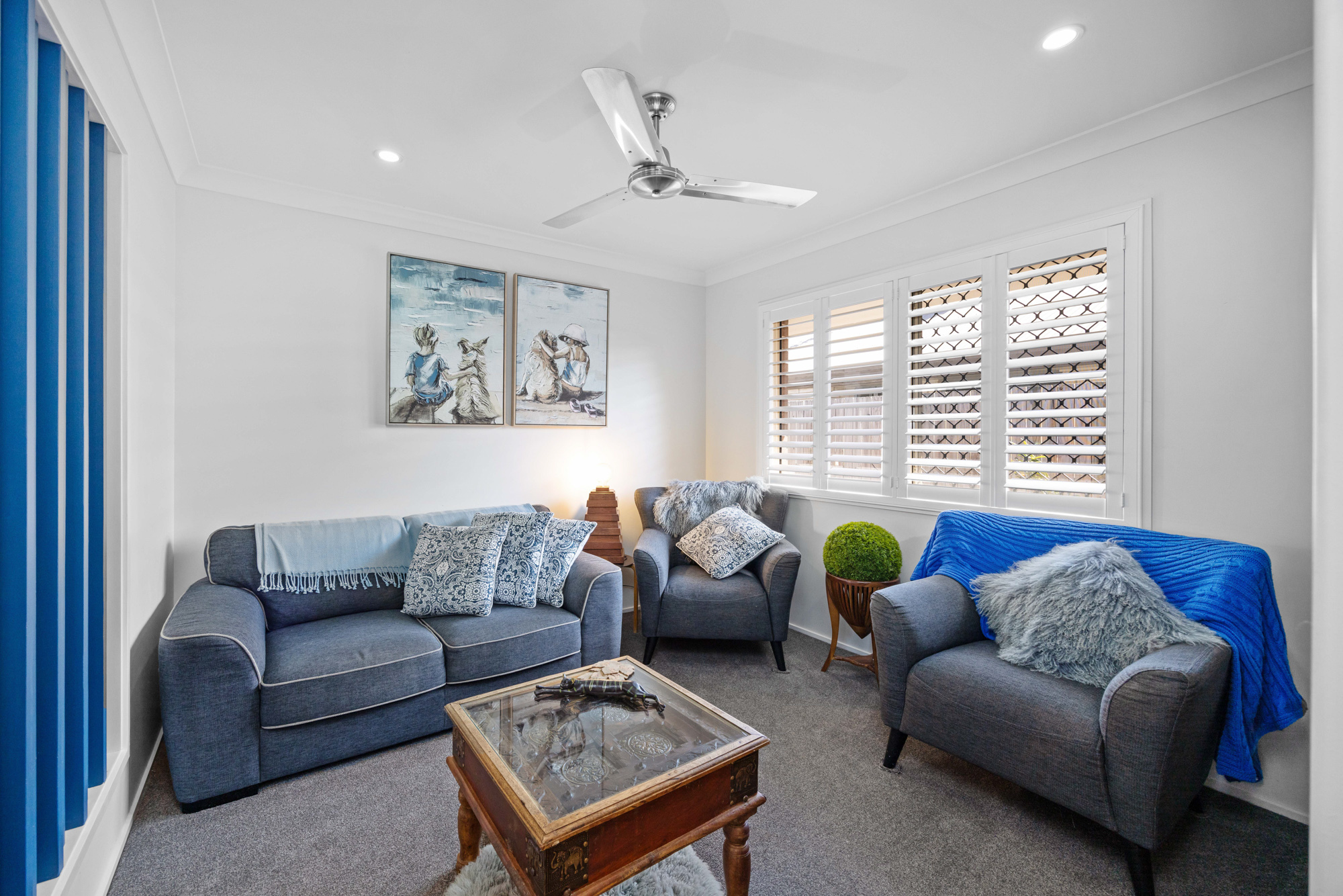 All on one level for easy care and functionality, the home is complete with three separate living areas, four bedrooms, two bathrooms, central kitchen, beautiful covered alfresco patio, front porch, separate laundry, and gated side access to bring in a boat/ trailer.