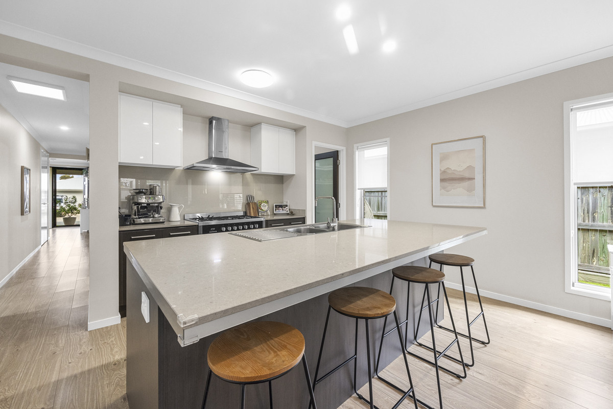 skylight in living, separate shower and bath in main bathroom, dual vanities in ensuite, direct patio access from master, hybrid timber-look flooring in main living, garden shed, outdoor BBQ pergola, 5,000-litre slimline water tank for laundry and toilets, custom-built cubby house, and 6.6kW solar power – are among the suite of features that add value and boost appeal.