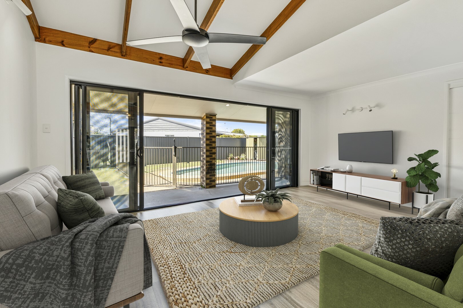 When you’re not at the beach relish time with family and friends in the undercover outdoor entertaining area that overlooks the sparkling inground swimming pool.