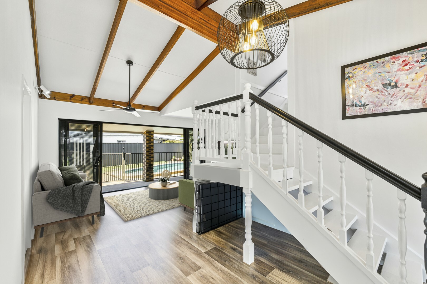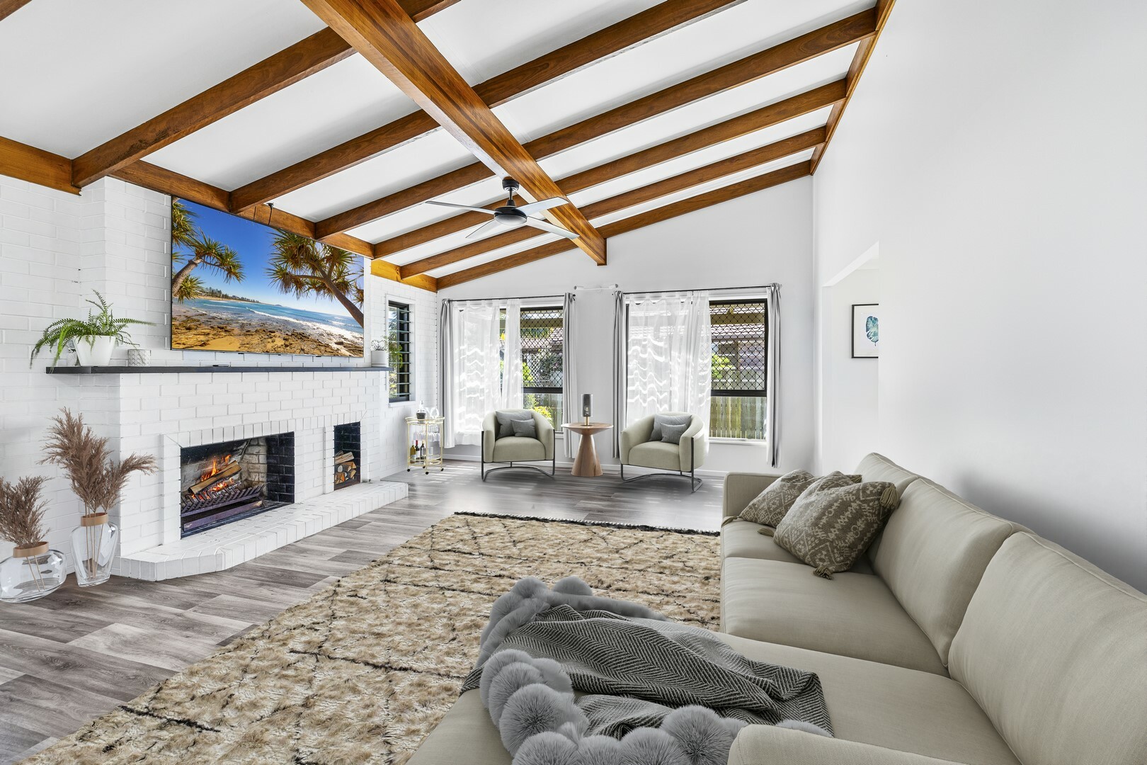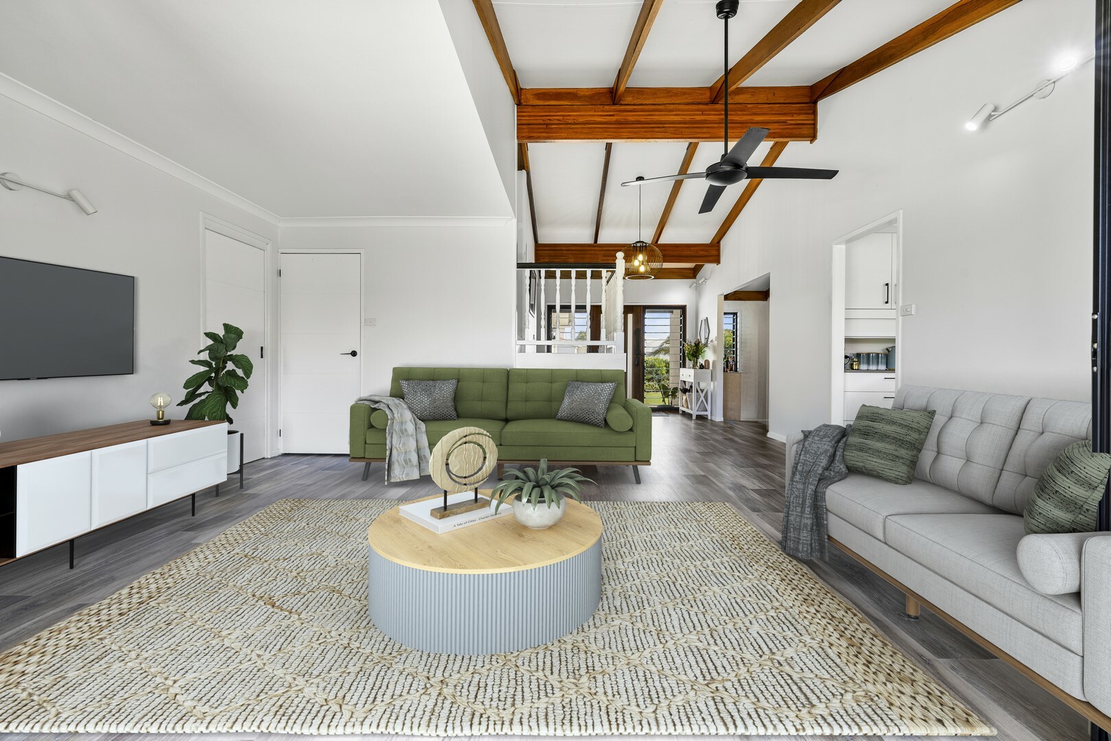 - Two separate living areas both with high ceilings