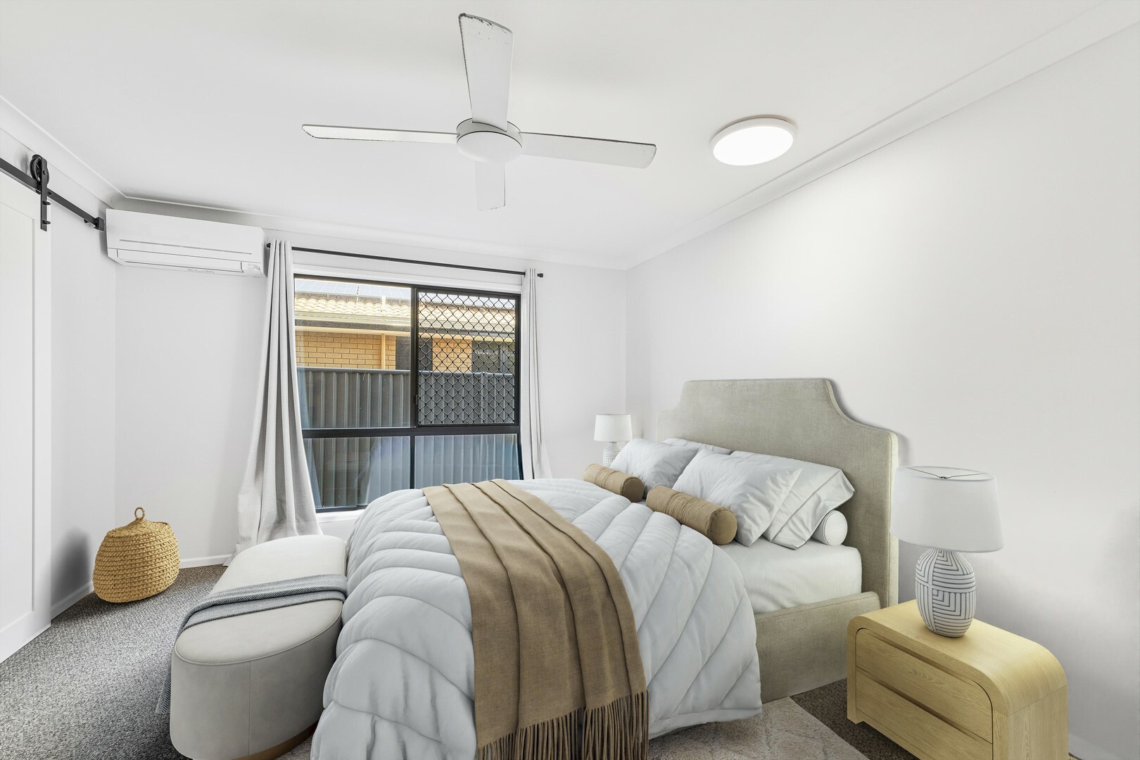 - Three bedrooms all with air-conditioning, ceiling fans and robes