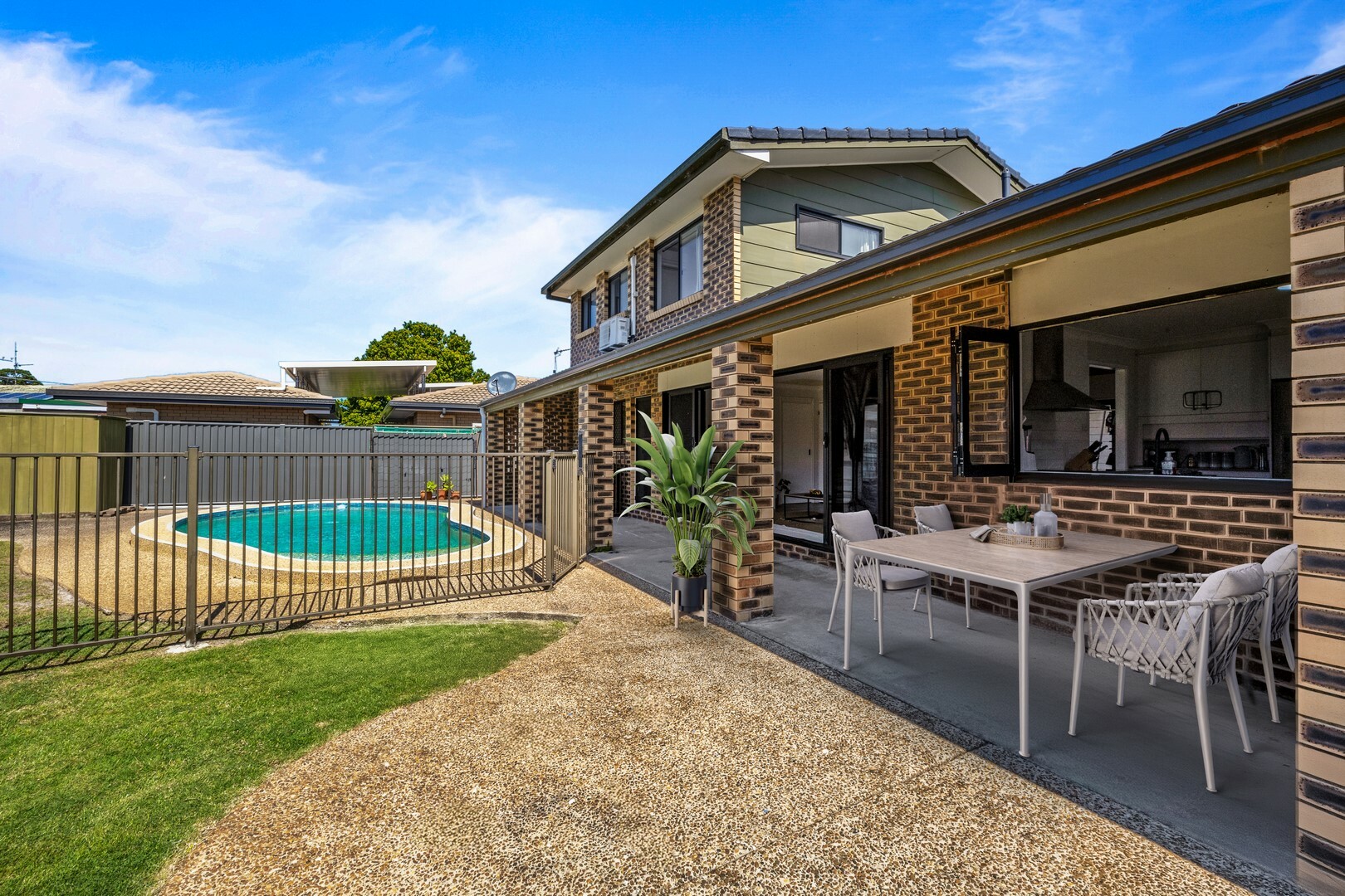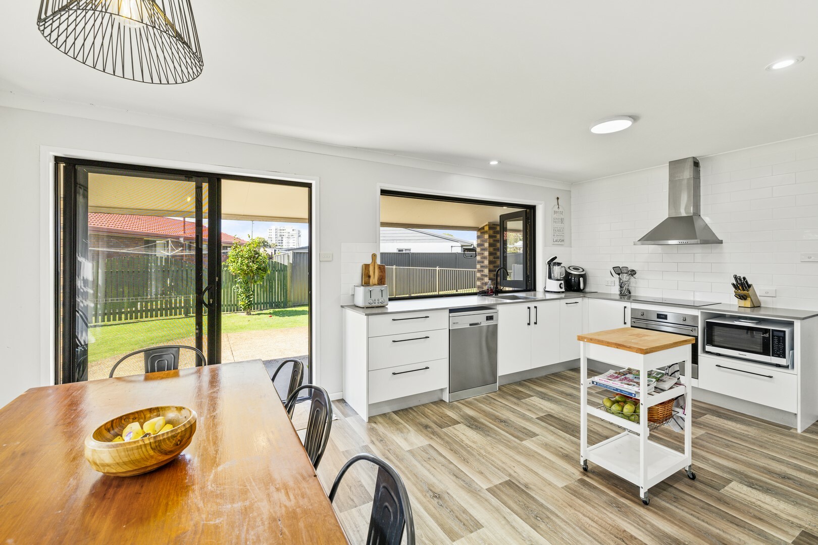 - Centrally located kitchen and dining with stacker windows and servery to the outdoor area