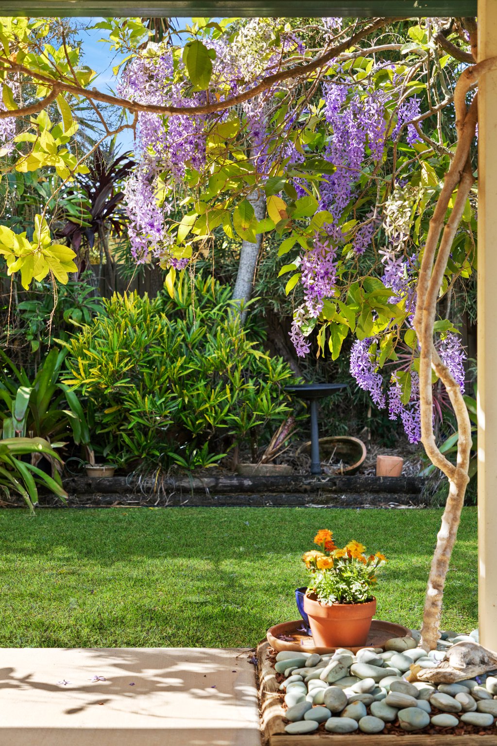From the minute you walk in the door, you are blessed with natural light and lovely spring breezes. Numerous sliding doors open onto the outdoor patio and lush gardens. The large outdoor patio is currently brimming with bunches of stunning Petrea (Queen's wreath) that provide the ideal space for summer brunches or an escape from the everyday hustle and bustle. This home is fully fenced which gives you lots of space and privacy. You have side access to the garden from the front yard through a side gate, that you can use for bikes, kayaks and SUP's. A shed at the rear, gives you further options to store gardening tools and other items. The kitchen sits in the centre of the home and offers you a great vantage point to keep an eye on the kids, family and pets. The master bedroom is situated at the rear of the property. With large windows that look out onto the garden and give you the perfect place to unwind and rest.