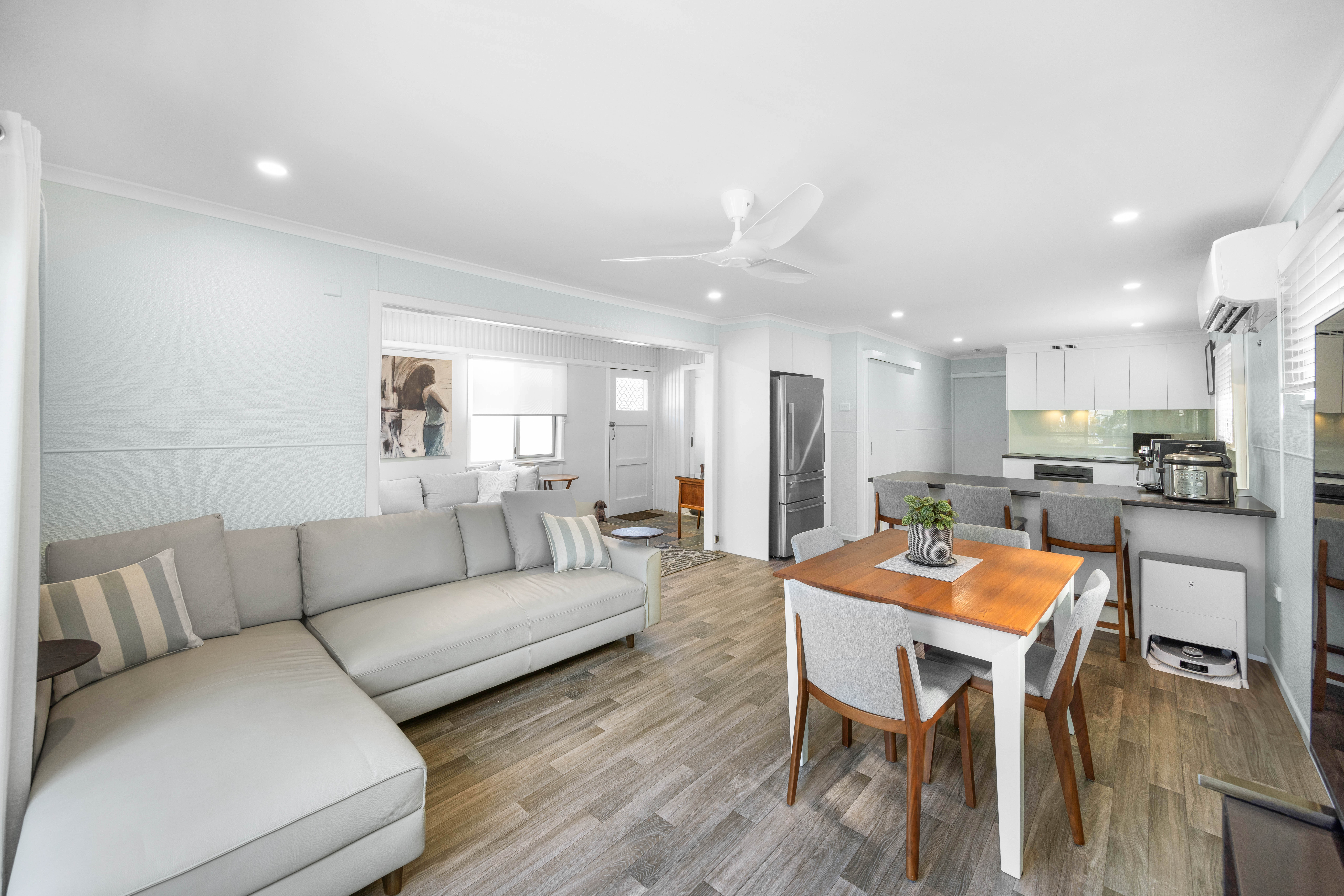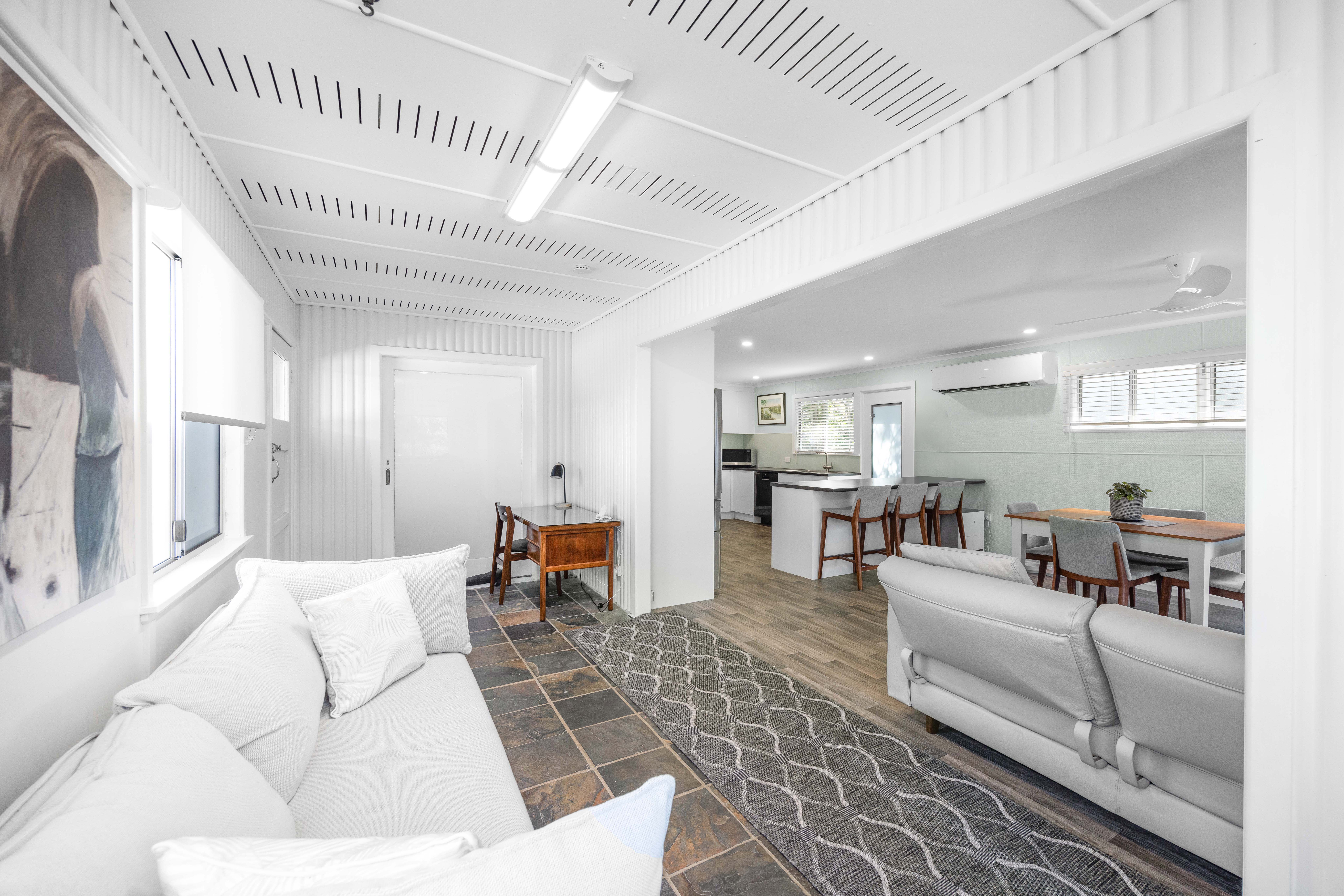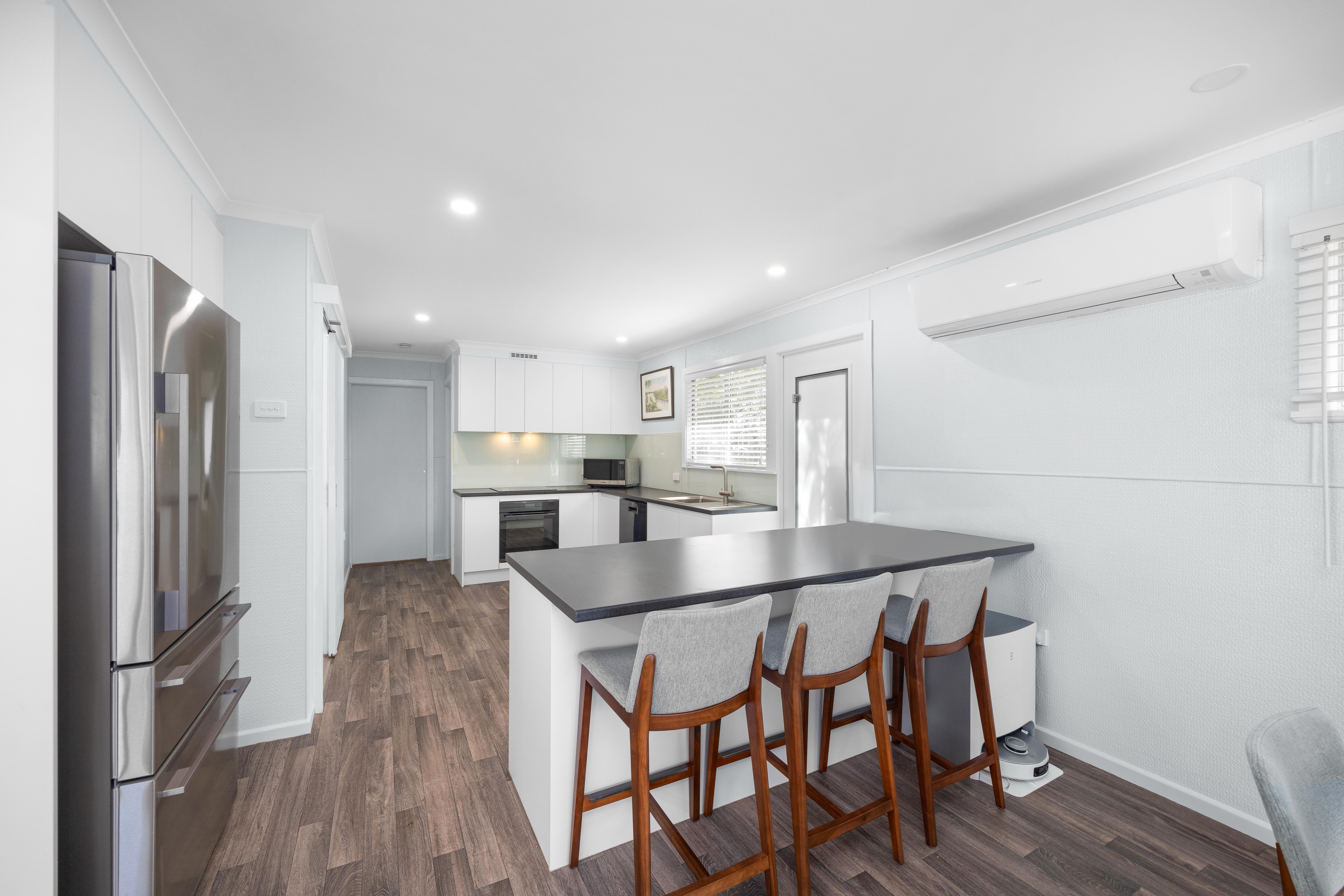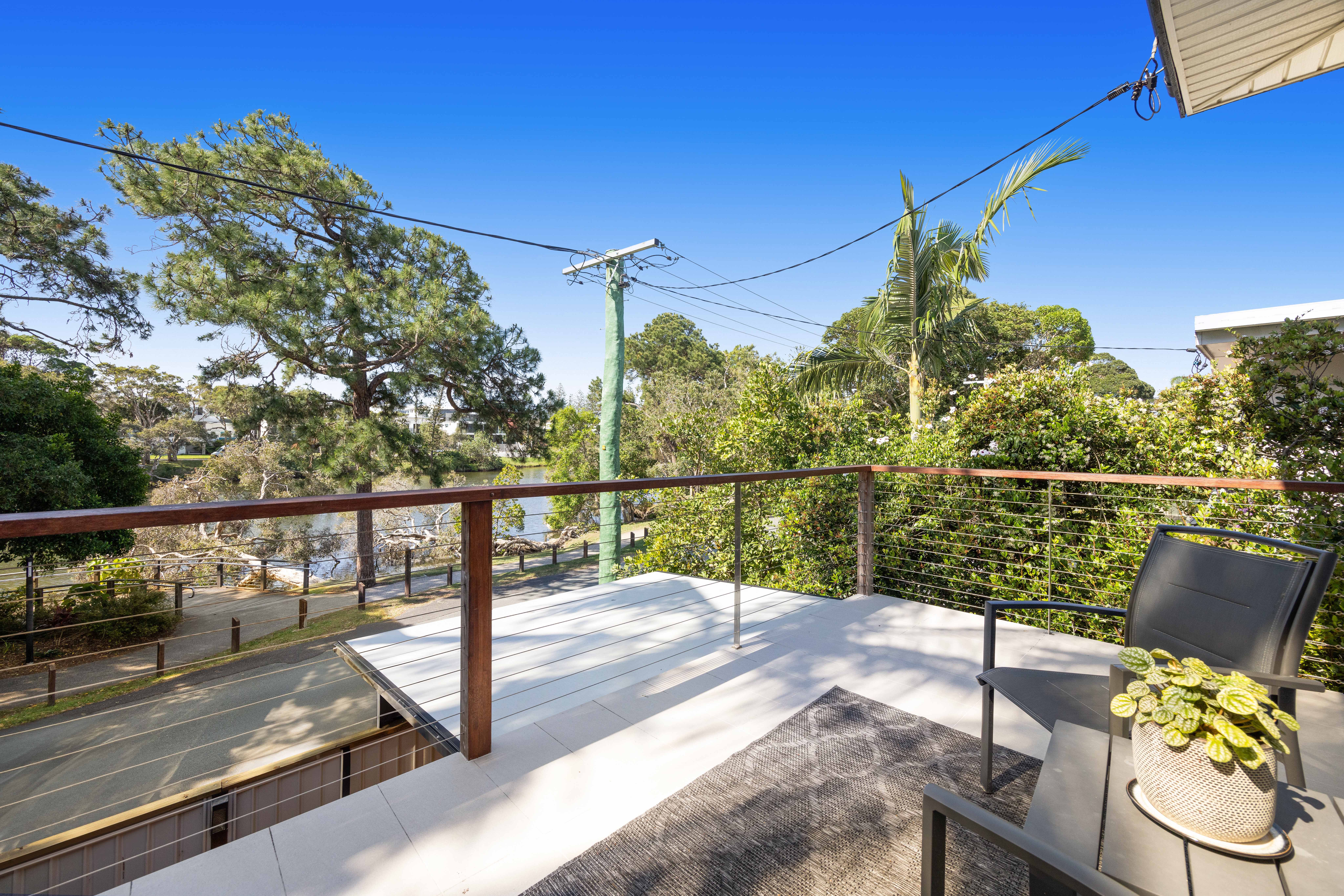 The home features an open plan living area which spills onto the front deck overlooking the leafy waterfront and ocean beyond - perfect for afternoon drinks at the end of a busy day at the beach.