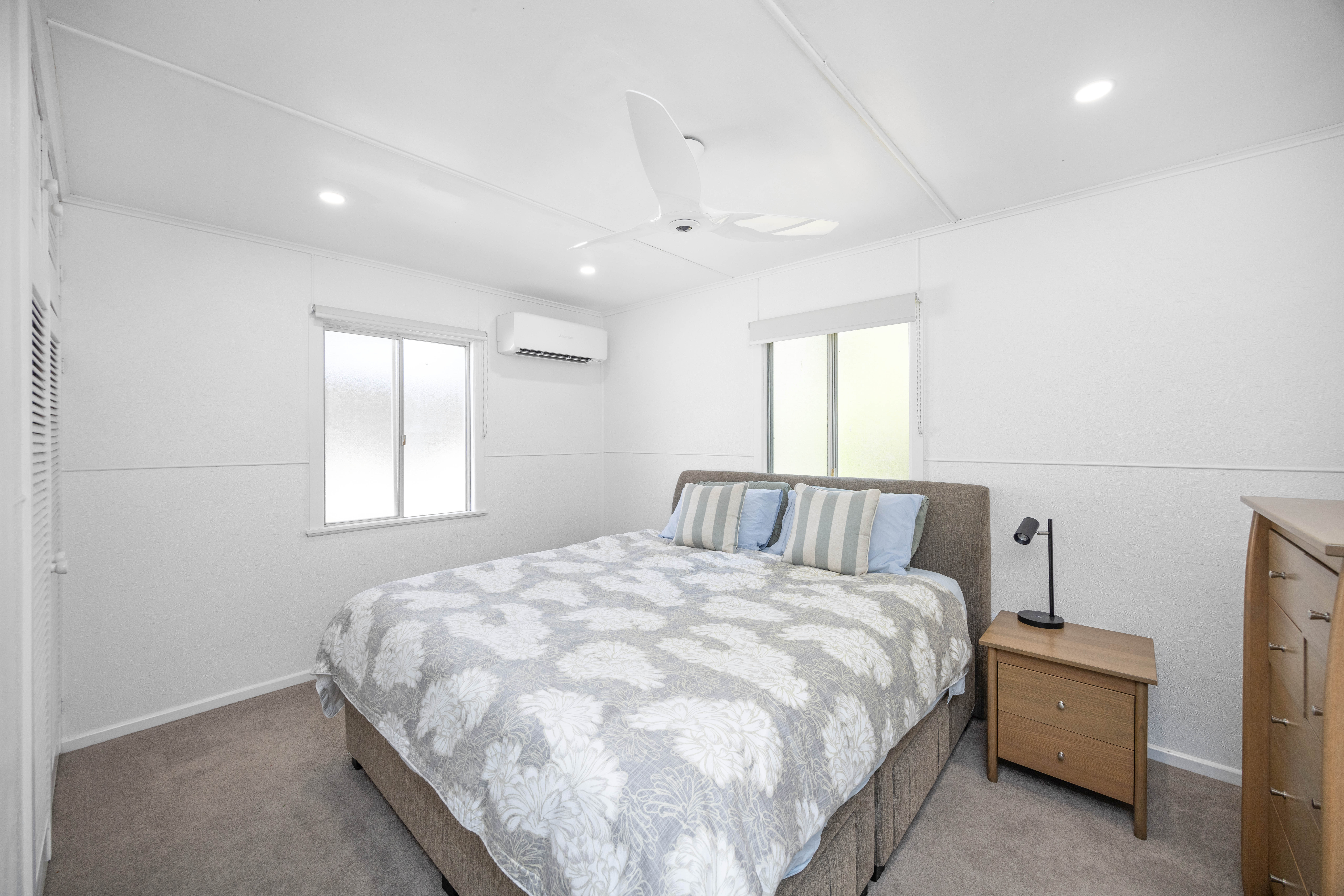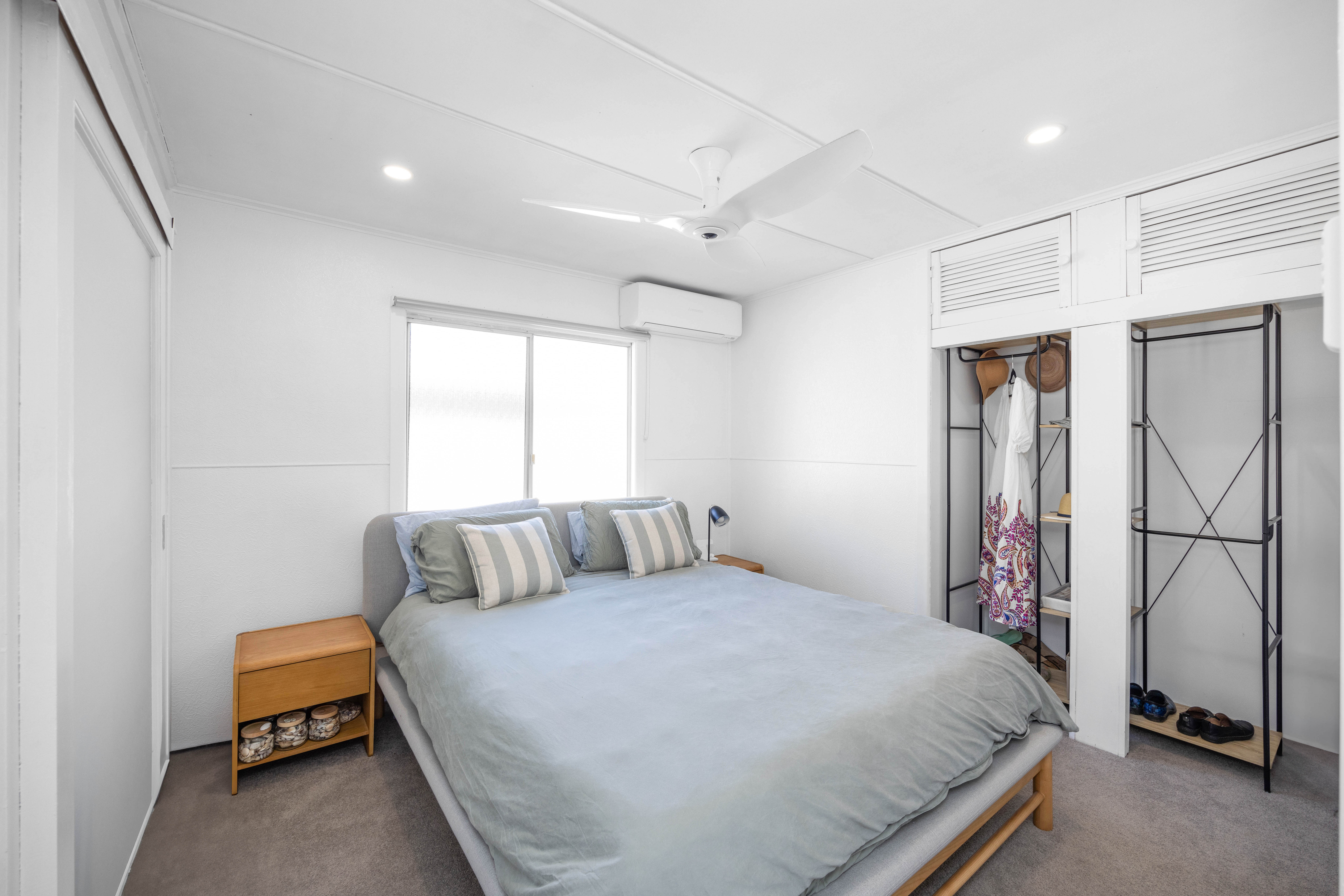 Downstairs there is one bedroom perfect for visitors, a large covered patio for family barbeques and a large lockable storage area for all your beach toys and more. There is also off-street parking for a boat or van adding to the versatility.