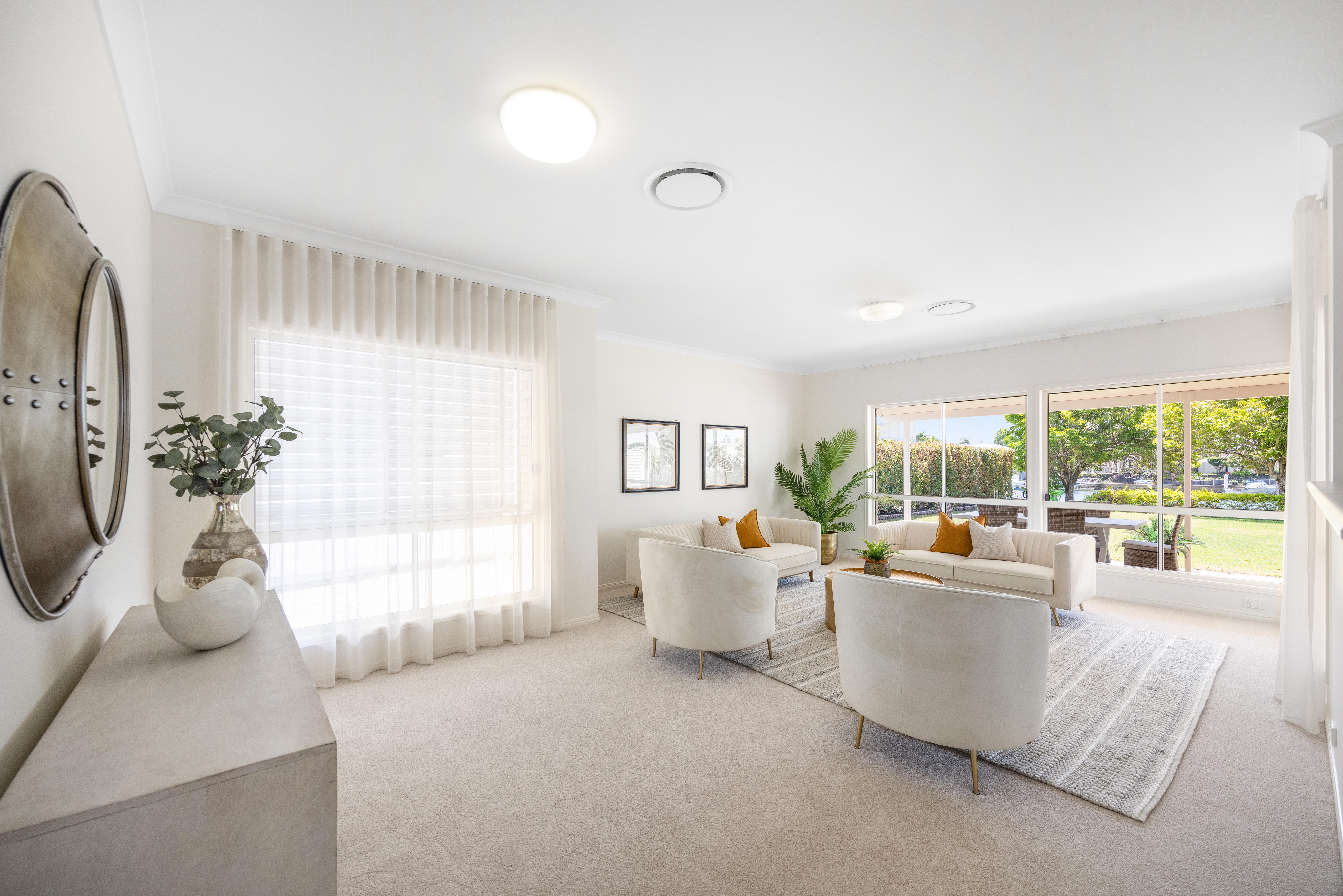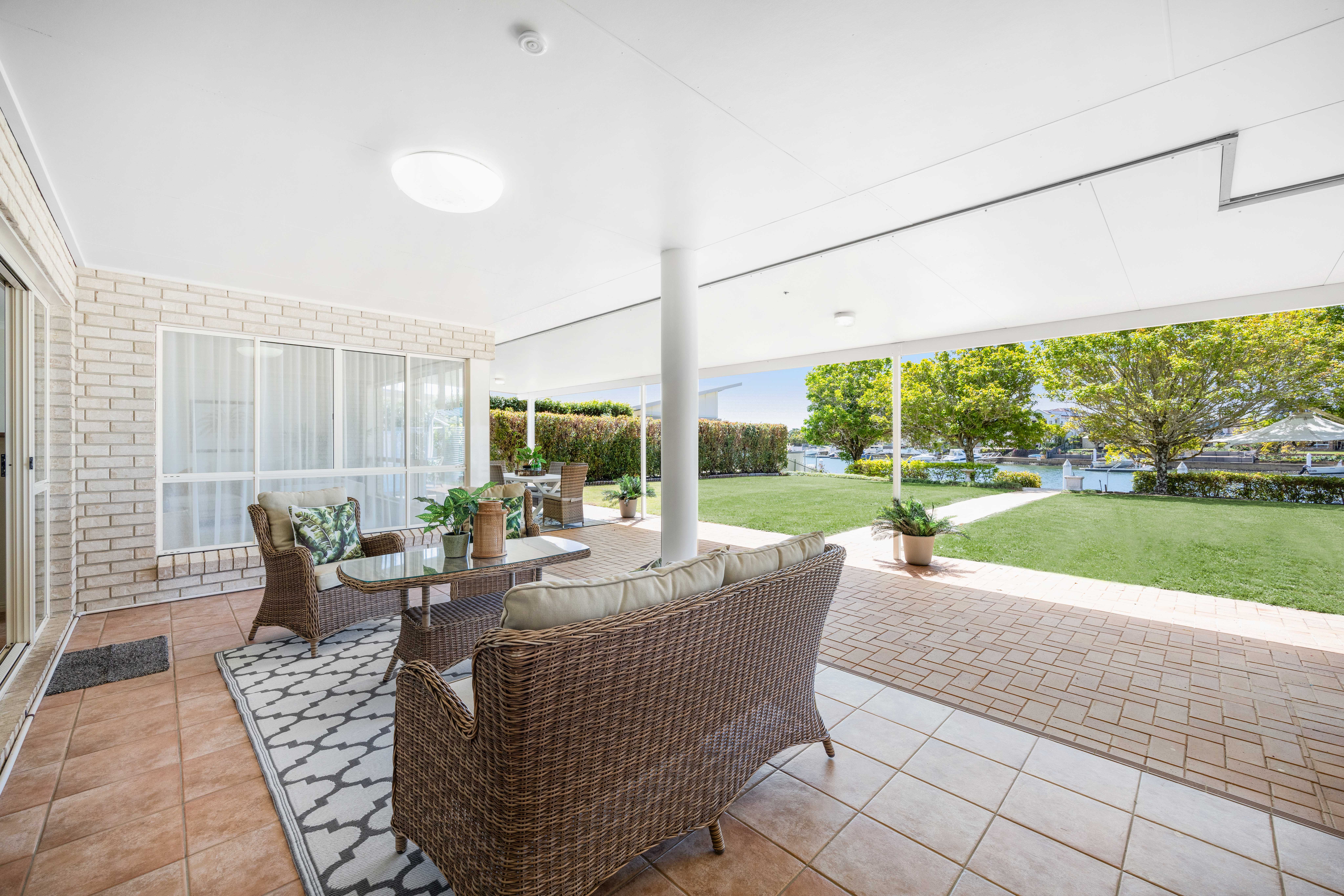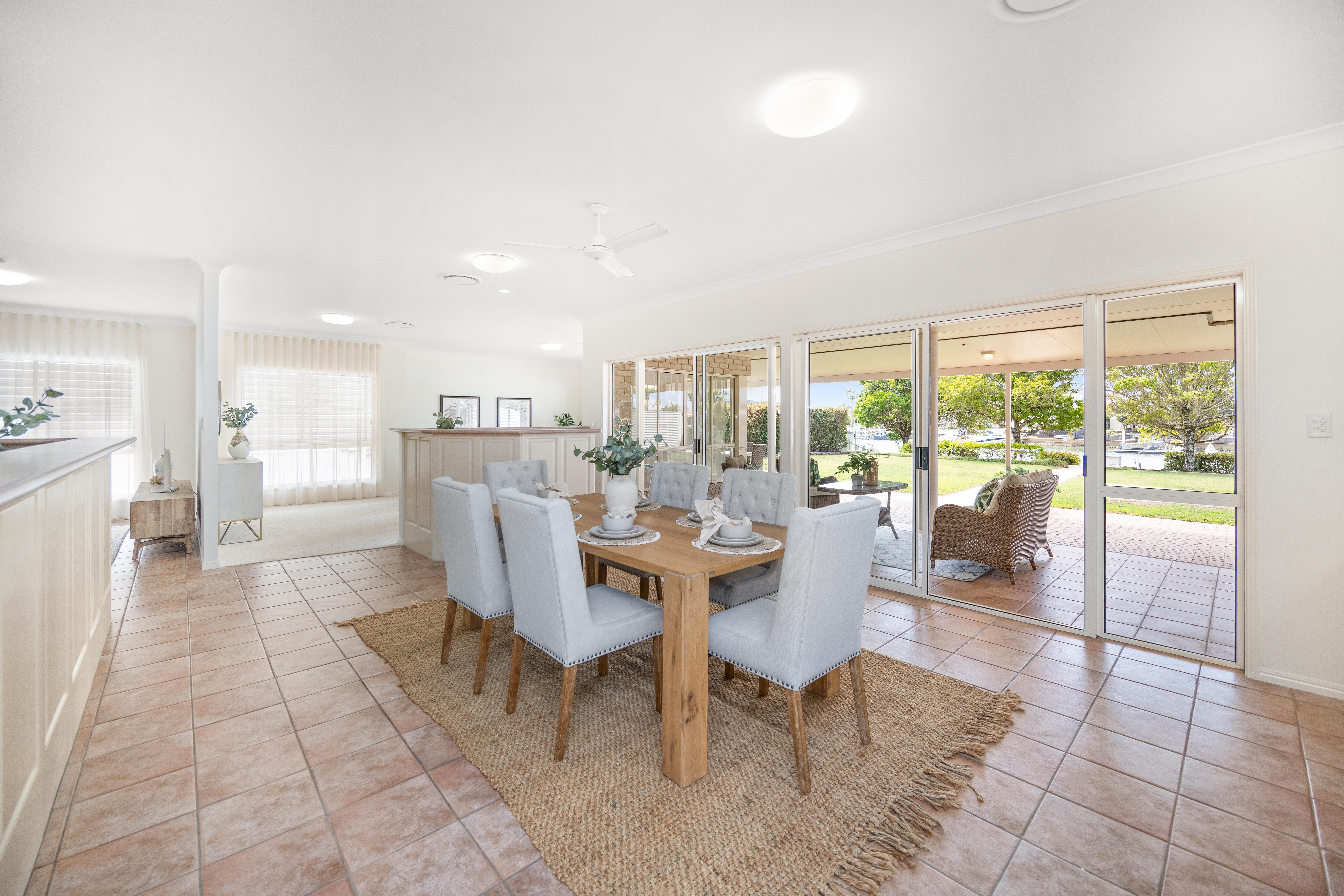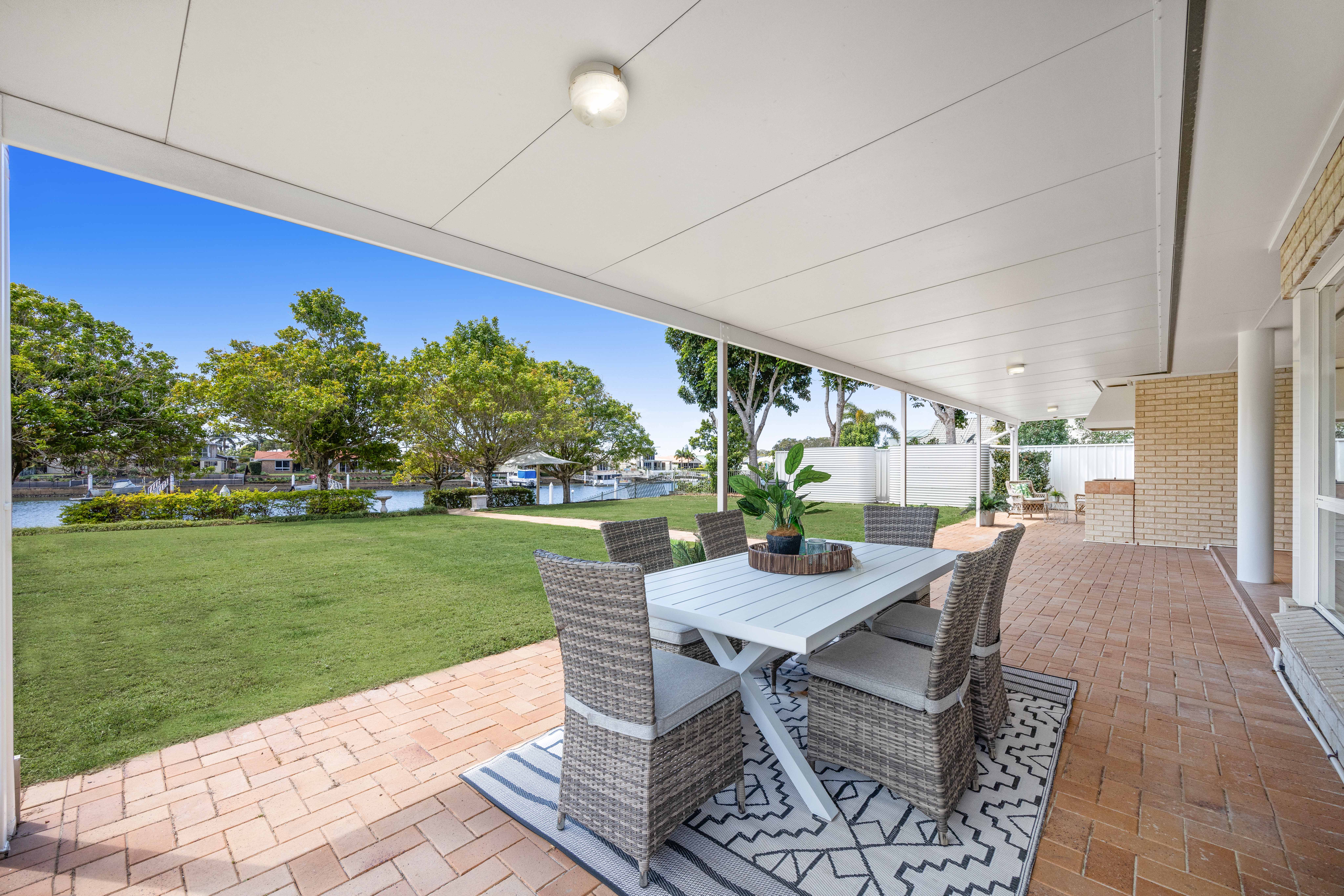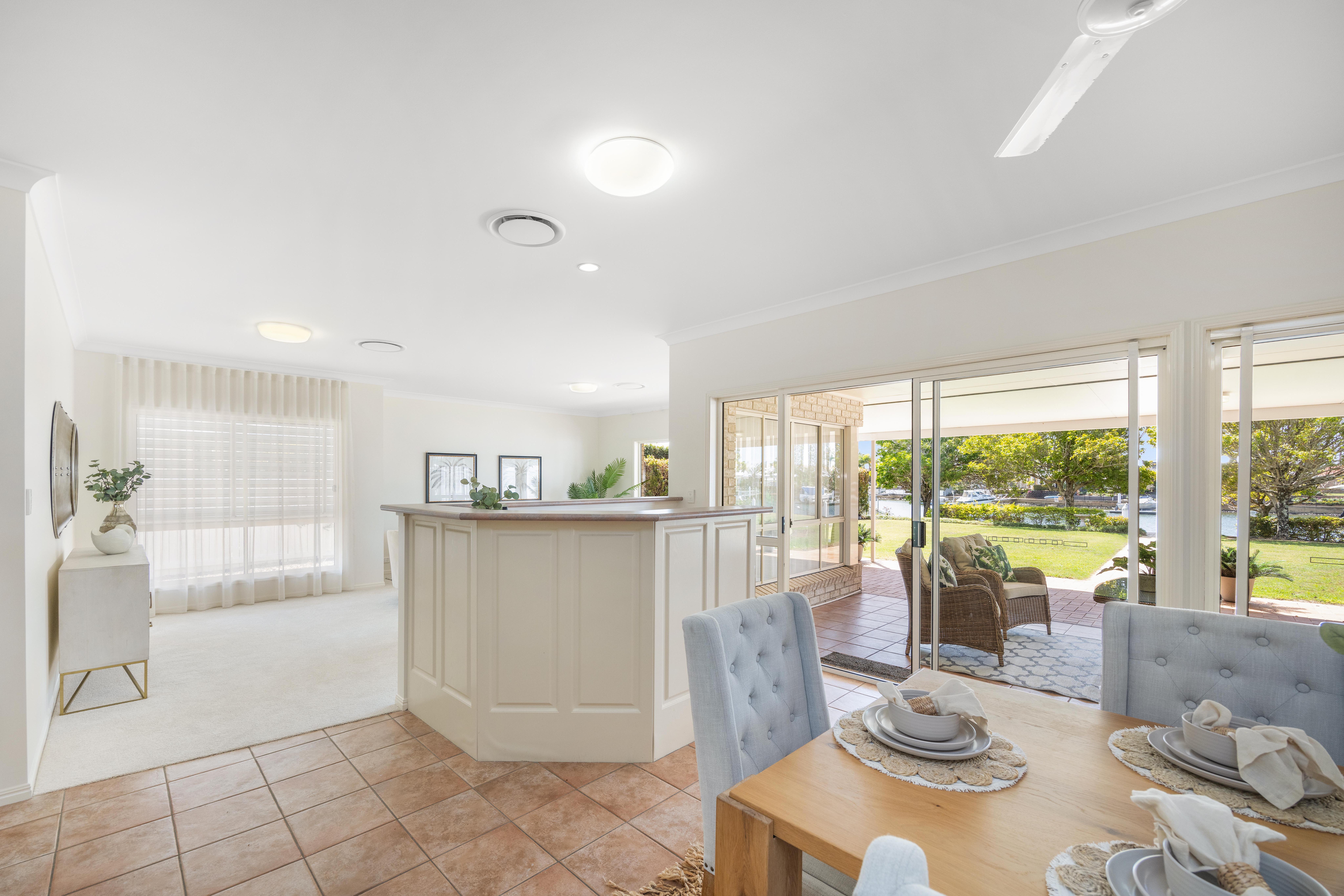 This property offers opportunities to all waterfront buyers. Firstly, move straight in and enjoy waterfront living at its best. Designed to optimise its perfect northerly deepwater aspect, the living areas and master bedroom of this light filled, lowset home all feature beautiful water views across the main canal. You will live outdoors with barbeques and parties becoming a breeze under the large, covered patio overlooking the amazing waterfront vista.