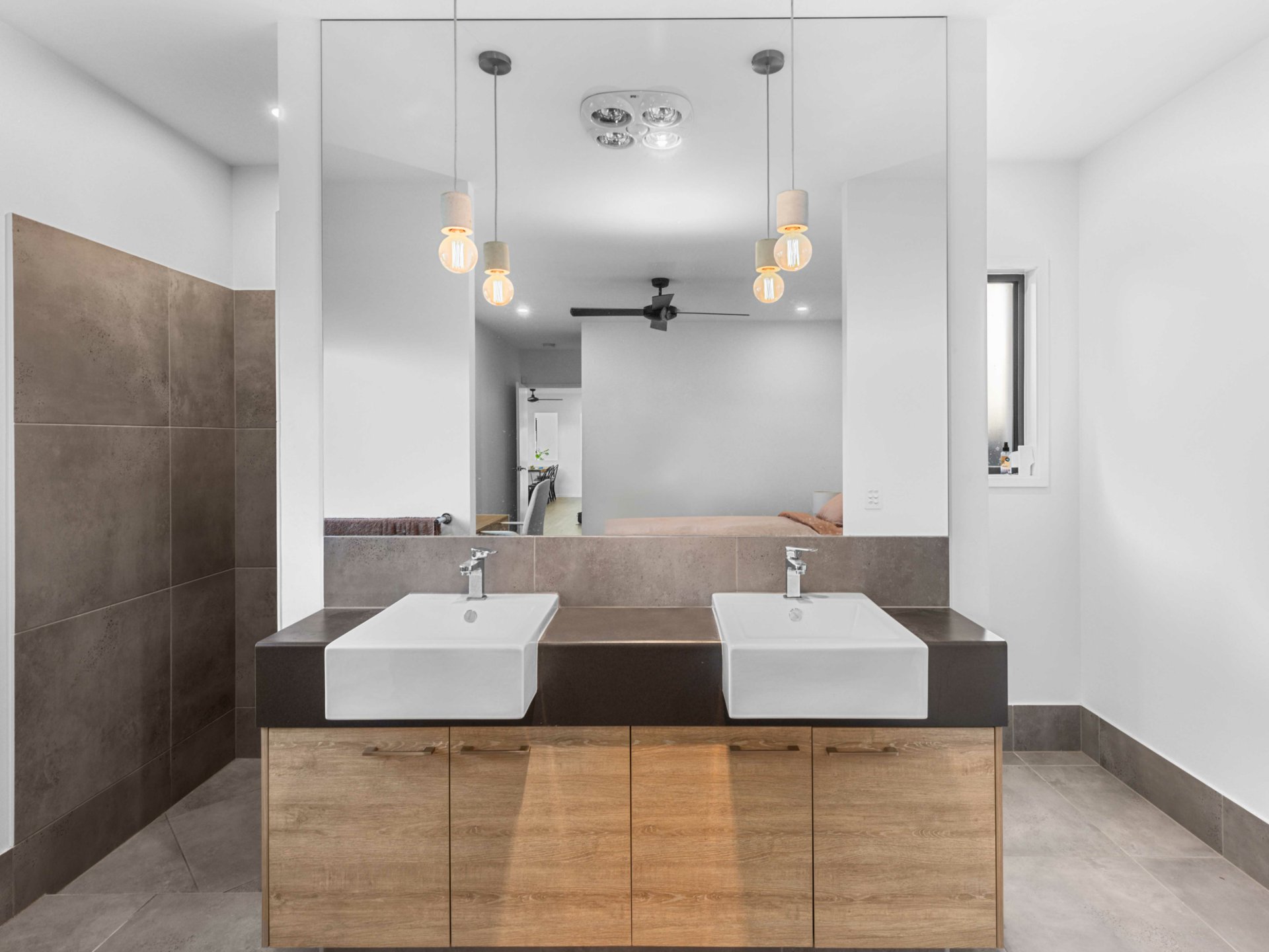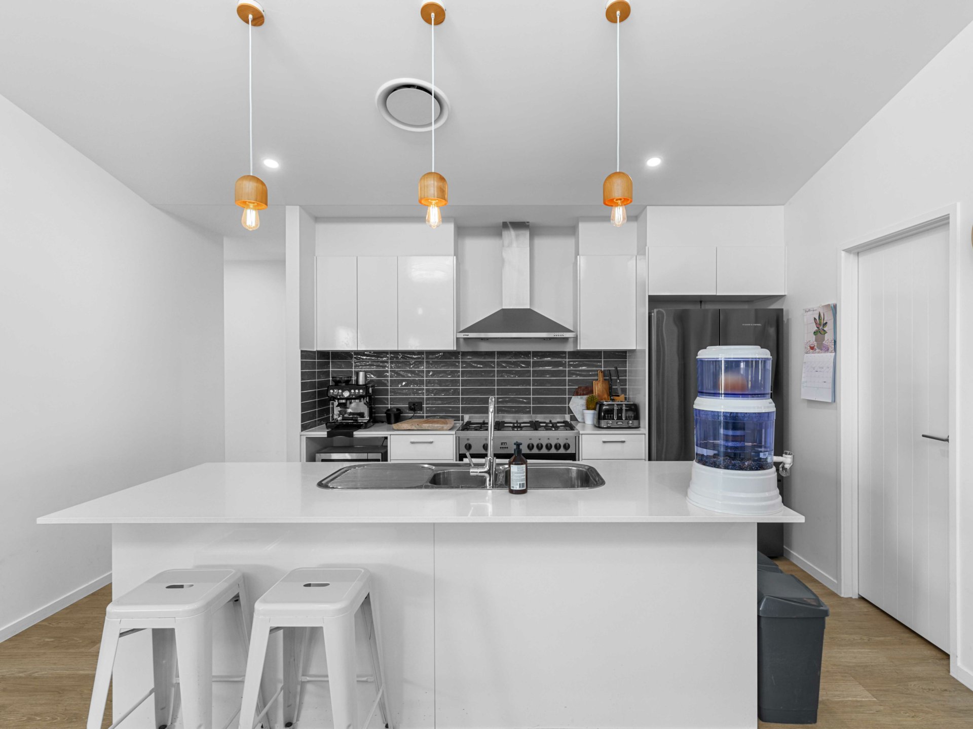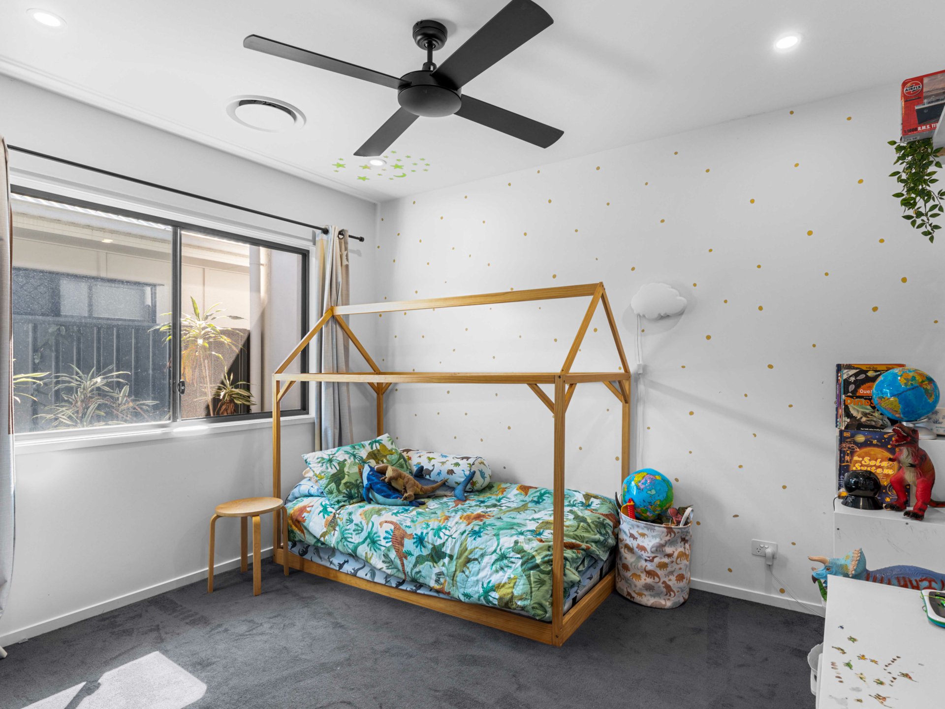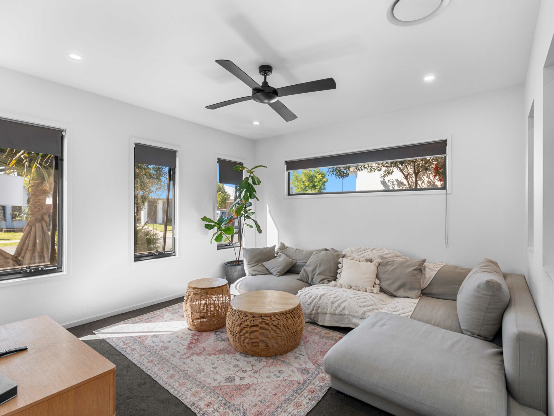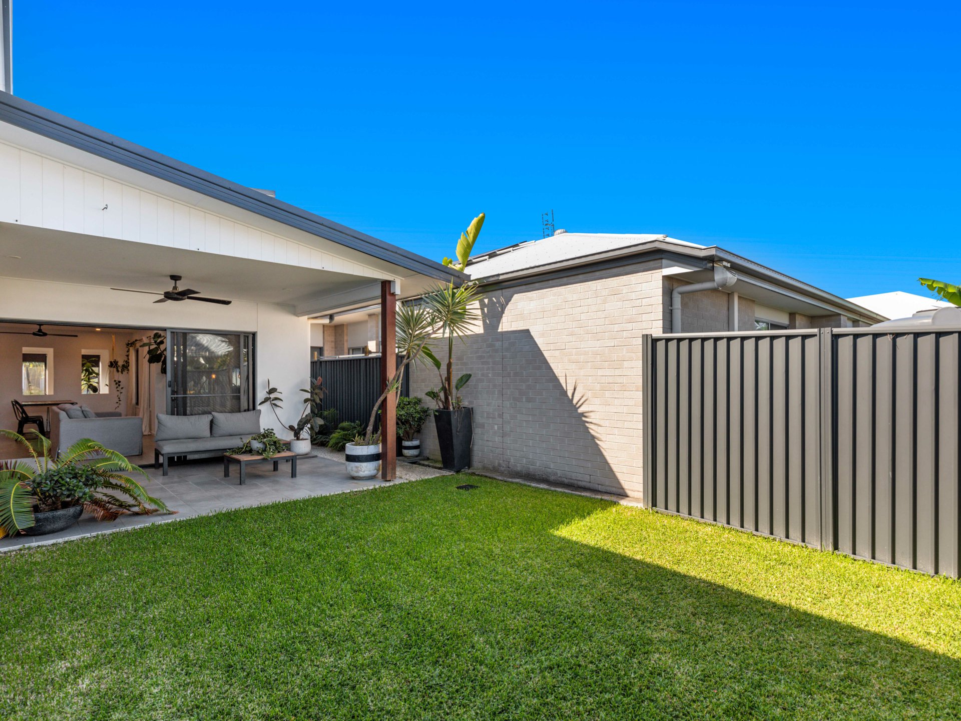 From here is where you’ll find the heart of this home: The large living, kitchen & dining room, complete with a vaulted ceiling and multiple ducted air points. The kitchen includes a large 900 gas cooktop and plenty of storage in the conveniently placed walk in pantry. Just beyond that, the expansive alfresco area awaits your indulgence. The undercover area has been thoughtfully customised with a tiled finish to create the ideal space for lounging around, or for entertaining. Topped off with a beautiful chunk of buffalo turf & you have the ultimate low maintenance outdoor sanctuary! For the savvy buyer, this home also includes a large water tank in the back to reduce your water bills, and solar panels on the roof.