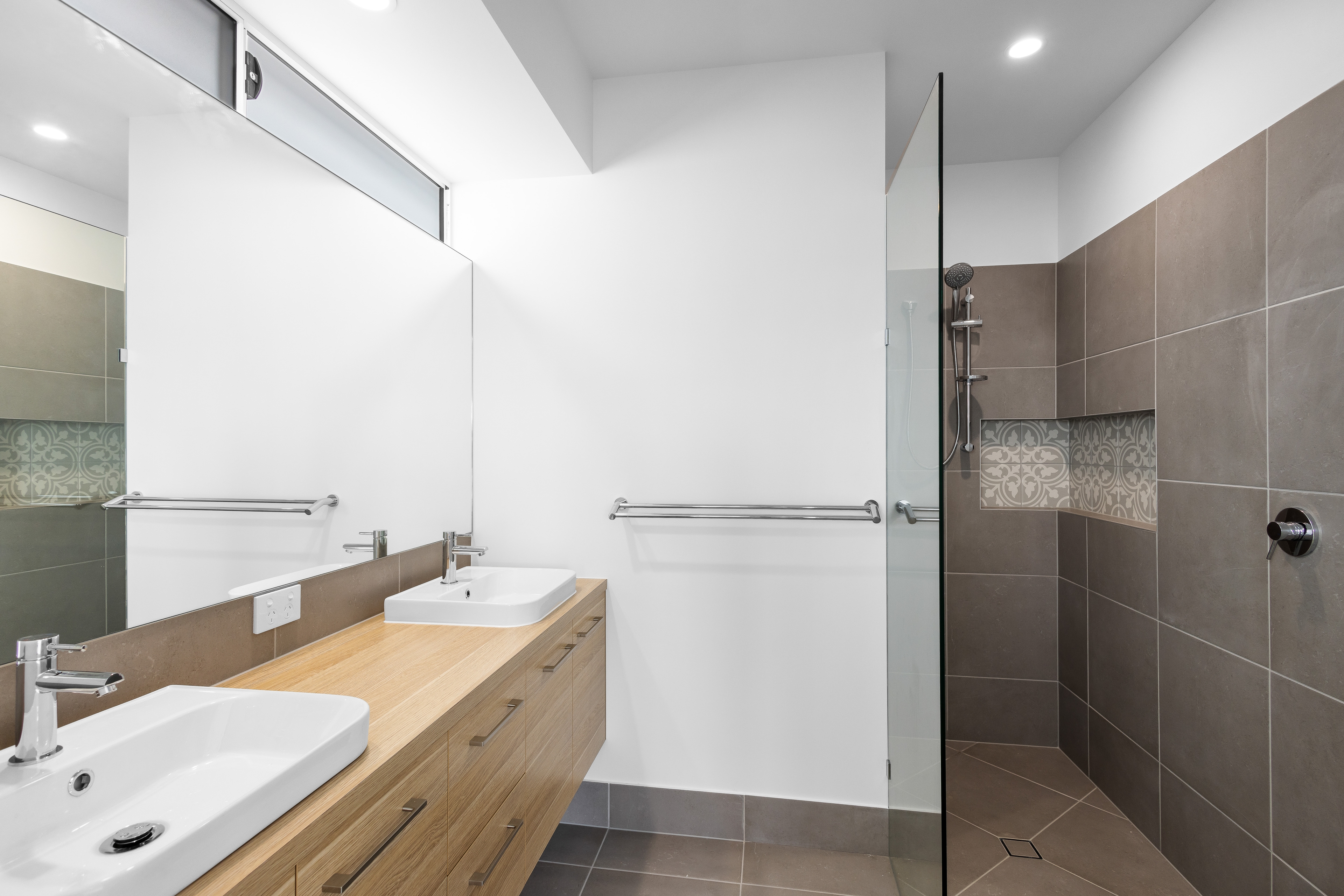 Master bedroom with walk-in wardrobe and ensuite featuring his-and-hers sinks •