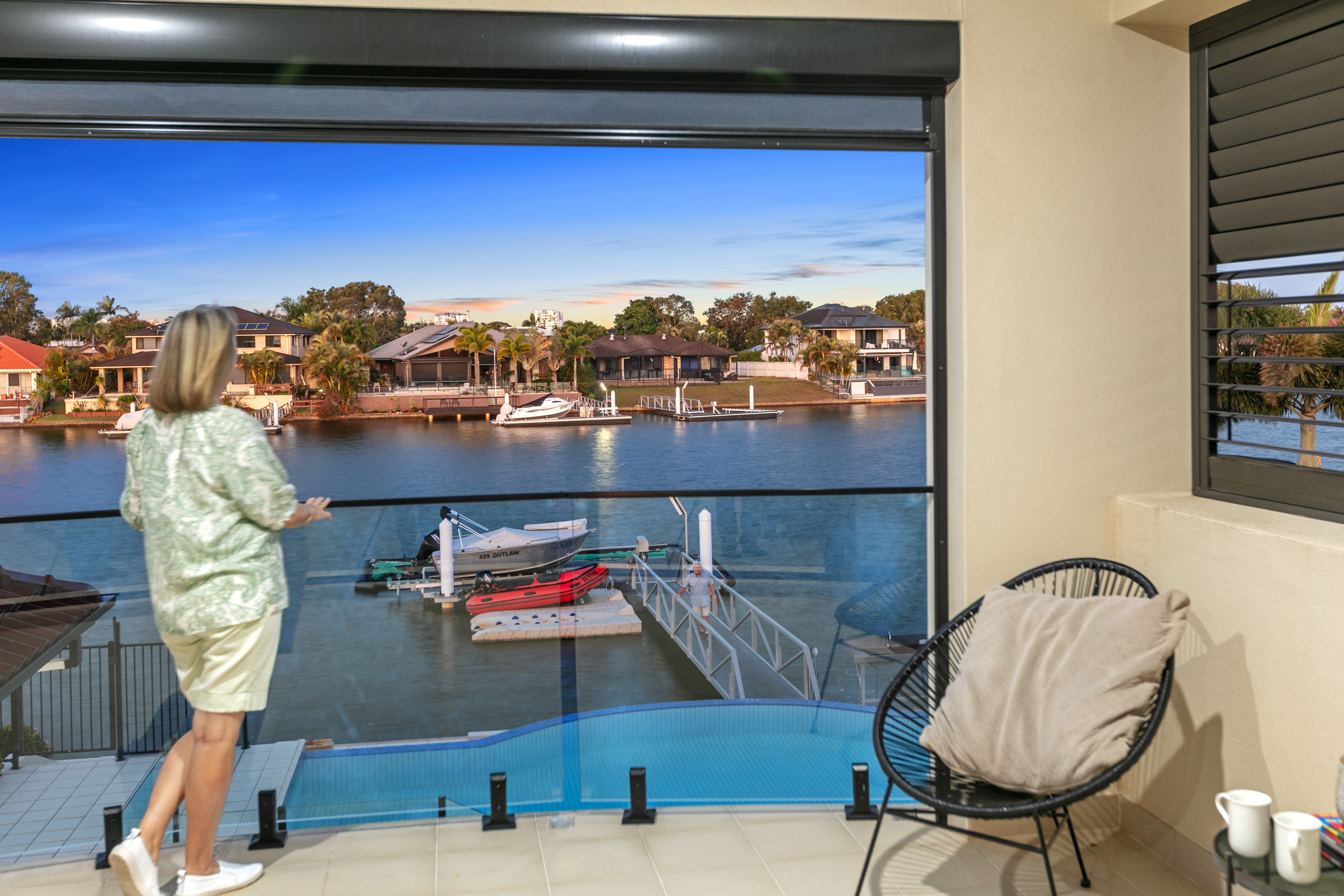 Boasting 22 metres of deep-water frontage and a desirable north-east aspect, this home is crafted to offer a lifestyle of elegance and serenity. Its impressive street presence is matched by a secure, gated entrance that leads to a grand foyer, where high ceilings and sunlit interiors perfectly frame the breathtaking water views, setting the tone for the exceptional living experience ahead.