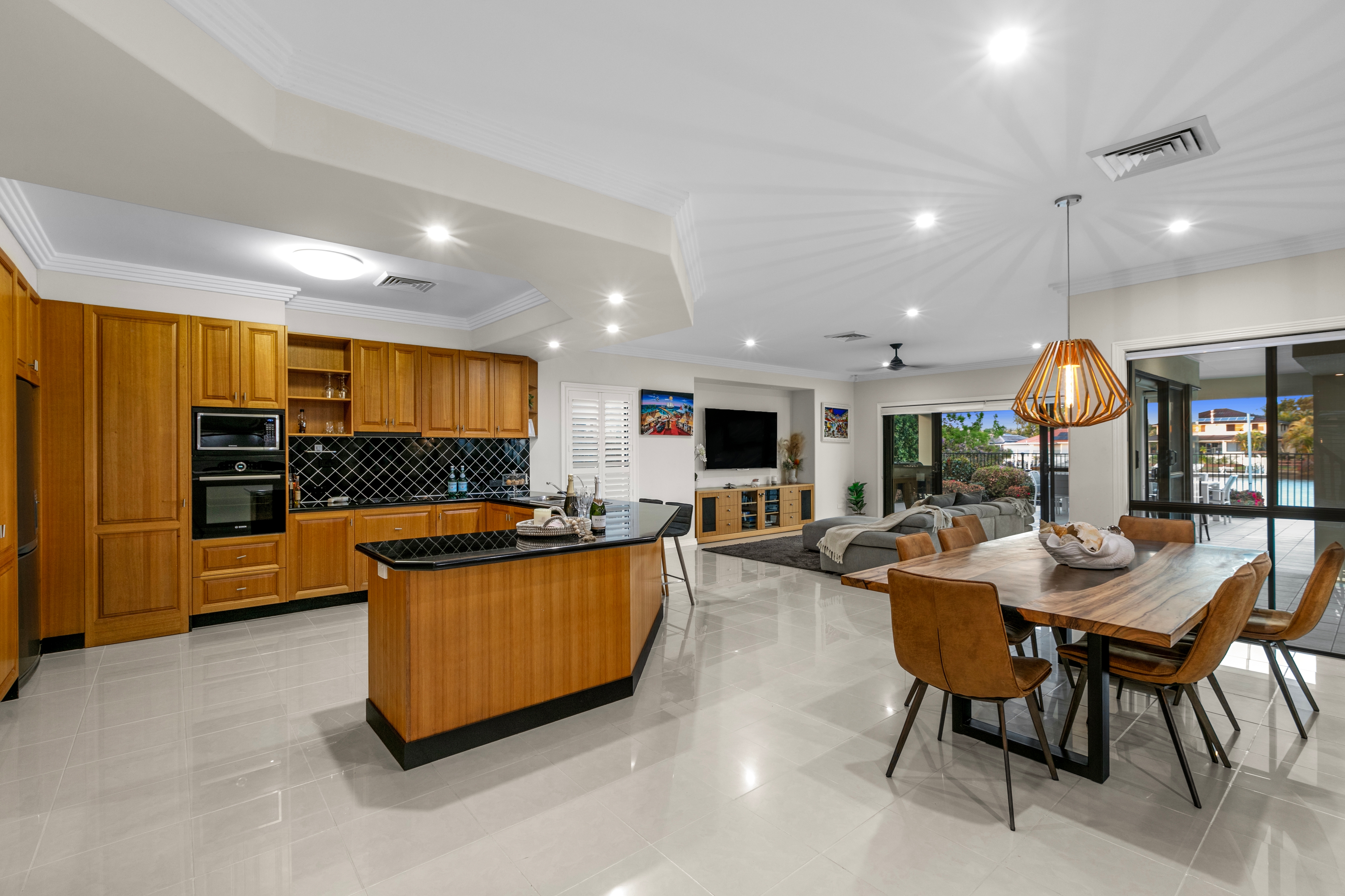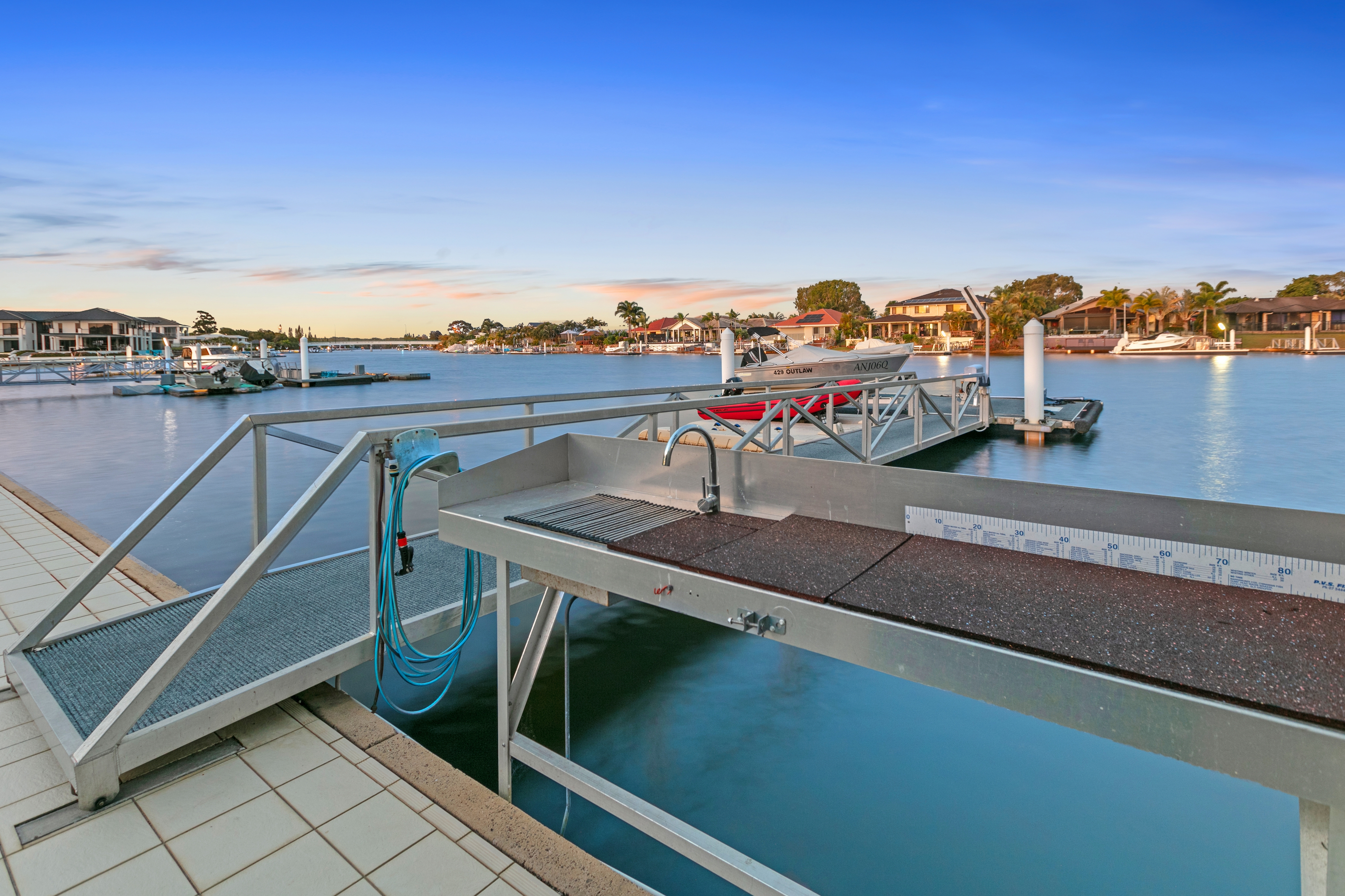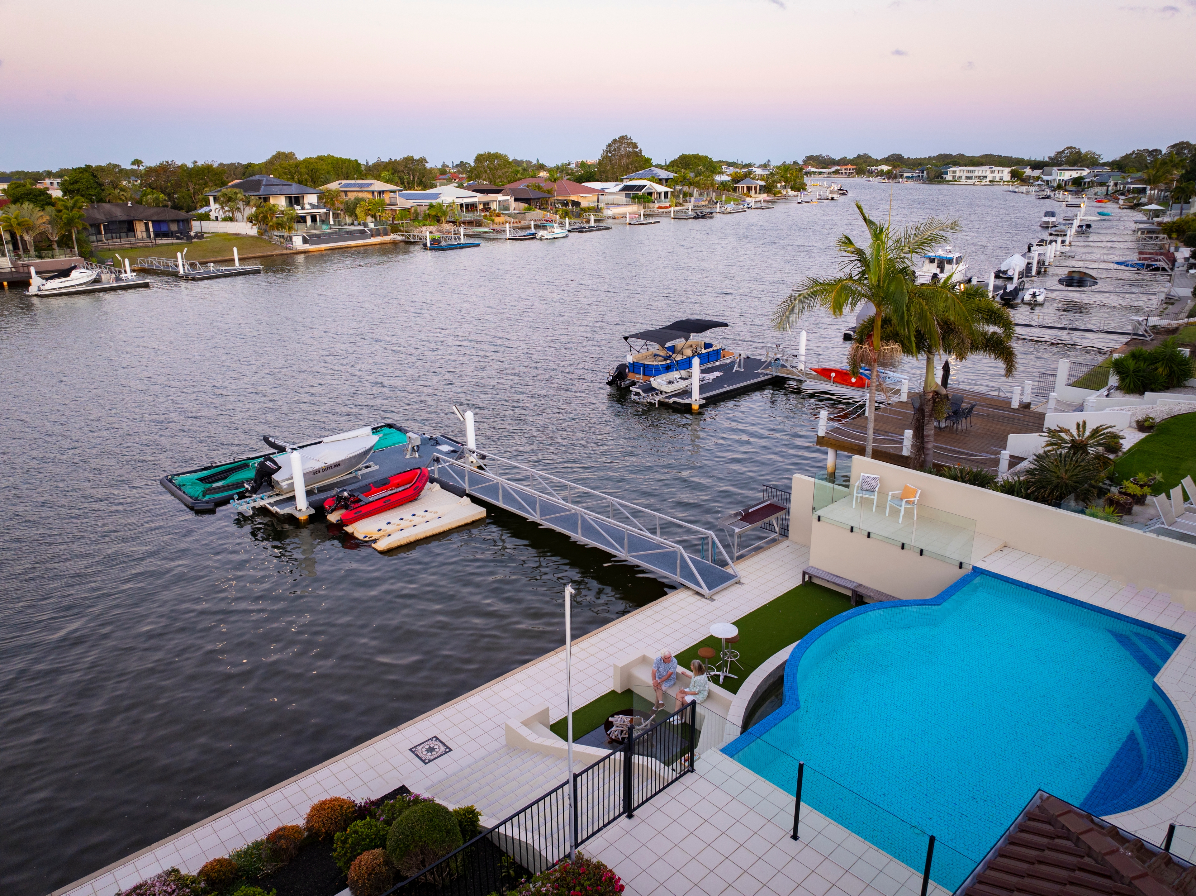 What We Love - Sought after blue chip location with North-East facing aspect - 22m of deep-water frontage, with private pontoon located in the main canal of Pelican Waters - 997m2 block off land, with 77m2 of outdoor covered entertaining space and approximately 360m2 of living space