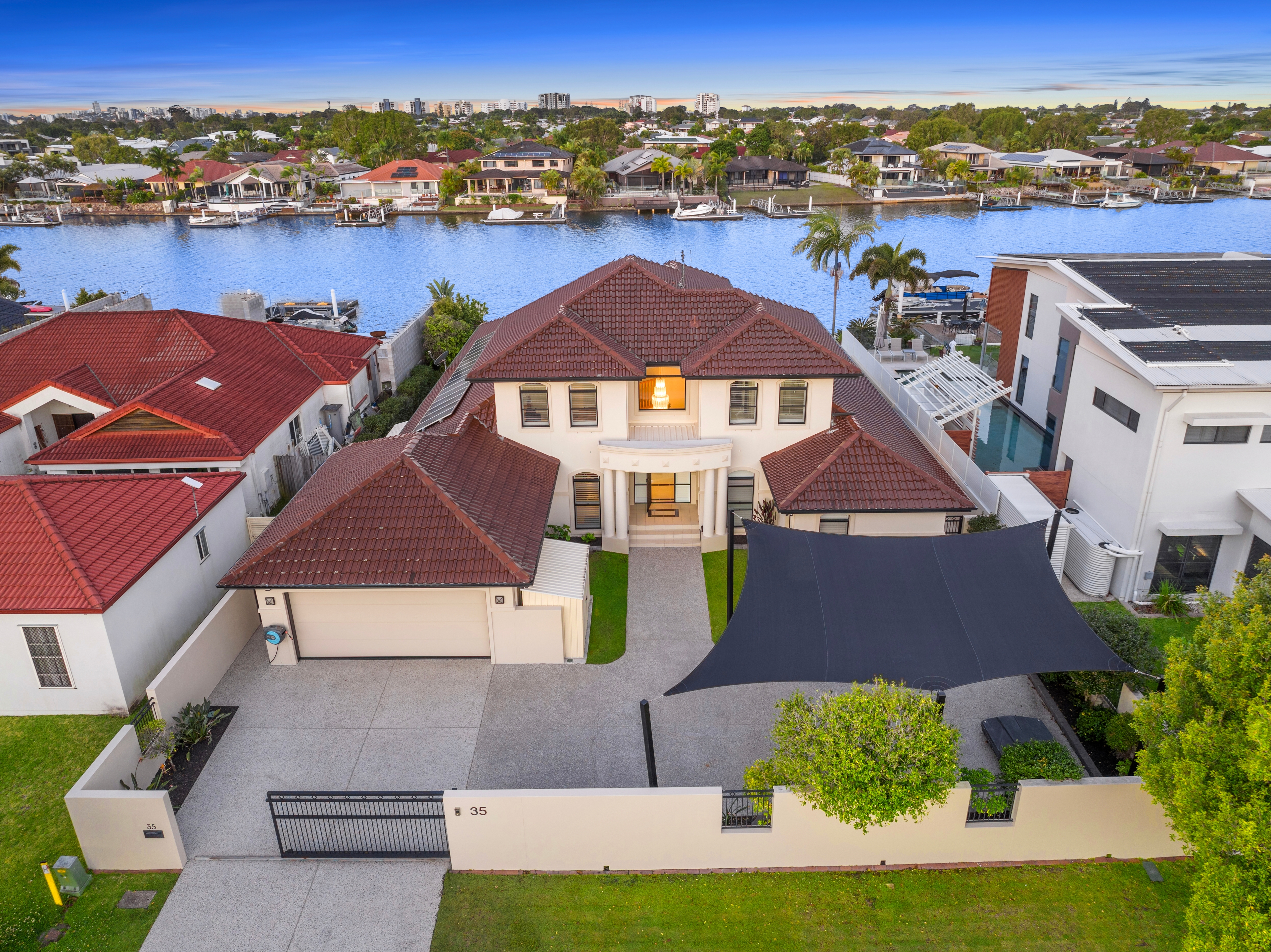 PRESTIGE WATERFRONT OASIS WITH 22 METRE DEEPWATER FRONTAGE! Welcome to 35 Edwardson Drive, Pelican Waters. Commanding a prime position in the dress circle of Pelican Waters, this exceptional residence on a 997m2 block offers a rare combination of luxury, space, and waterfront living.