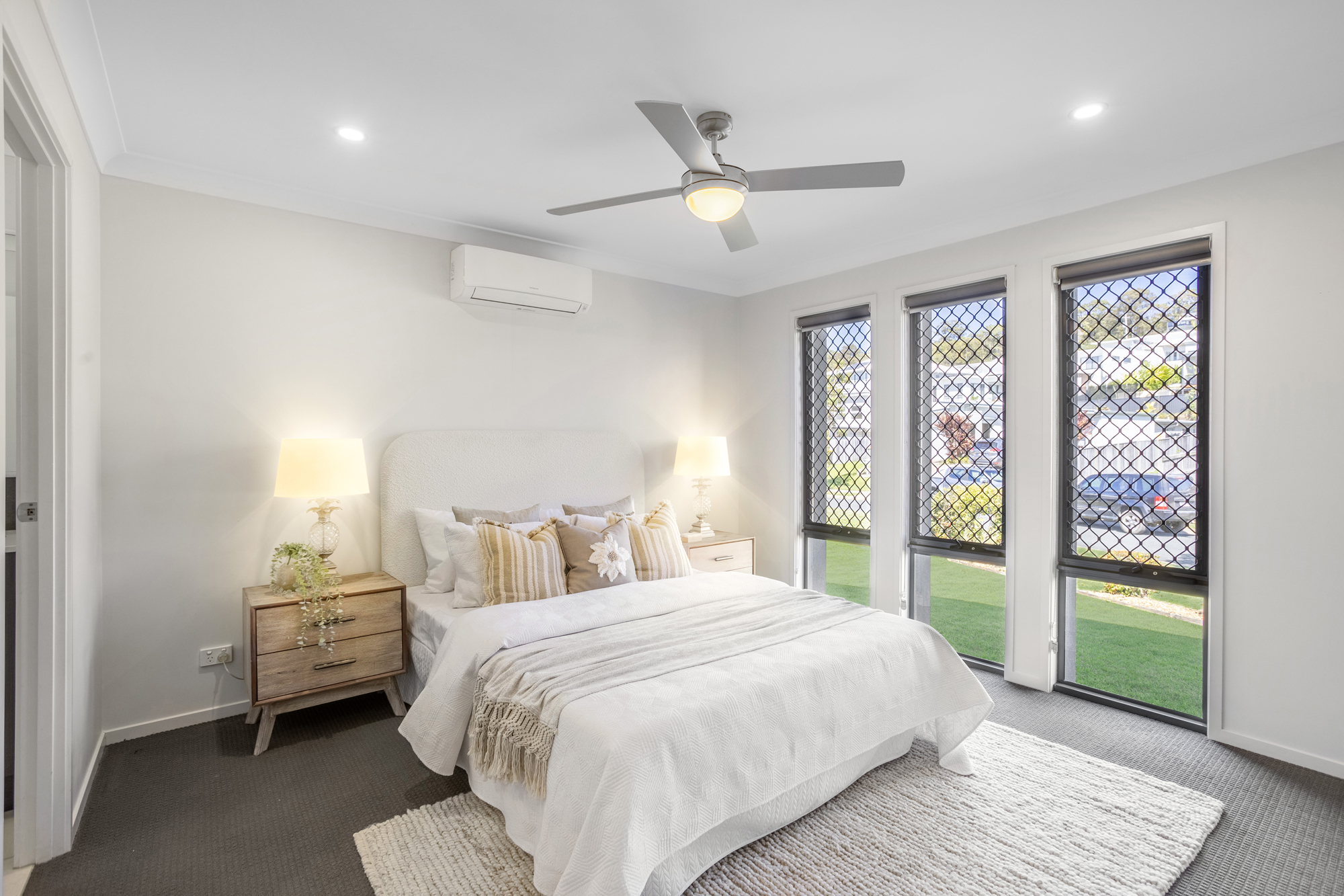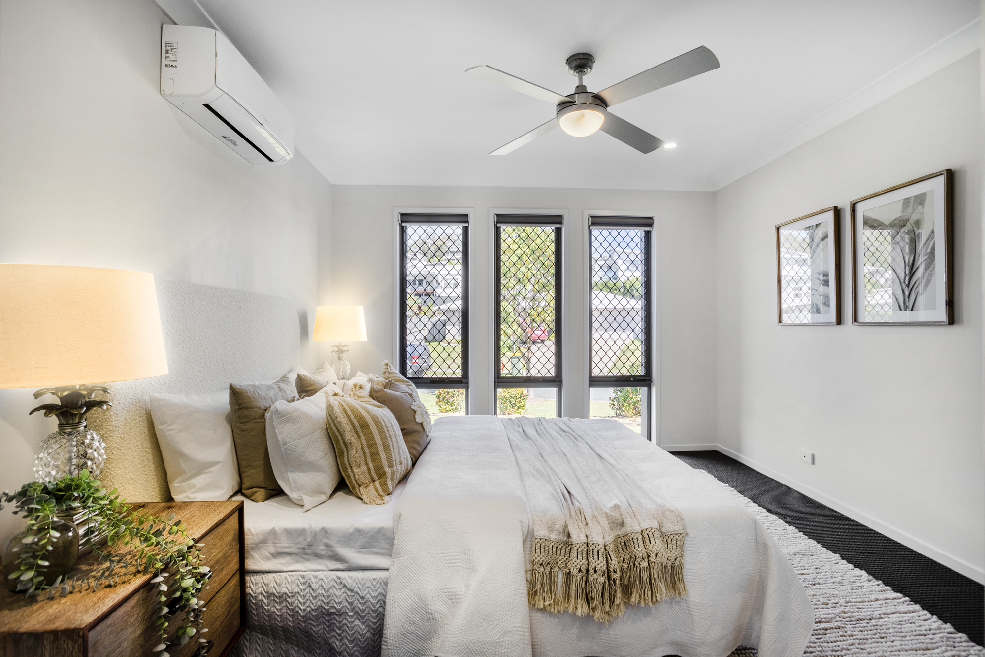 From the moment you step inside, you will notice the thoughtful layout, beginning with the private master suite located at the front of the home. It features air conditioning, a spacious walk-in robe, and a beautifully appointed ensuite with dual vanities and stone benchtops, providing a sense of privacy and separation from the rest of the home.