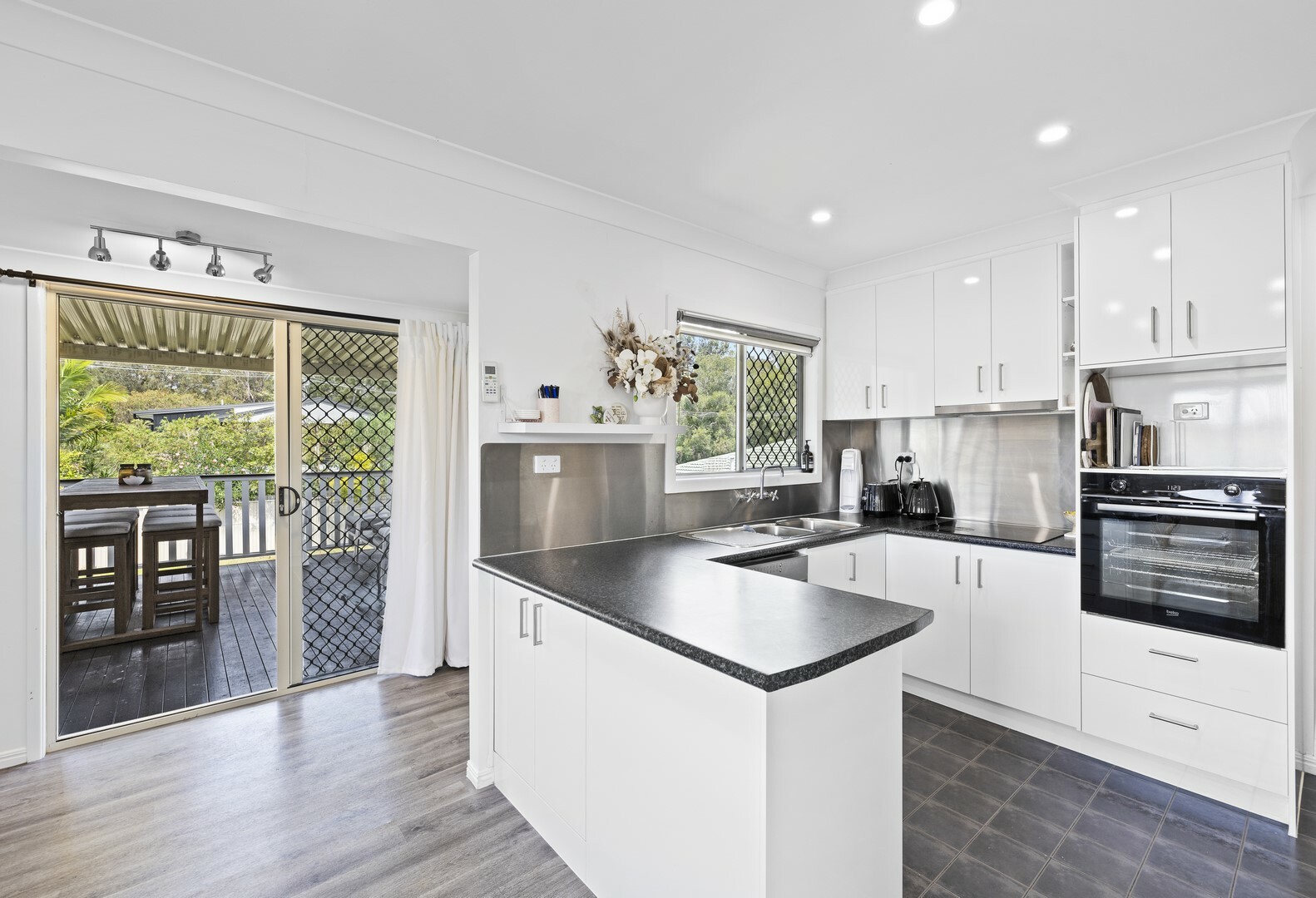 The living area is air-conditioned and flows to the dining room, and well-equipped kitchen. Sliding doors open to a large timber deck overlooking the big backyard creating an ideal space to relax with family and friends and enjoy the cool sea breezes!