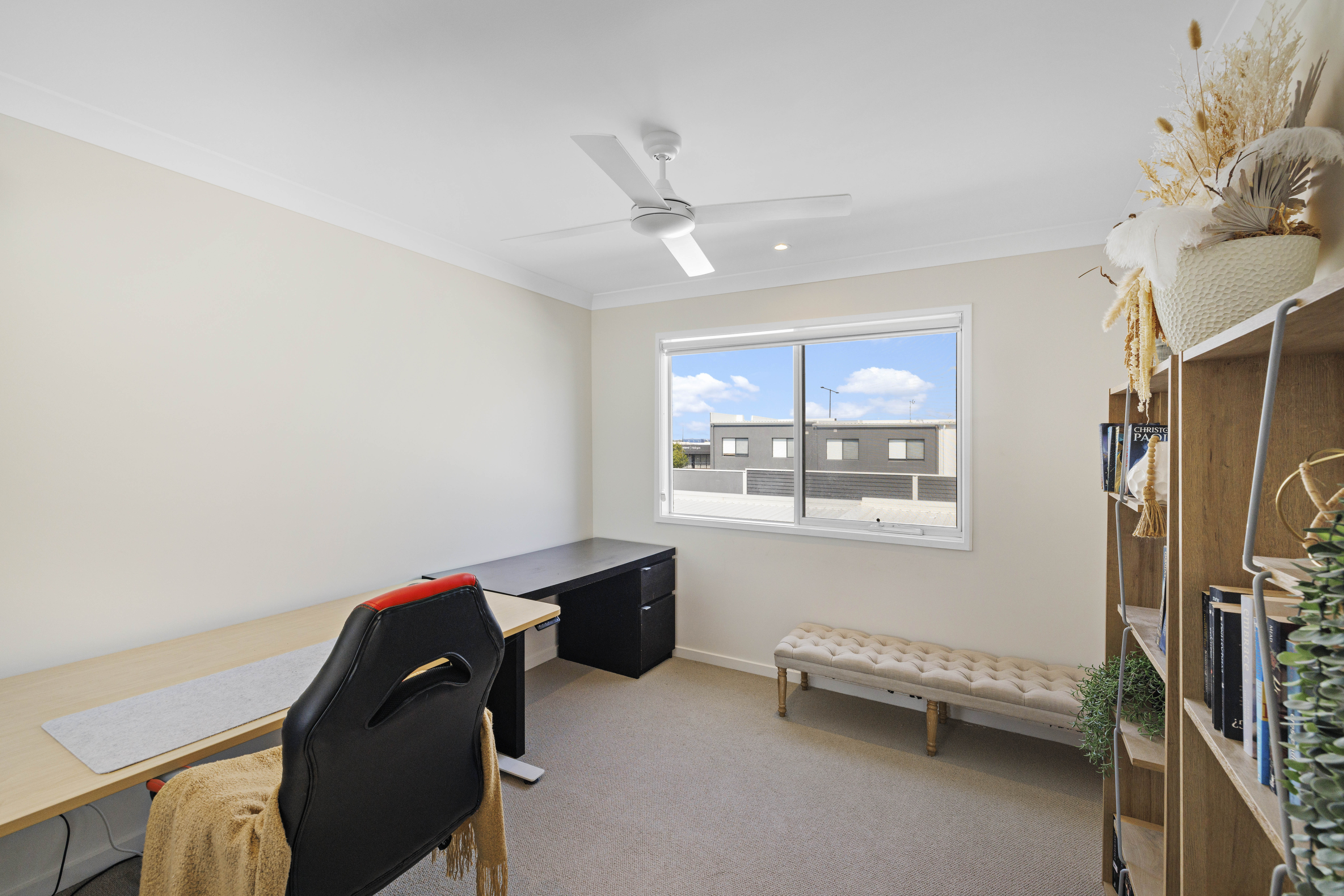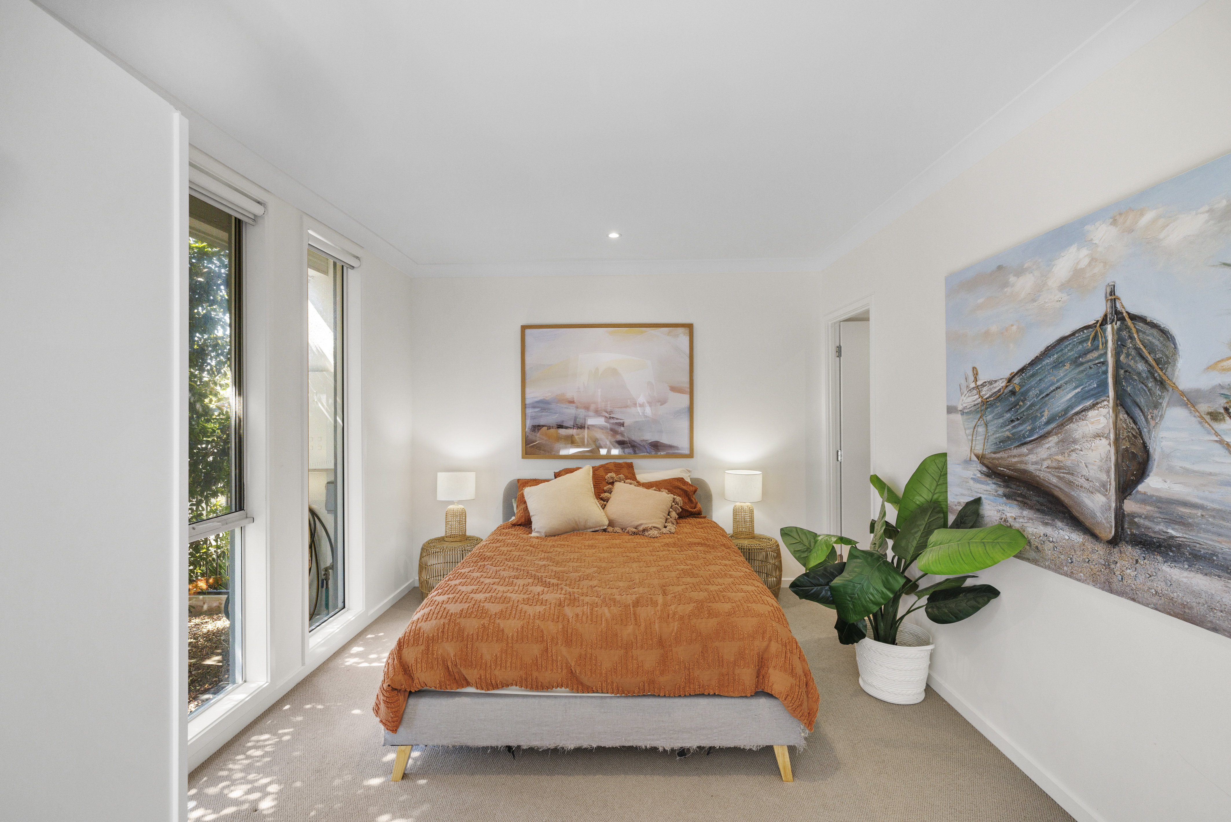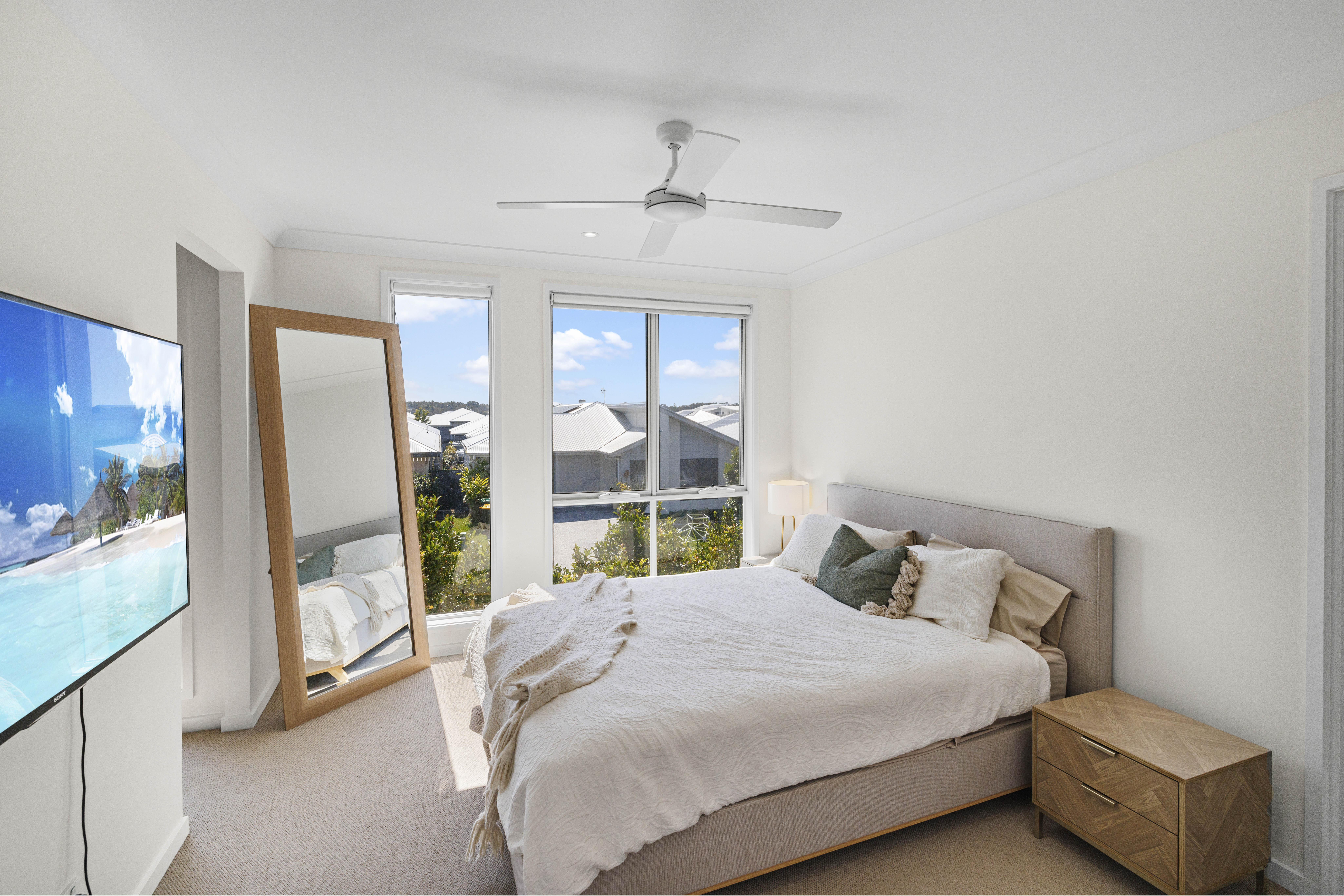 The layout is designed for modern living, with one generously sized bedroom downstairs, perfect for guests or a home office. Upstairs, you'll find three more spacious bedrooms, including the master suite, all bathed in natural light and thoughtfully designed for relaxation.