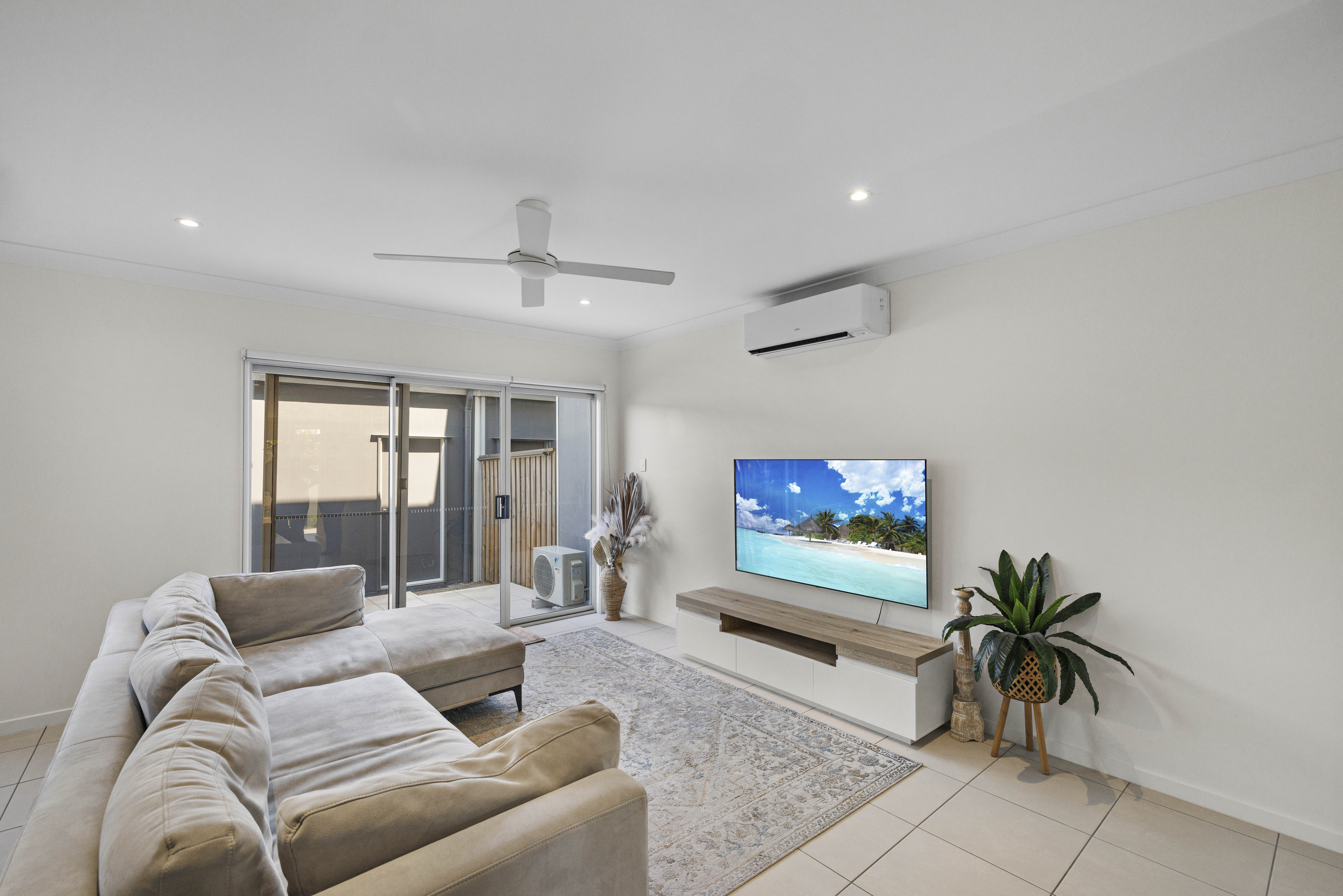 The home boasts a total of three well-appointed bathrooms, ensuring there's plenty of space for the whole family. With three air conditioning units strategically placed throughout, you can stay cool during the summer months.