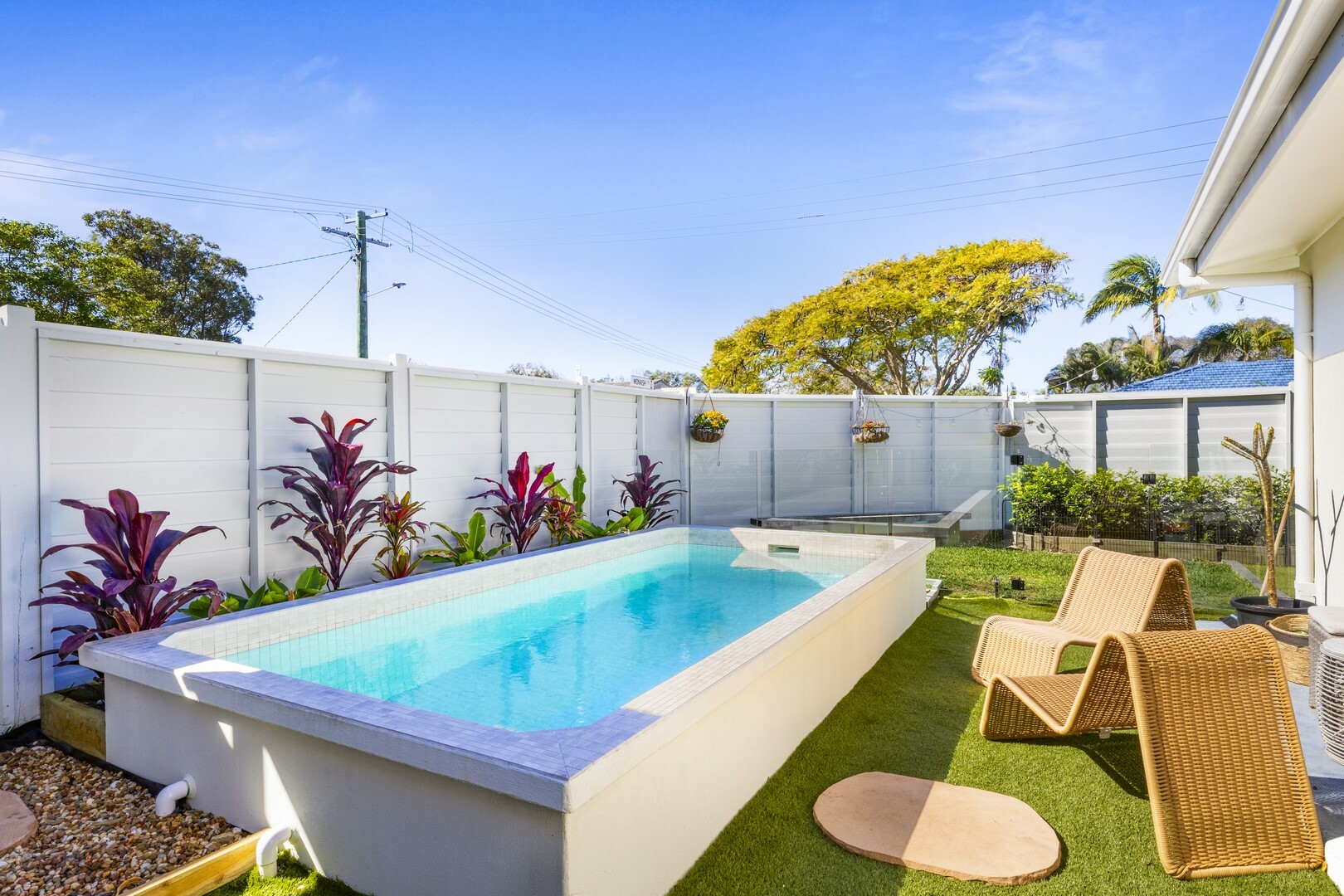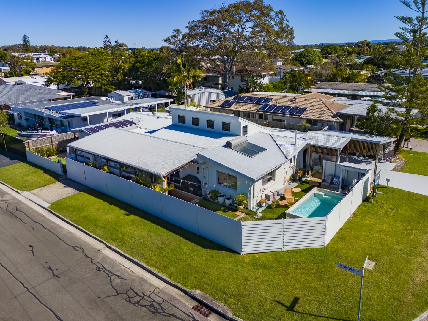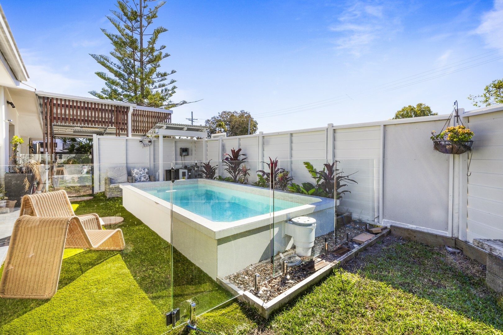 - Unique above ground fixed pool with ample room inside the glass fencing for sunlounges