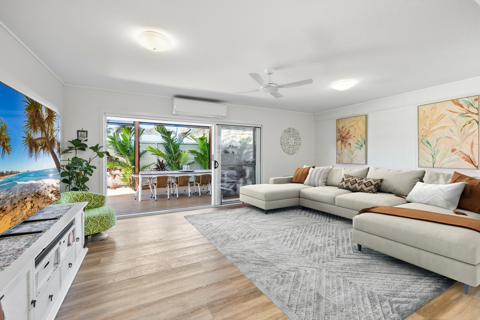 - Light and bright throughout with vinyl timber flooring, barn doors and a neutral colour palette creating a modern beach feel
